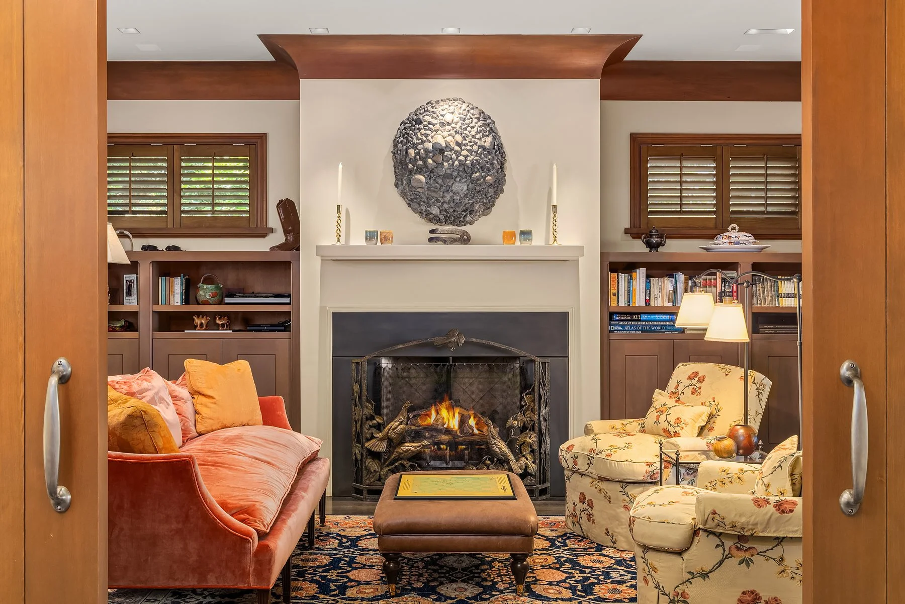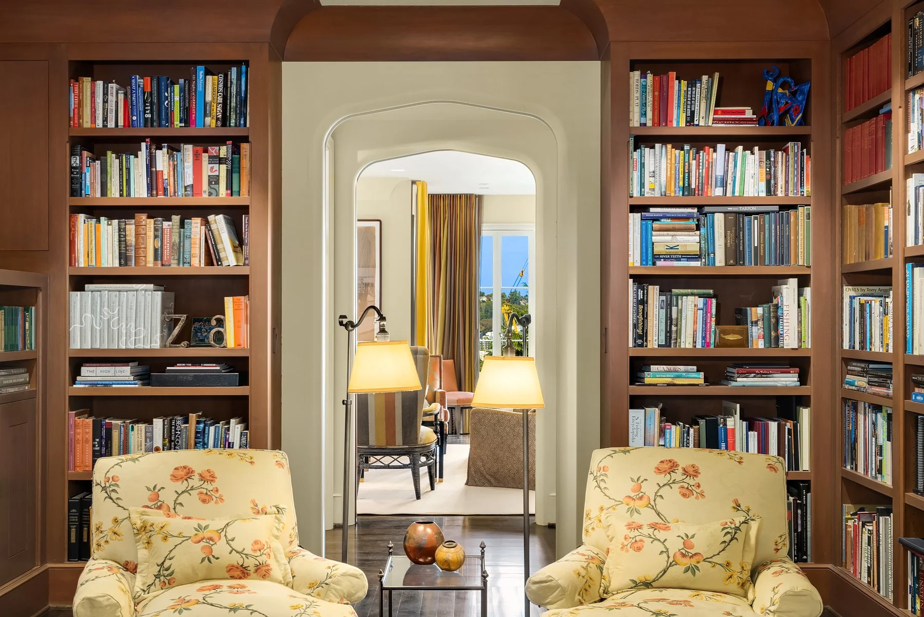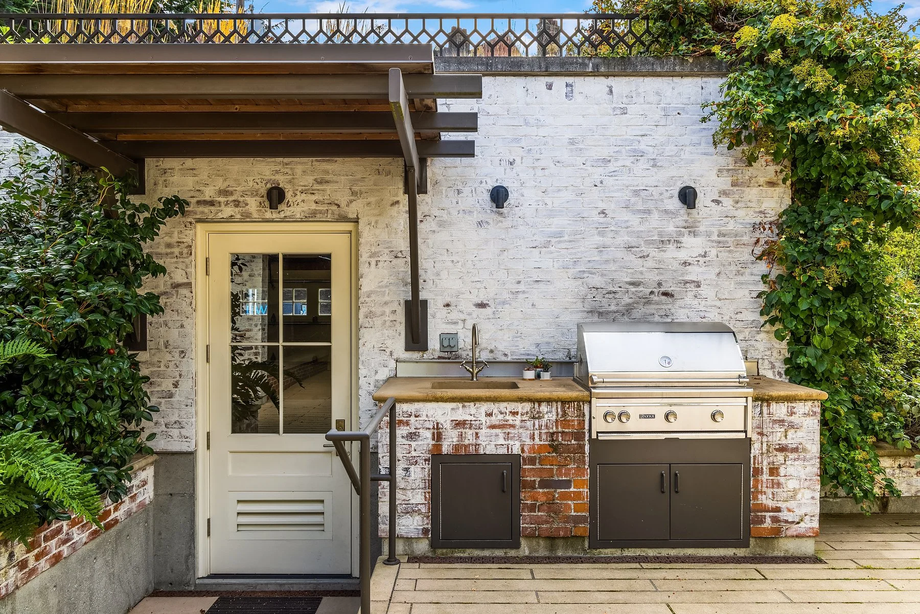 An inviting foyer leads to a gorgeous living room with walls of windows featuring iconic views and an eye-catching light fixture by Joe McDonnell. Updated kitchen with top-of-the-line appliances and access to a covered patio with fireplace & heaters, as well as a deck for dining al fresco while overlooking the dazzling city. Rustic white-washed brick, built-in Lynx BBQ, and professional landscaping with mature plantings all combine to create a sublime indoor-outdoor setup.