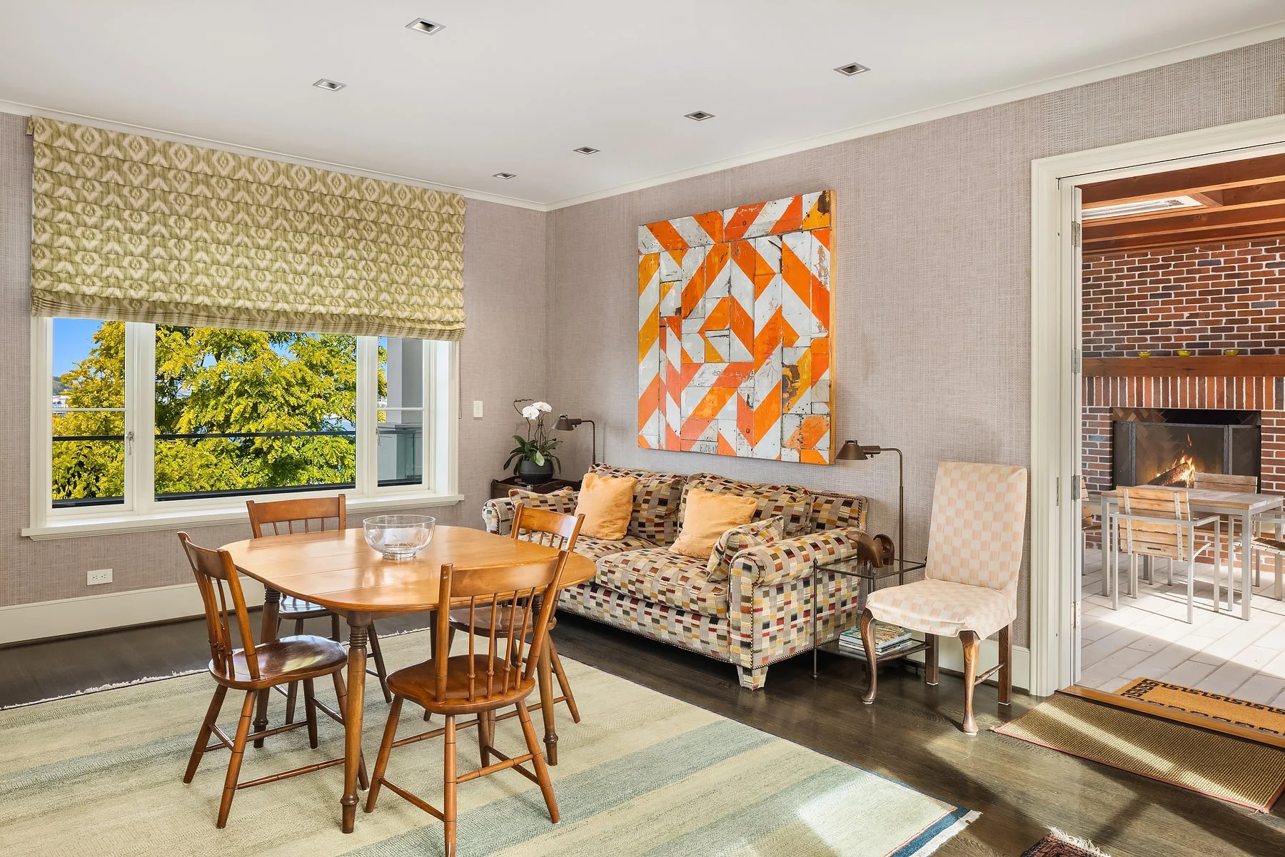 Equipped with A/C, elevator, radiant heat, green roofs, solar panel system, motorized shades, built-in vacuum system, wet bar, Perlick wine fridges, alarm system, and 2-car detached garage pre-wired for electric charging. Proudly sited in the historic Harvard–Belmont district of Capitol Hill.