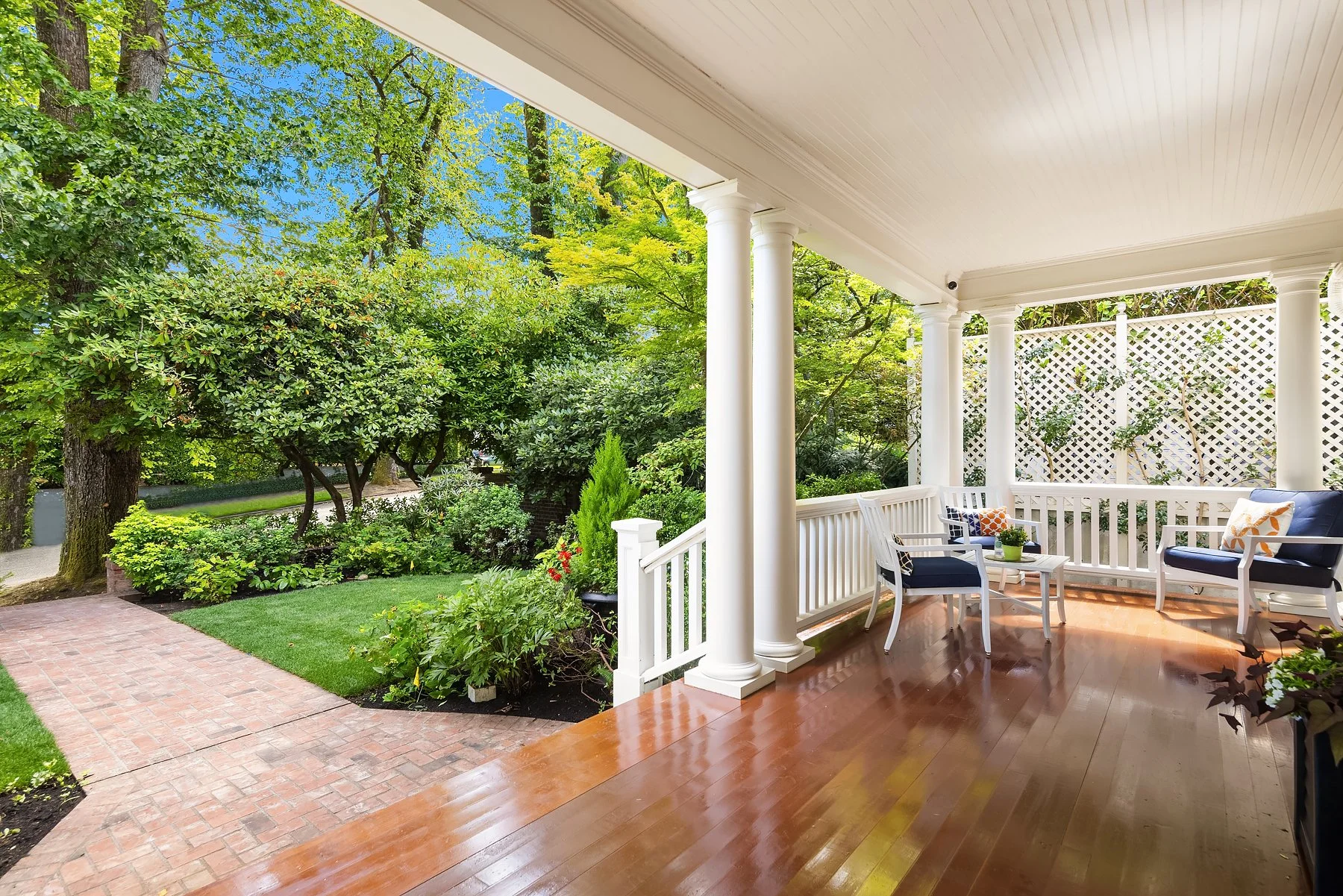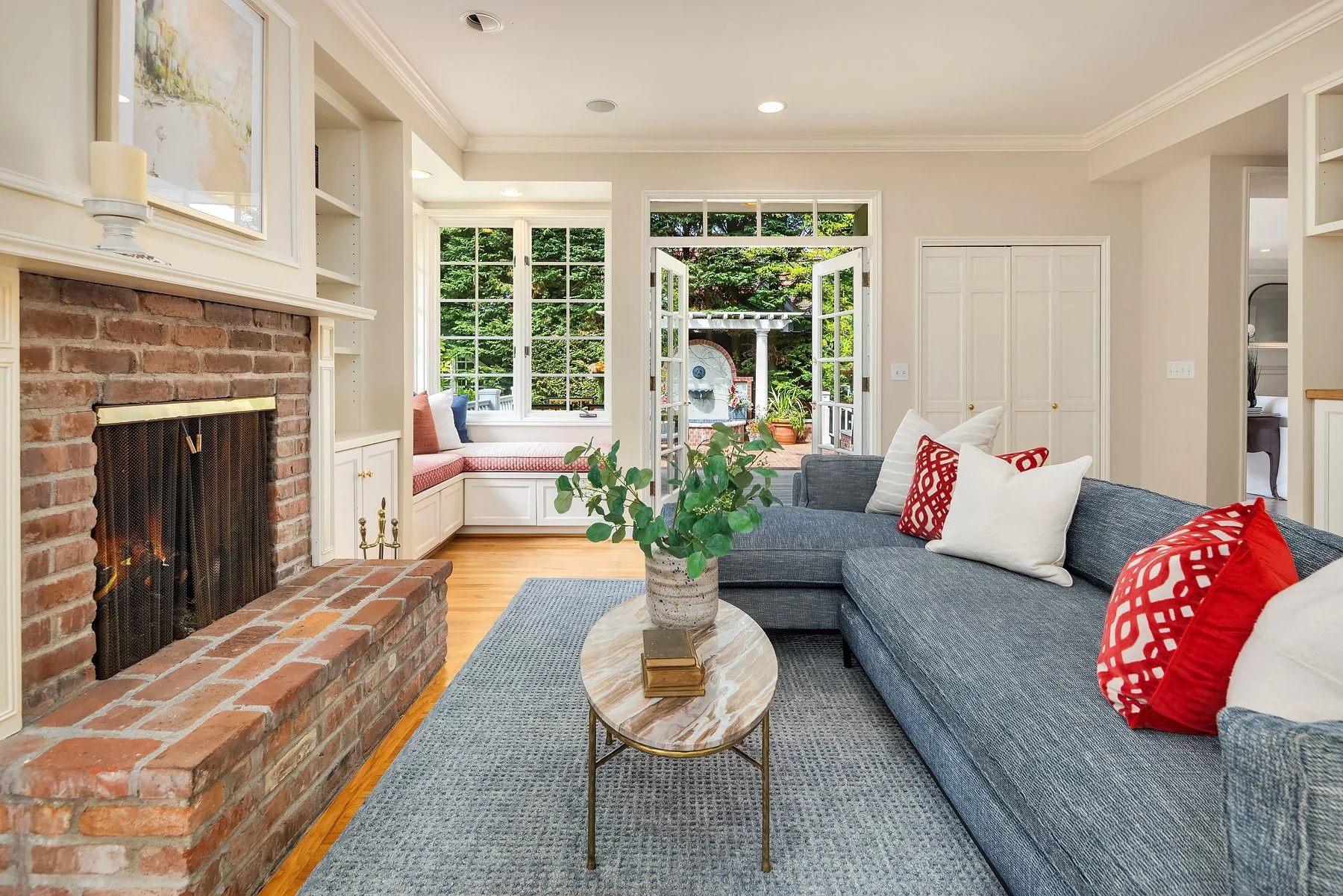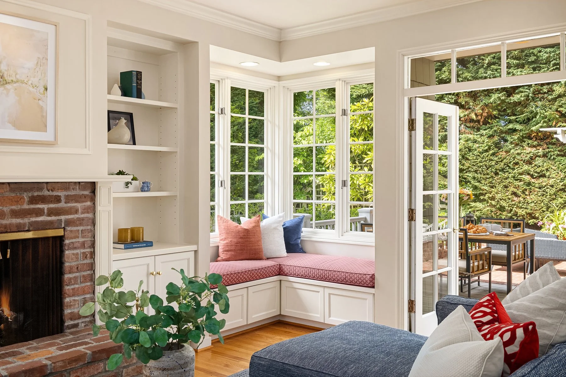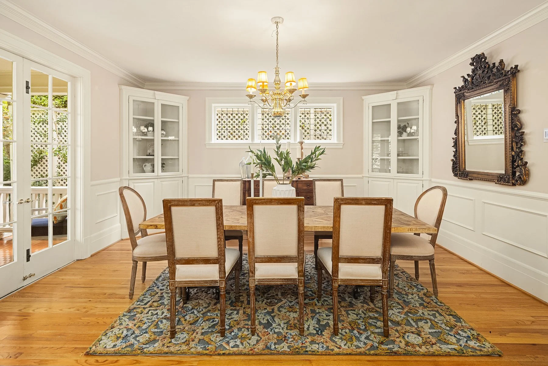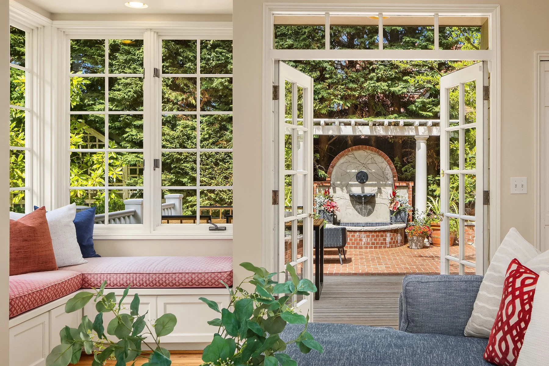 Discover this charming Colonial Revival home, where classic design meets modern comfort. Step into the spacious living room with a cozy fireplace and French doors that open to both the front porch and back deck. The kitchen boasts a casual eating nook and window seats, opening to the backyard for an effortless indoor-outdoor flow. The office nook with built-ins provides a functional workspace, while the formal dining room enhances the home’s timeless elegance.