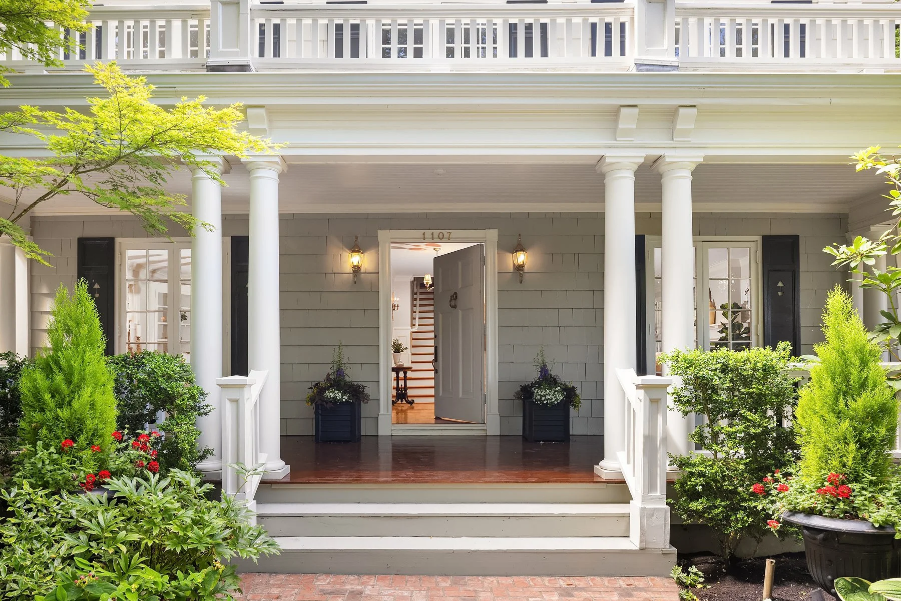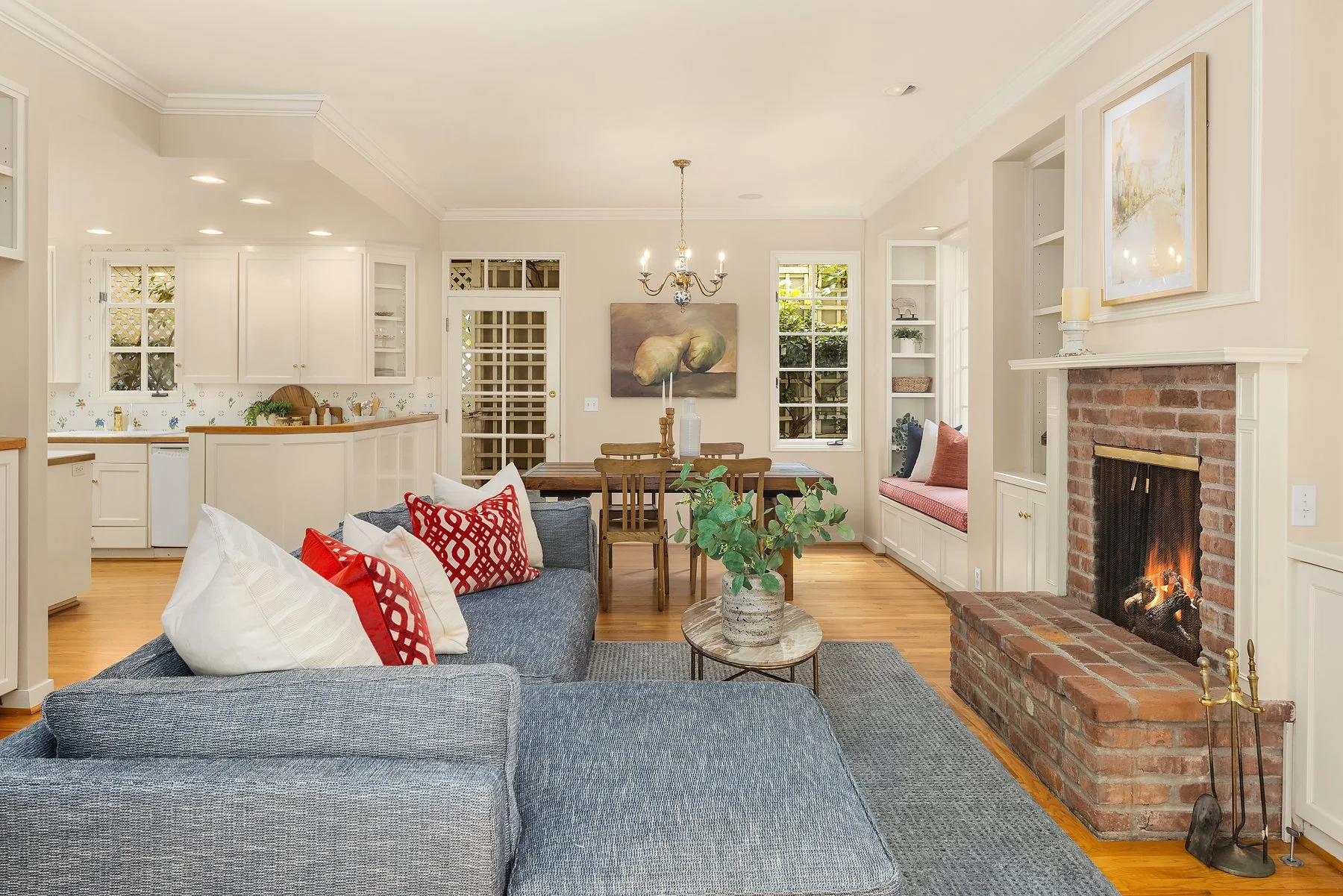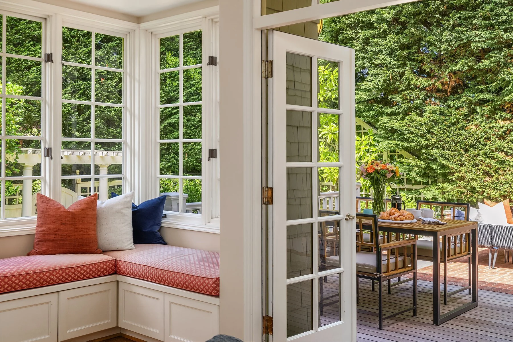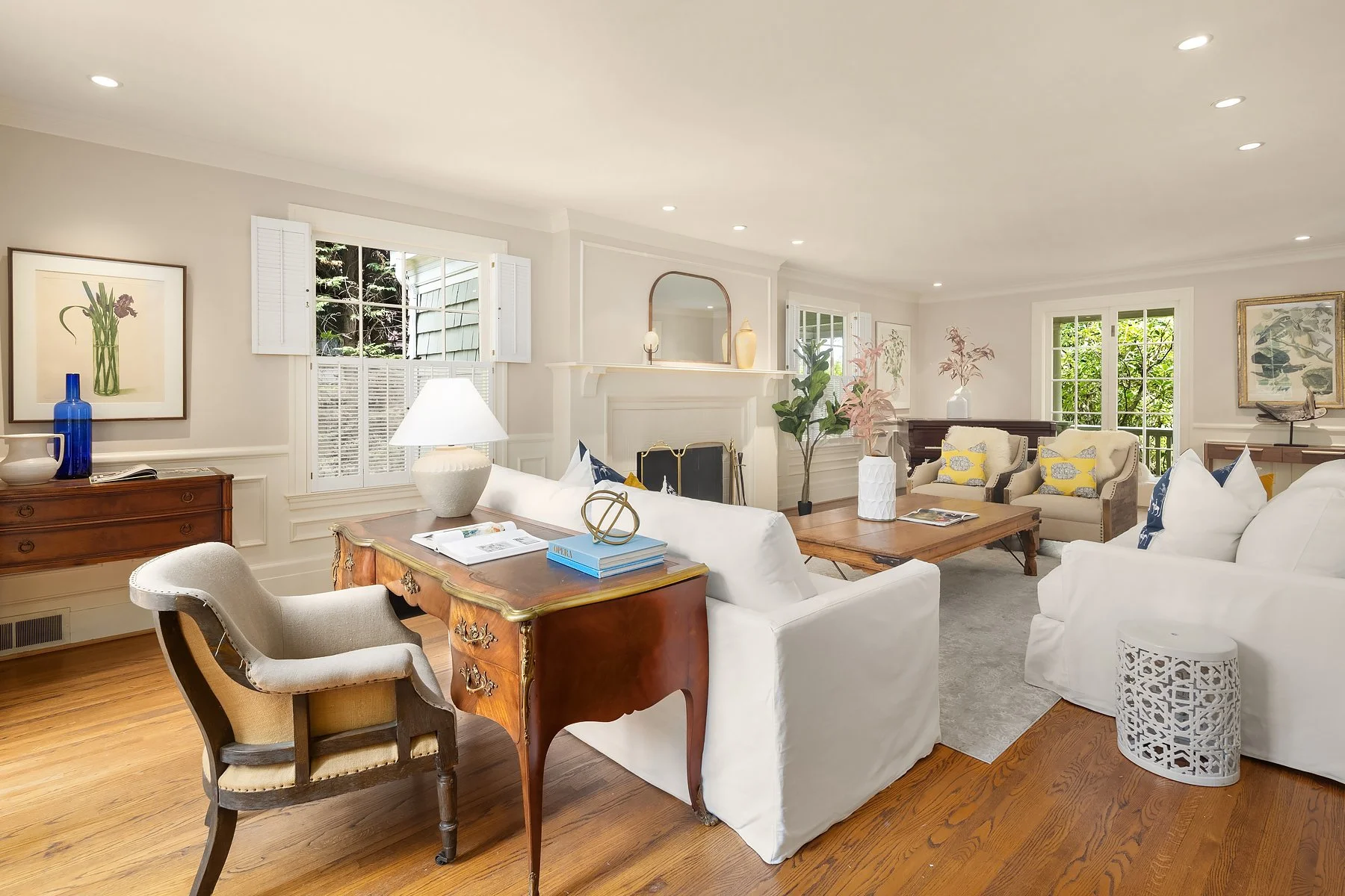 Discover this charming Colonial Revival home, where classic design meets modern comfort. Step into the spacious living room with a cozy fireplace and French doors that open to both the front porch and back deck. The kitchen boasts a casual eating nook and window seats, opening to the backyard for an effortless indoor-outdoor flow. The office nook with built-ins provides a functional workspace, while the formal dining room enhances the home’s timeless elegance.