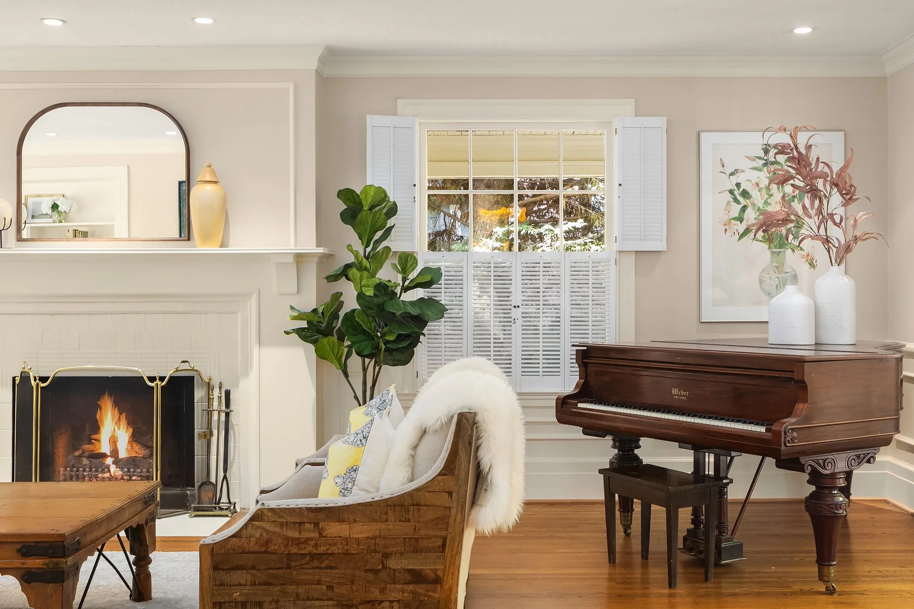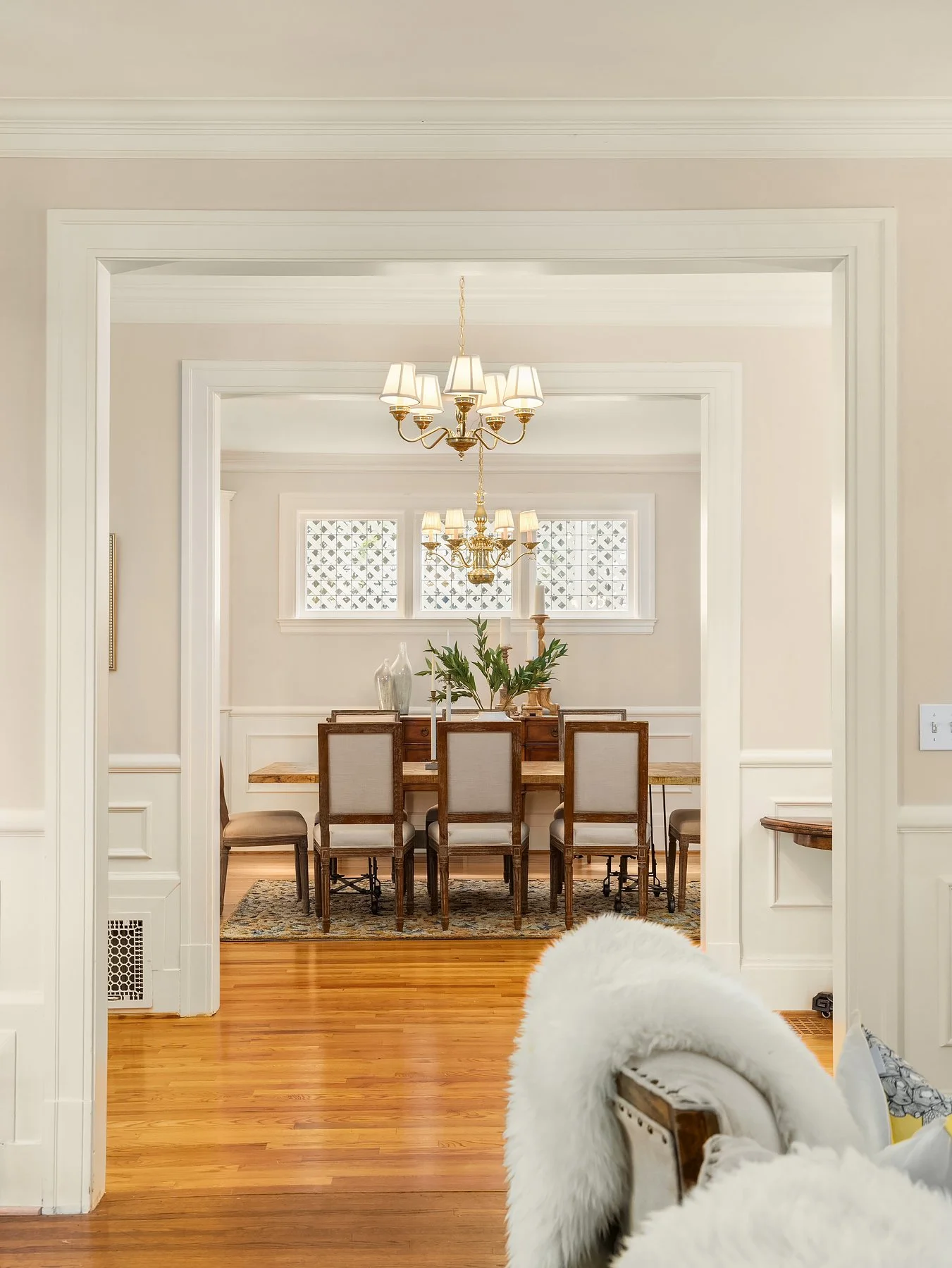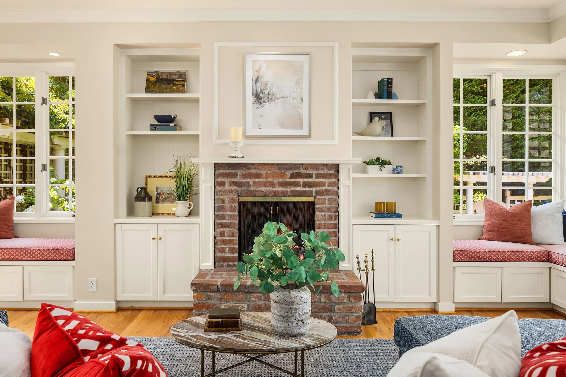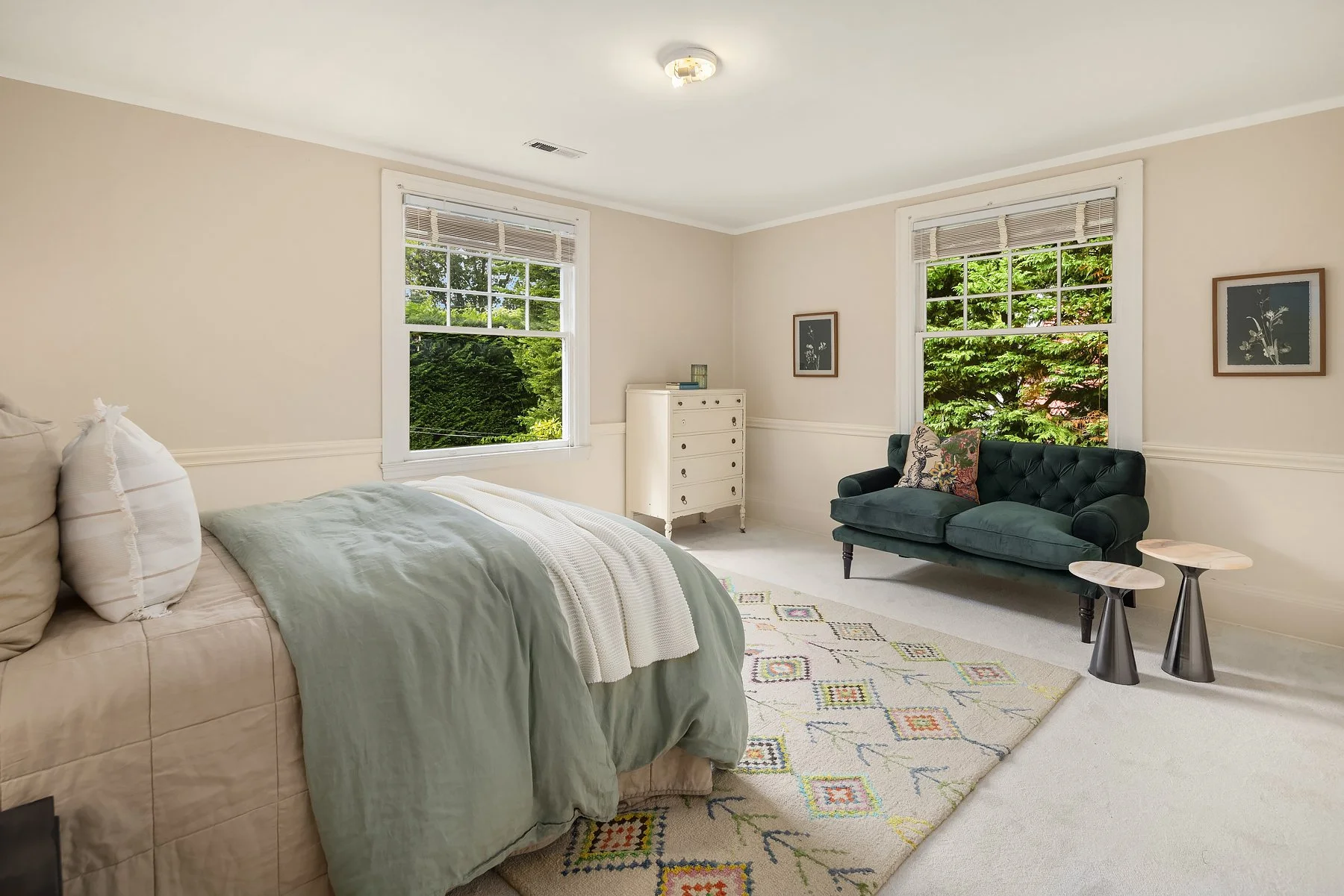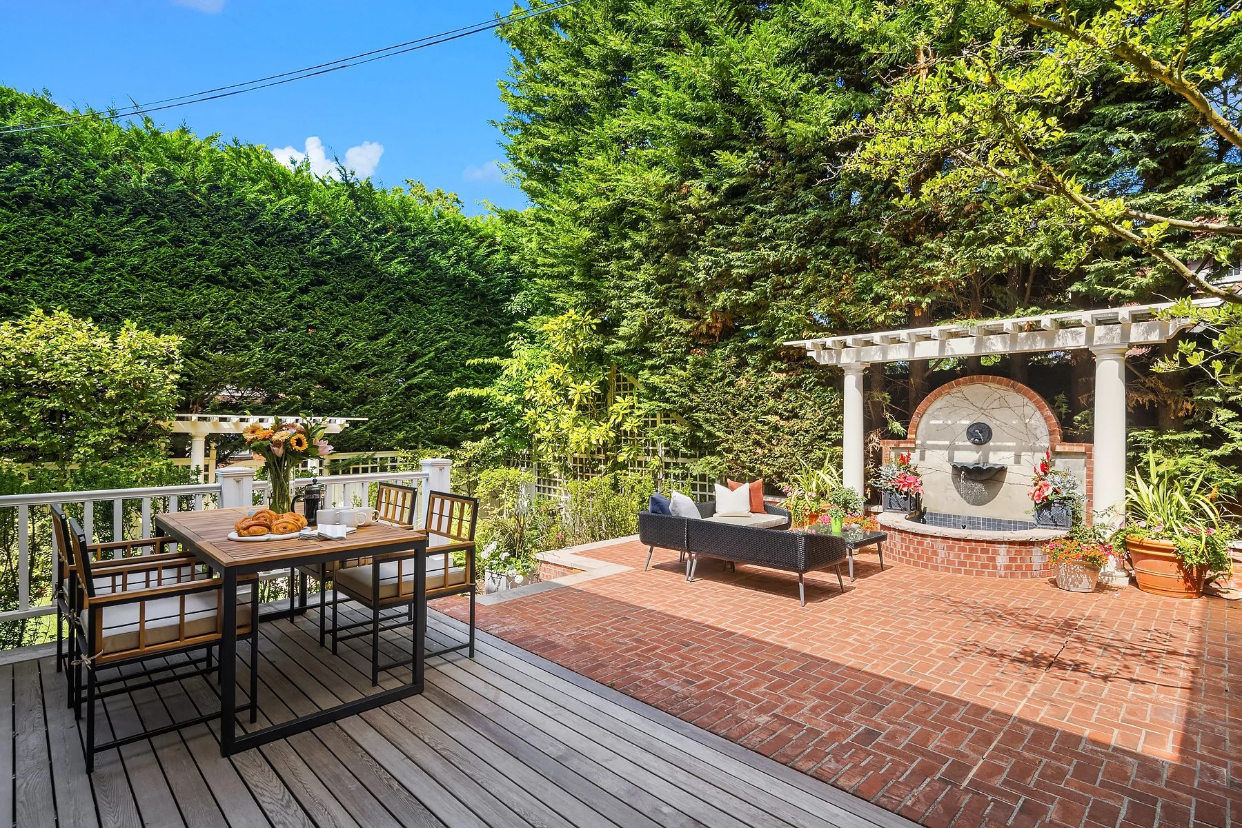 Discover this charming Colonial Revival home, where classic design meets modern comfort. Step into the spacious living room with a cozy fireplace and French doors that open to both the front porch and back deck. The kitchen boasts a casual eating nook and window seats, opening to the backyard for an effortless indoor-outdoor flow. The office nook with built-ins provides a functional workspace, while the formal dining room enhances the home’s timeless elegance.