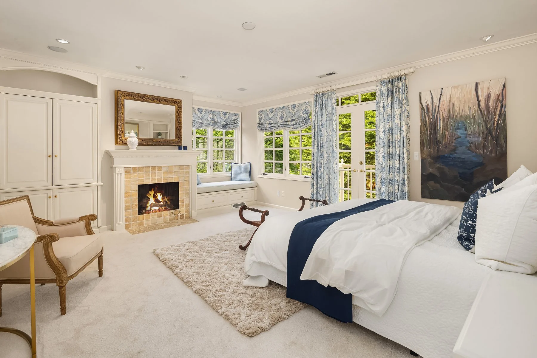 Upstairs, four generously scaled bedrooms await, including a primary suite featuring a private balcony, fireplace, five-piece bath, walk-in closet, and window seat. The lower level offers additional versatility with ample storage space and a bonus room.
