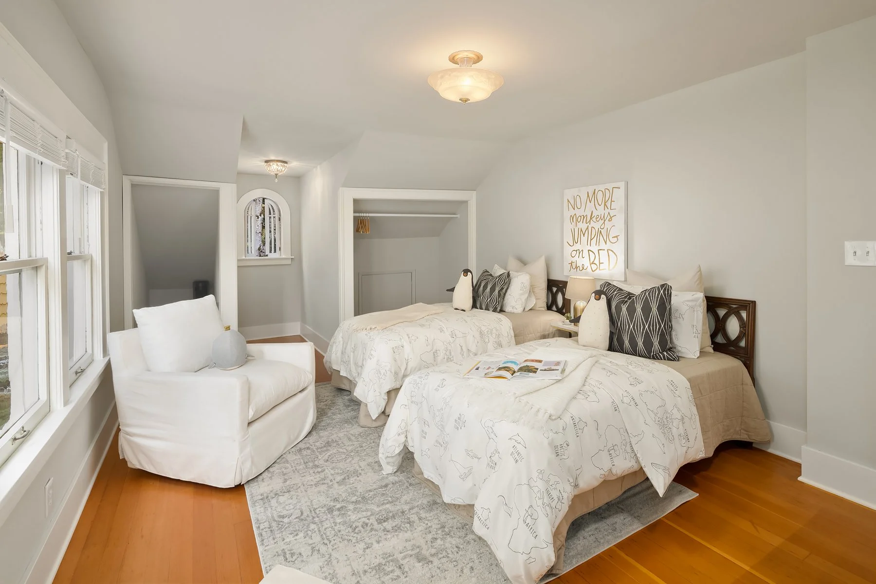 Four bedrooms total, including two upstairs, each with their own bathrooms and whimsical rounded windows. Office for easy work-from home; updated bathrooms with marble finishes; recently completed lower-level with separate entrance; detached 1-car garage plus parking spot. Blocks from the shops & eateries on 15th, St. Joe’s School, and vibrant Capitol Hill living!
