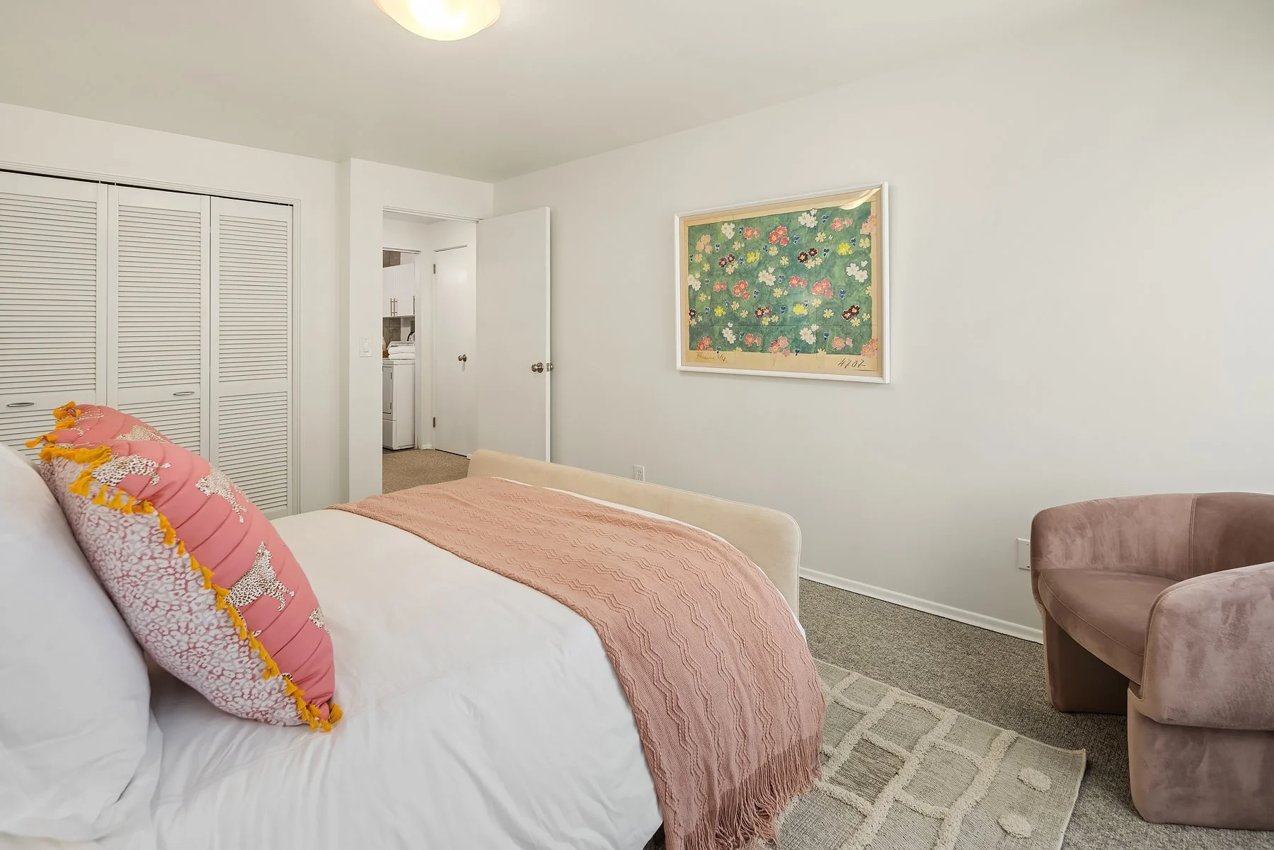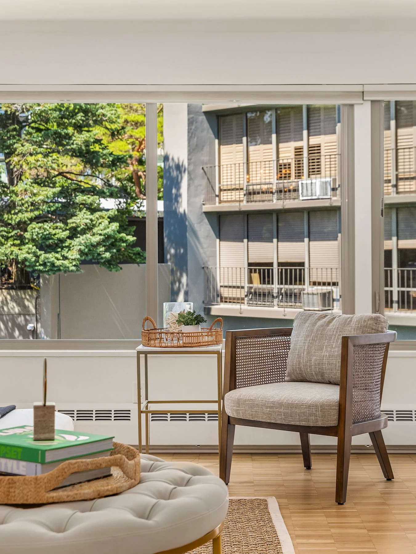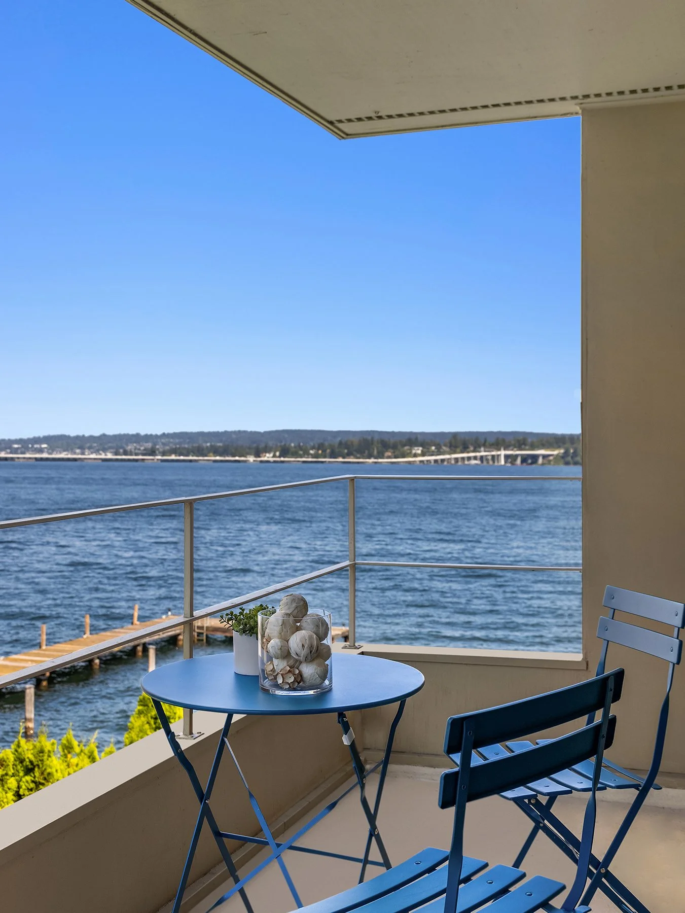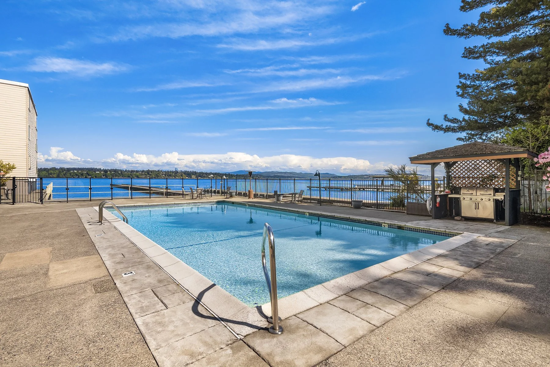 Welcome to Lanai Apartments, located in a serene setting beside Lake Washington. This 2-bedroom, 1-bathroom unit boasts captivating views of Lake Washington from its covered balcony. The main living space offers walls of windows, a modern light fixture above the dining area, and balcony access. The spacious primary bedroom exudes comfort, and the adaptable second bedroom can serve as a home office or guest room. Updated full bath; in-unit laundry room; one parking space. Relax with a refreshing dip in the pool or invite friends for a BBQ and soak up the sun! Perfectly located in coveted Madison Park, which offers an array of upscale dining and shopping options nearby.