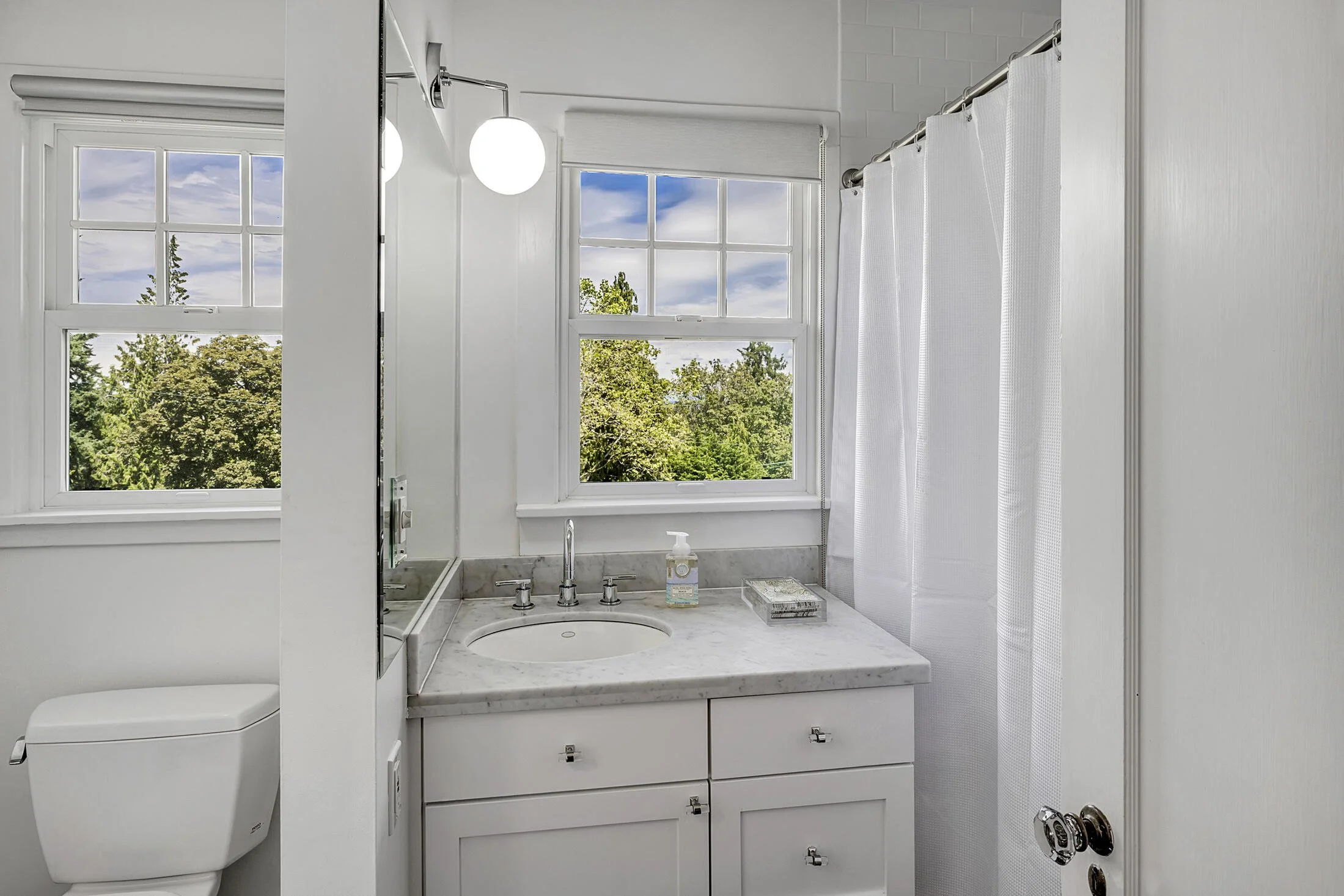 Upstairs, four bedrooms provide flexibility for guest rooms, offices, gym, etc. The spacious primary suite features a luxe Cararra marble-clad bath with heated floors. A spacious lower level is complete with the 5th bedroom, full bath, laundry room, and media room with exposed brick. A/C, 2018 roof, abundant storage, and detached 1-car garage are also featured. The perfect sanctuary that feels like it’s away from it all, while being conveniently close to the UW, I-5, Volunteer Park, shopping & restaurants, and the Arboretum.