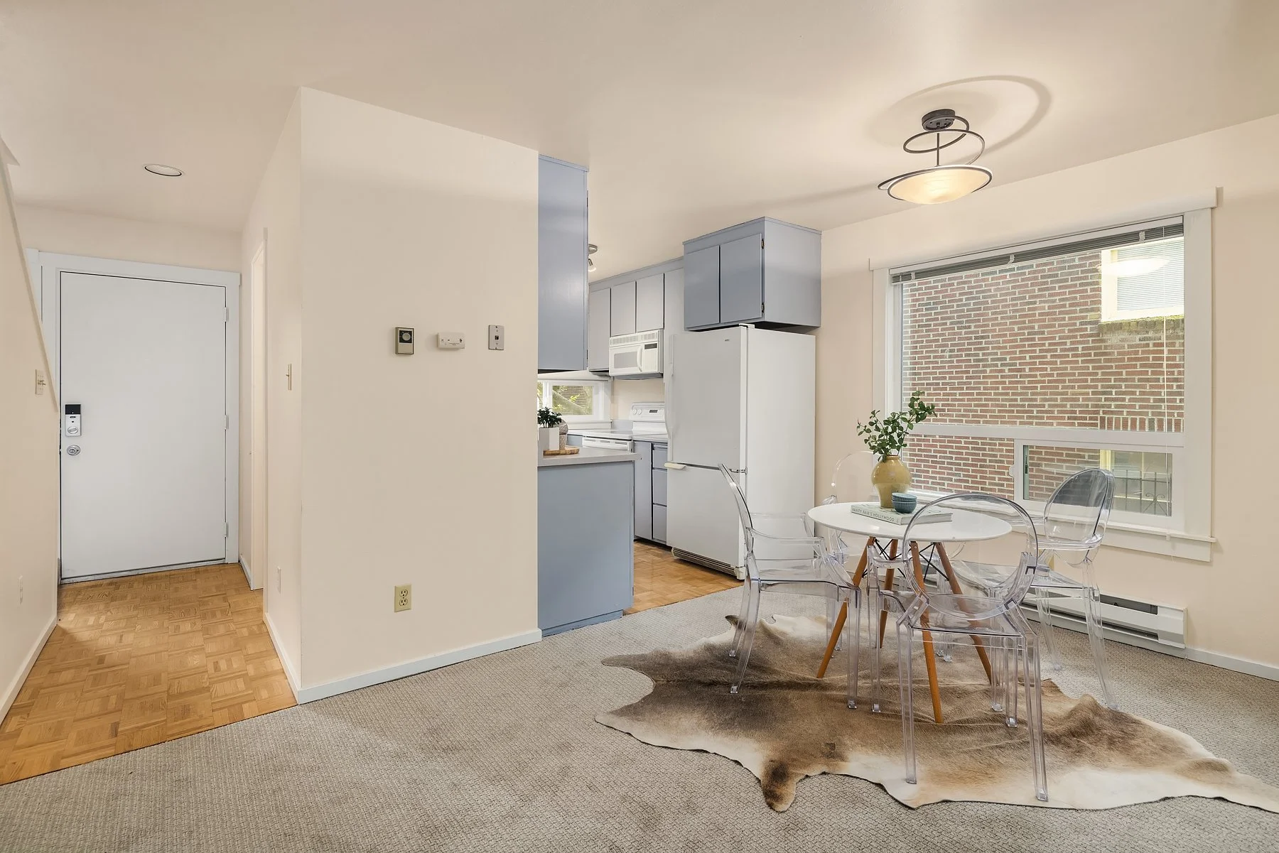 Nestled on a tree-lined street, this two-level townhouse condo offers ultimate urban living in vibrant Capitol Hill. Enjoy easy access to coffee shops, restaurants, Trader Joe’s, & the lively Pike/Pine & Broadway areas, w/ downtown Seattle just minutes away. Full of natural light from large, updated windows, the main floor features a spacious living room w/ a wood-burning fireplace, a dining area, kitchen, & powder room. The upper level includes 2 inviting bedrooms, a skylight, a full bath, & in-unit laundry. A private outdoor space adds to the allure, making it ideal for relaxation or entertaining. W/ ample storage, designated carport parking, & professionally maintained complex, this home perfectly blends comfort & city. Walk Score of 96.