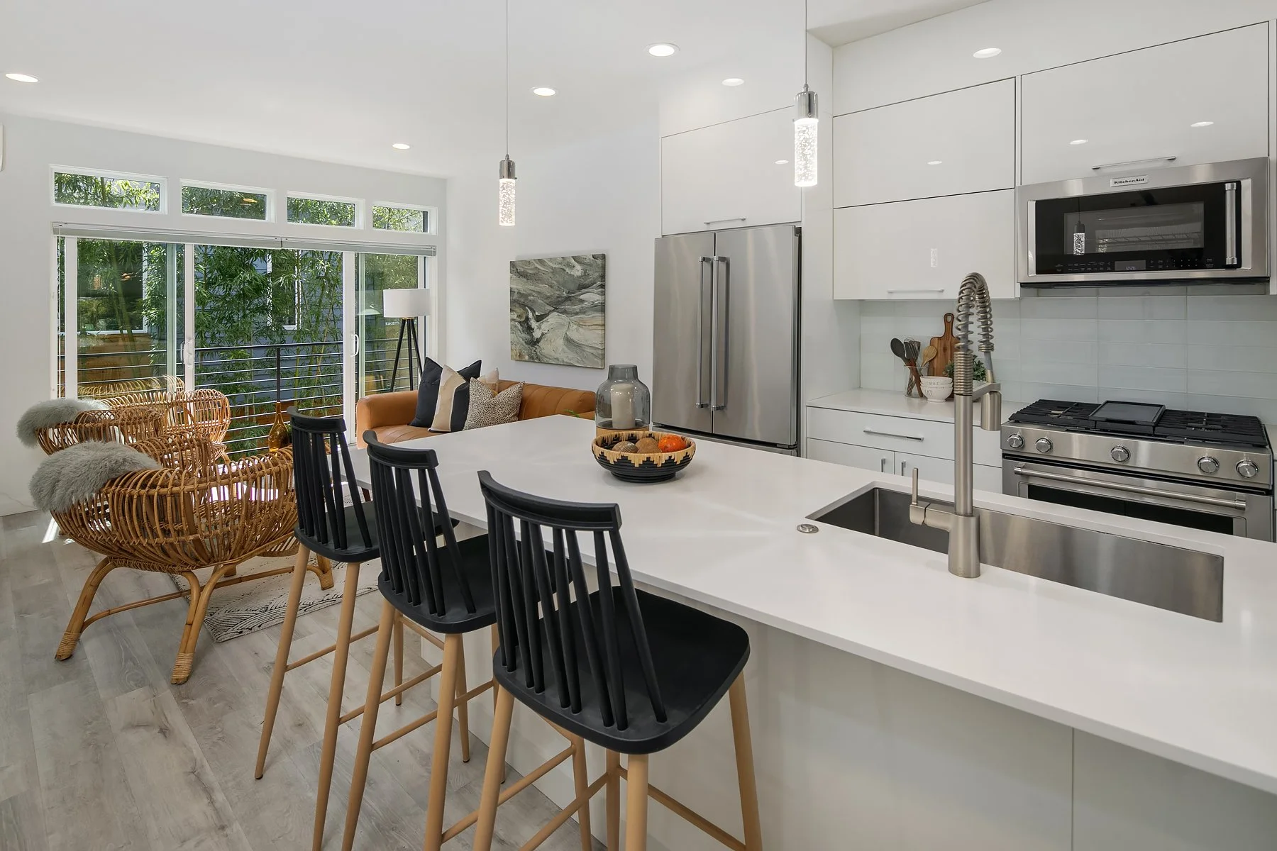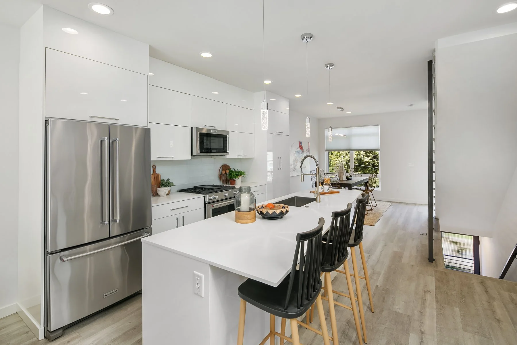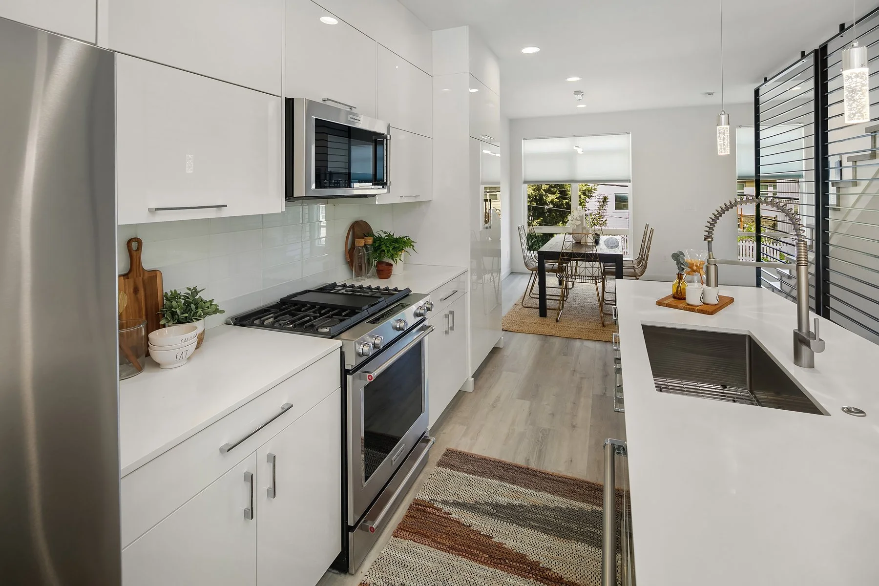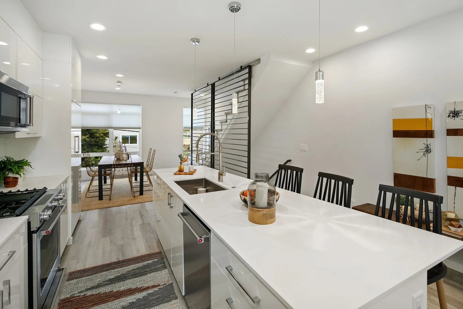 Welcome to this luxe urban townhome with modern finishes and 4-star green design! Built in 2018 with three levels of living space featuring open concept interiors, high ceilings, and floor-to-ceiling windows. Sleek kitchen boasts cook’s island and stainless-steel appliances, with a seamless flow to adjacent dining & living areas. Primary suite offers a private balcony and serene bath with both shower & tub. Three other bedrooms can also serve as home offices, flex rooms, etc. Unbeatable rooftop deck with panoramic views of the city & Mt. Rainier ready for summer BBQs, lounging, or dining al fresco. Designated parking spot; A/C; alarm system. Contemporary living awaits with close proximity to coffee shops, eateries, downtown, and freeway access