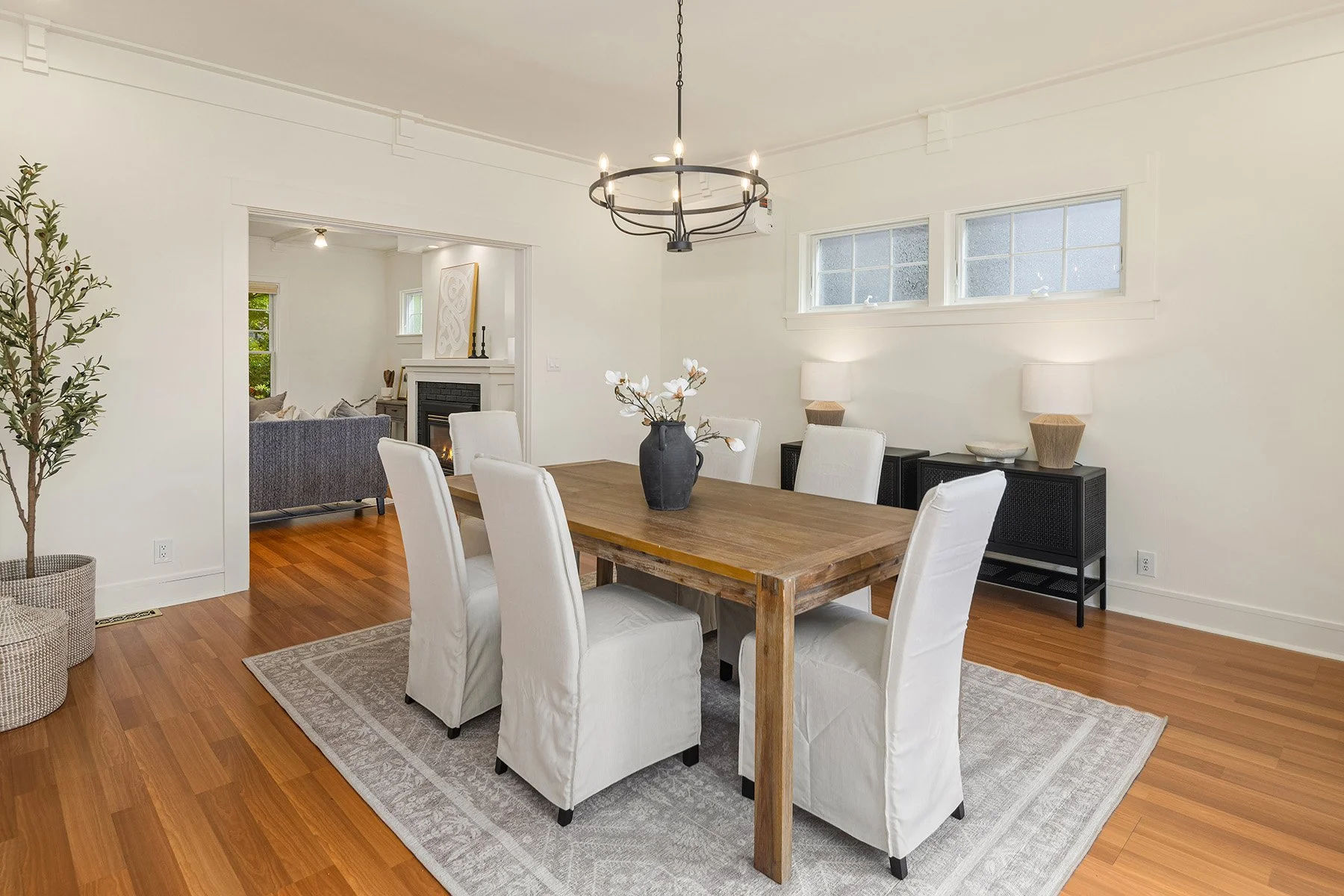 Welcome to this Capitol Hill charmer, where traditional elegance meets sophisticated Art Deco details. The fully fenced front yard, lush with greenery, leads to an inviting entrance. Inside, the main level is bright and welcoming, featuring a cozy living room with a gas fireplace and a formal dining room. The kitchen boasts stainless steel appliances, gas range, and opens to a deck perfect for al fresco dining and lounging.
