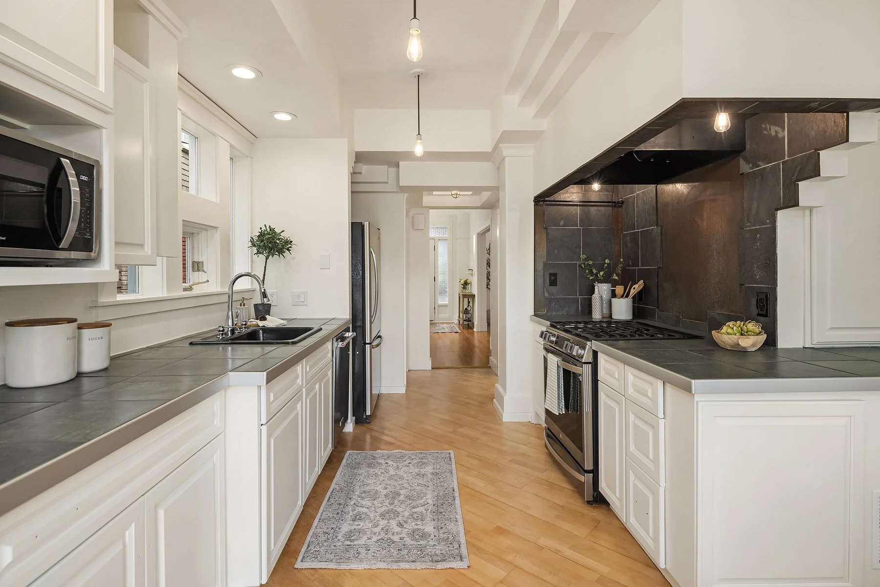 The lower level features a chic standalone suite with its own entrance, bedroom, kitchenette, living room, and full bath— perfect for guests or as a rental. Parking is convenient with off-street gated spaces for several vehicles plus an additional spot in the garage. Adjacent storage offers build-out potential, already plumbed and wired. Located in vibrant Capitol Hill, this home offers an exceptional urban lifestyle close to top dining and shopping experiences.