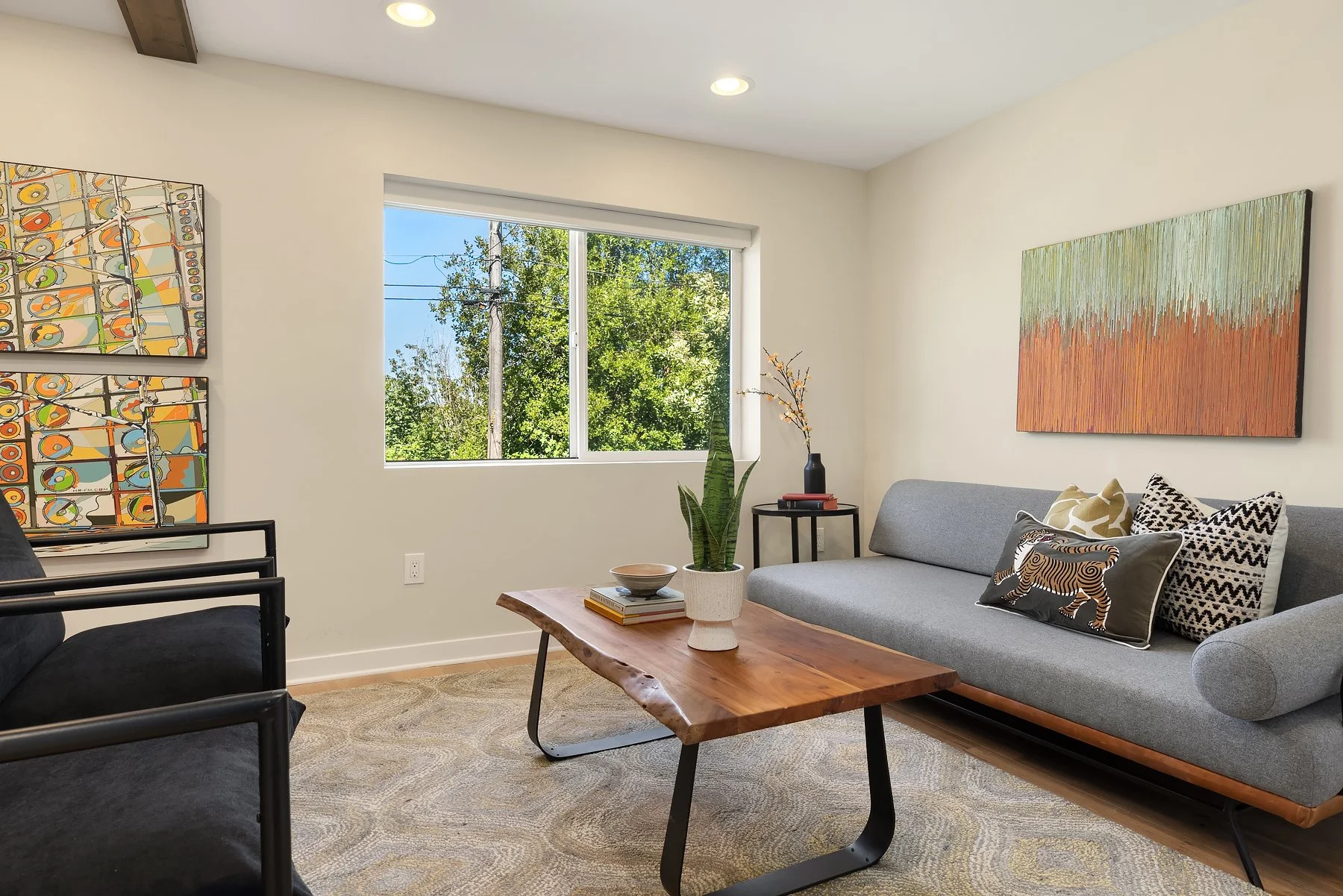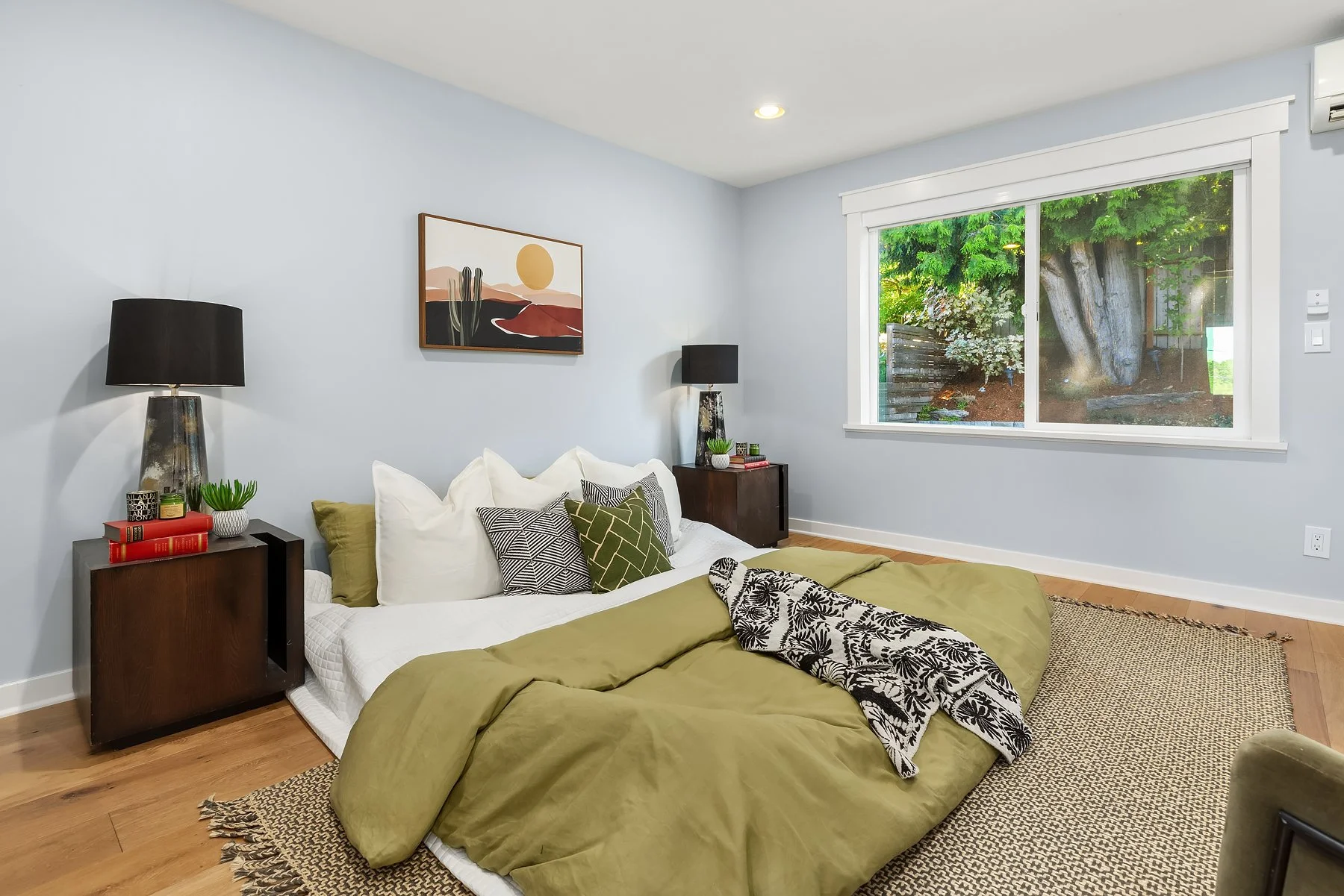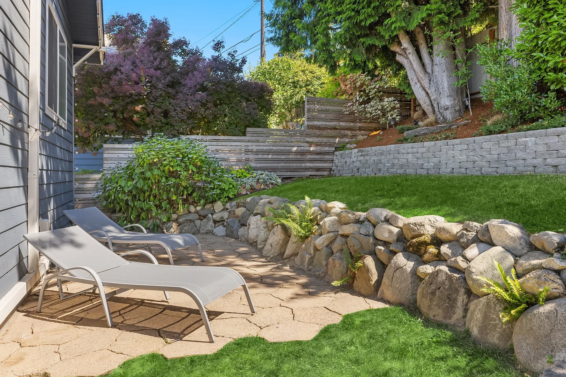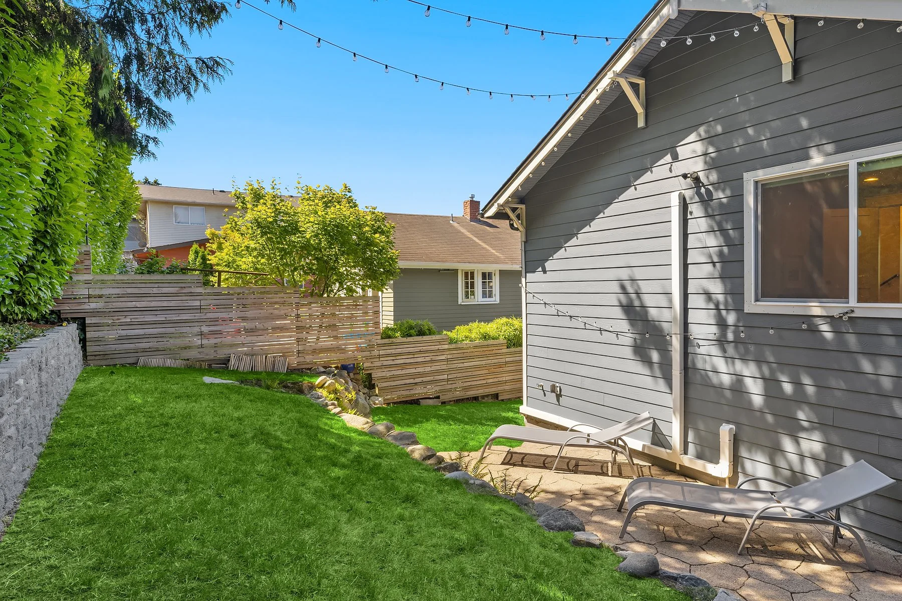 The backyard is fully enclosed and features a patio perfect for outdoor dining. Additional amenities include air conditioning and a long driveway with off-street parking. Situated close to Puget Park, Delridge Playfield, and the West Seattle Golf Course, this home offers a perfect blend of comfort and convenience.