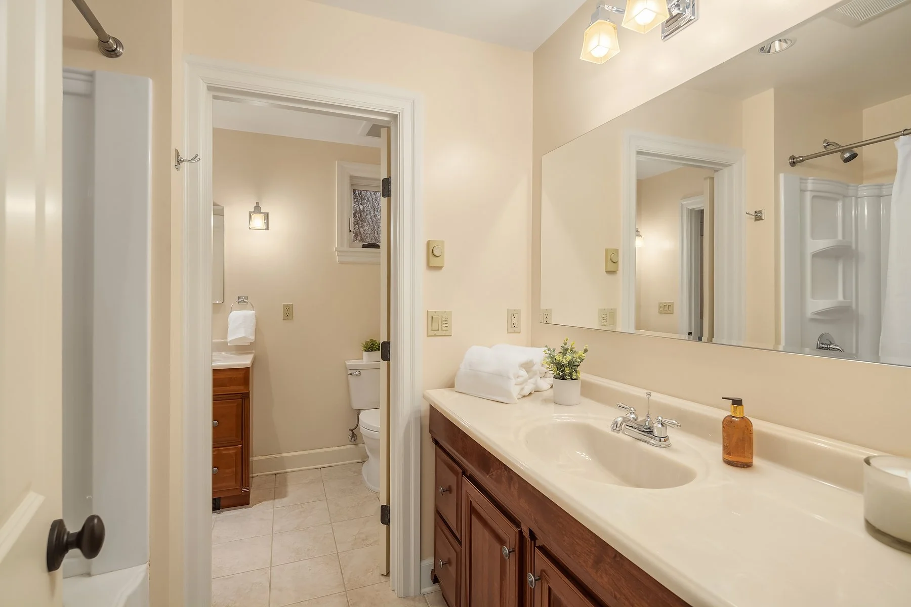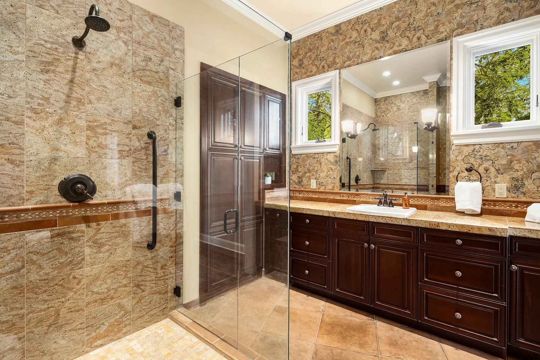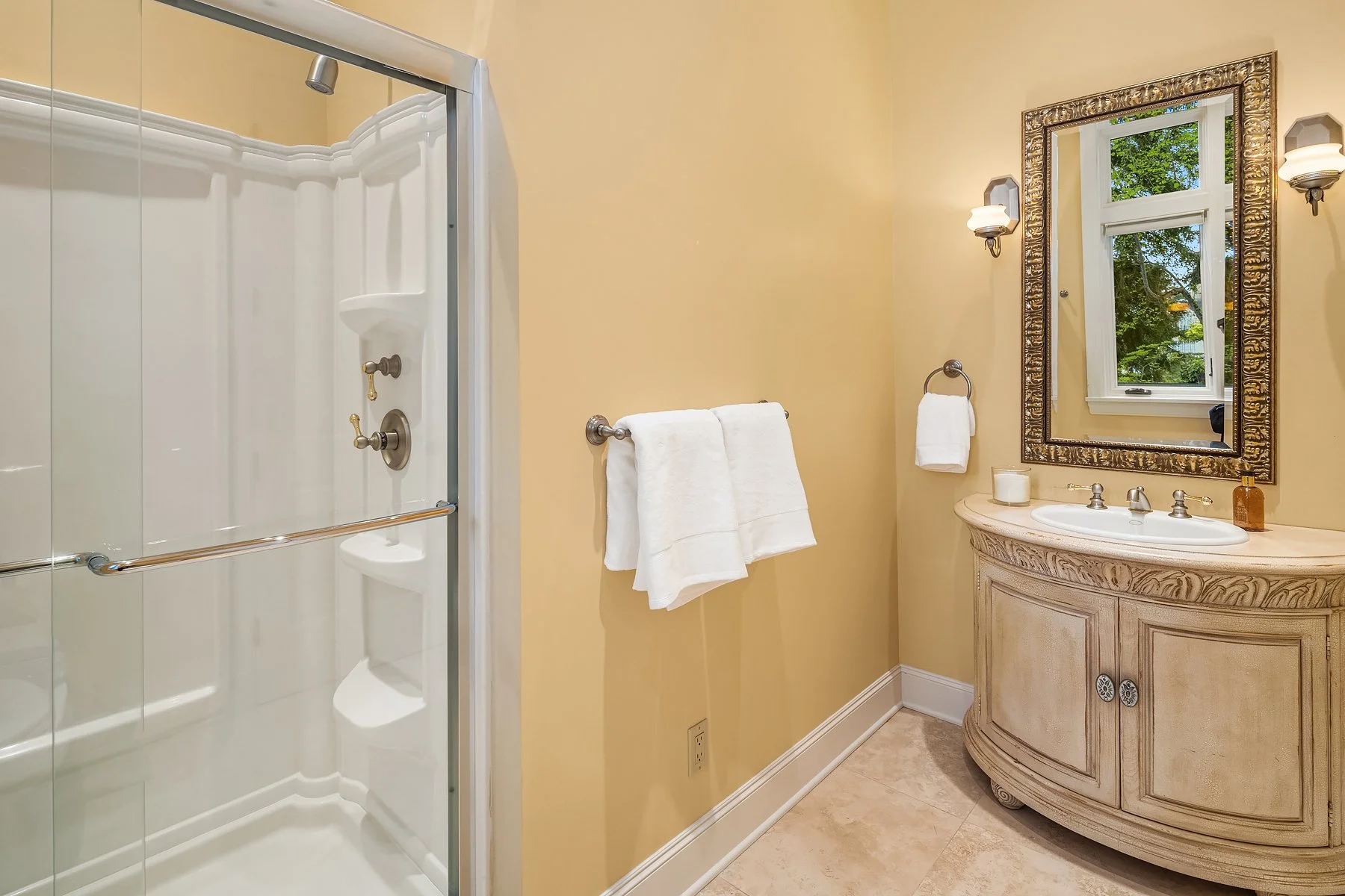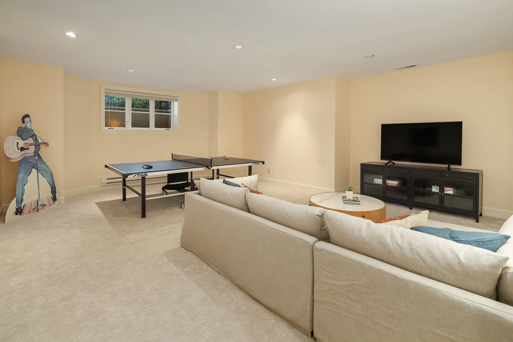 The home features four spacious bedrooms, including two primary suites on the upper level, each offering captivating views, en suite baths, and walk-in closets. They are connected by a catwalk that is open to the lower level, allowing you to take in the views through unobstructed walls of windows. The versatile lower level features a rec room, the fourth bedroom, and abundant storage.