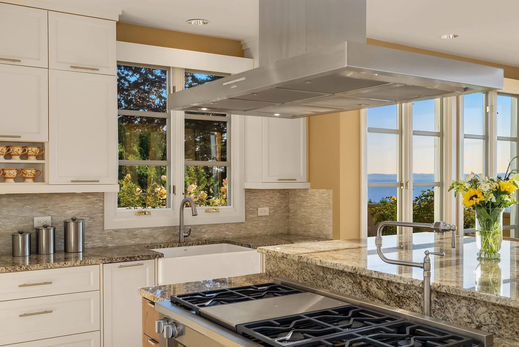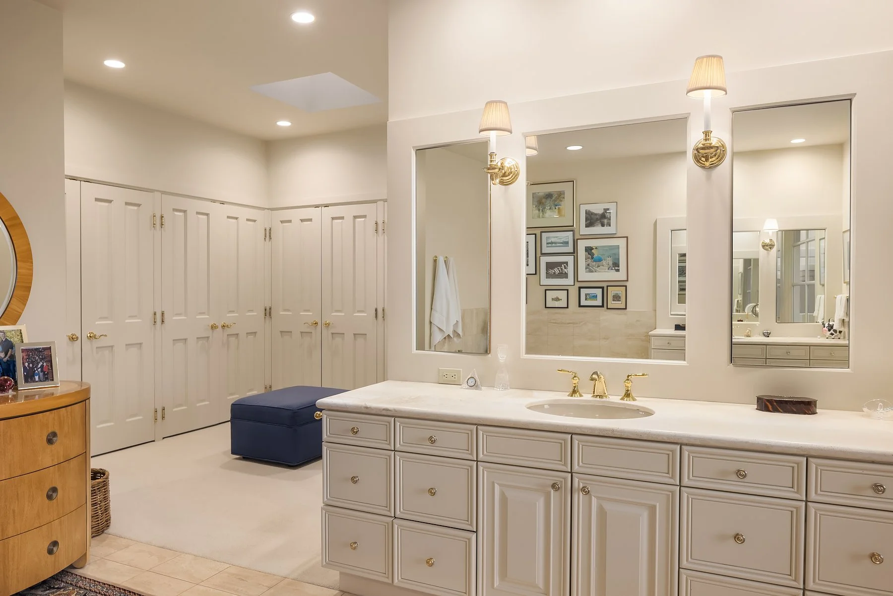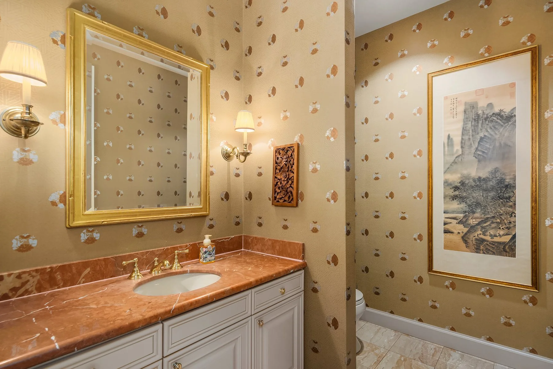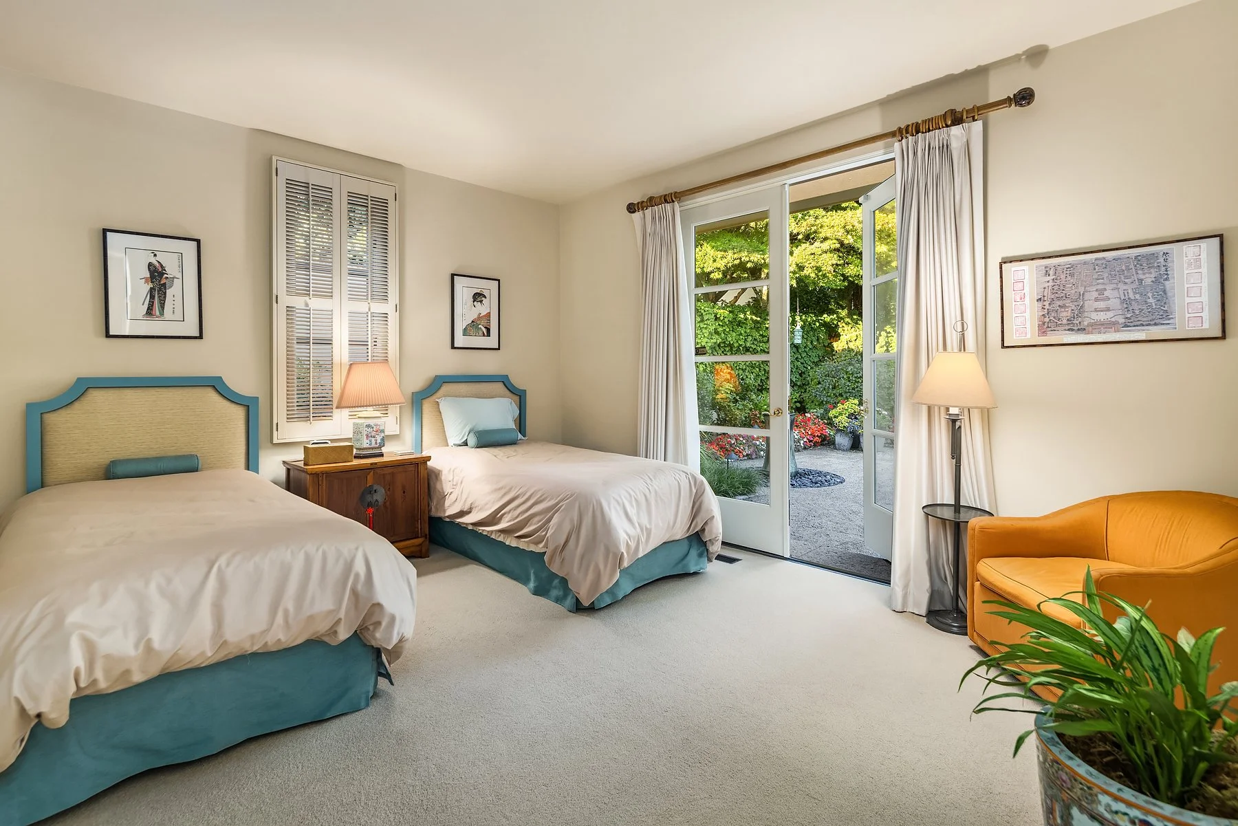 The primary suite is spacious, and opens up to the home’s signature views overlooking the Puget Sound and Olympic Mountains. It also features an opulent bath and oversized walk-in closet. The second bedroom is en suite and offers a unique garden patio with a tranquil water feature, while the third bedroom can double as a home office.