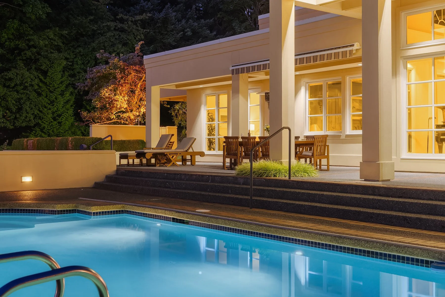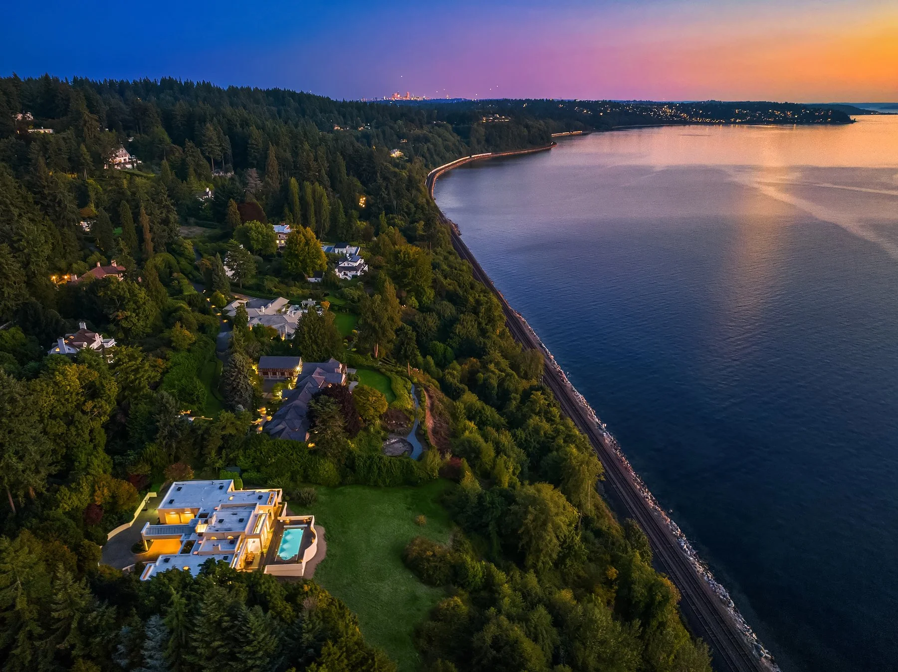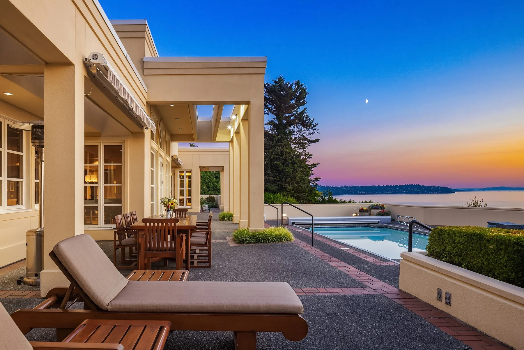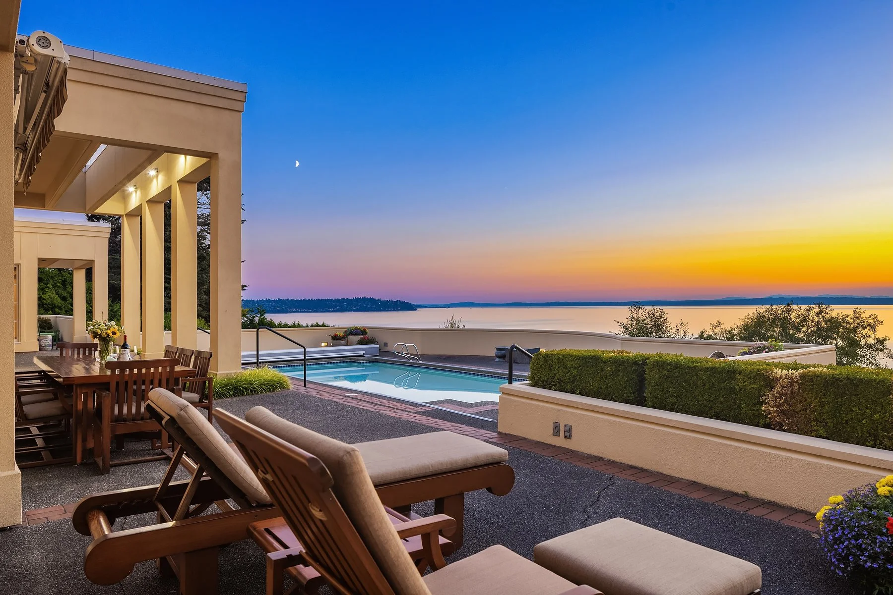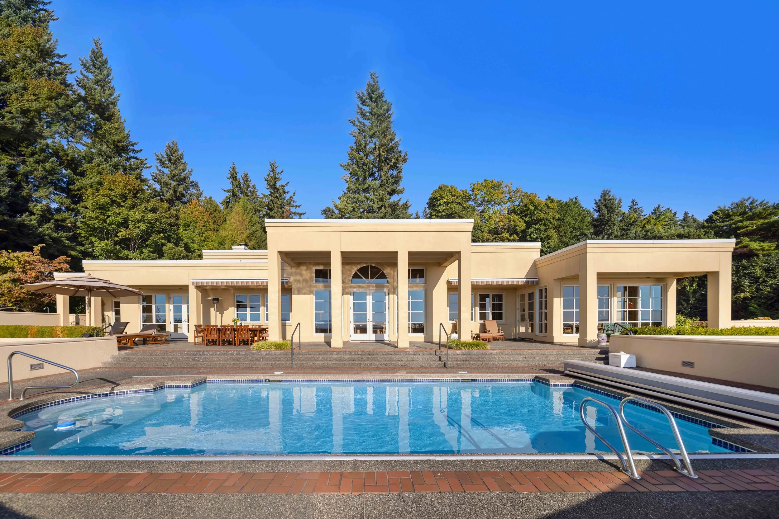Externally, the home's design embraces its breathtaking surroundings. The inviting outdoor pool brings a touch of California Coast to this Pacific Northwest haven. The expansive view deck is an ideal spot for summer dinners al fresco, presenting an unparalleled view of vibrant sunsets. Additional features include an attached 2-car garage, laundry room, and a spacious circular driveway. Perfectly positioned in the Highlands, this residence resonates with those who appreciate architectural elegance combined with a serene lifestyle.