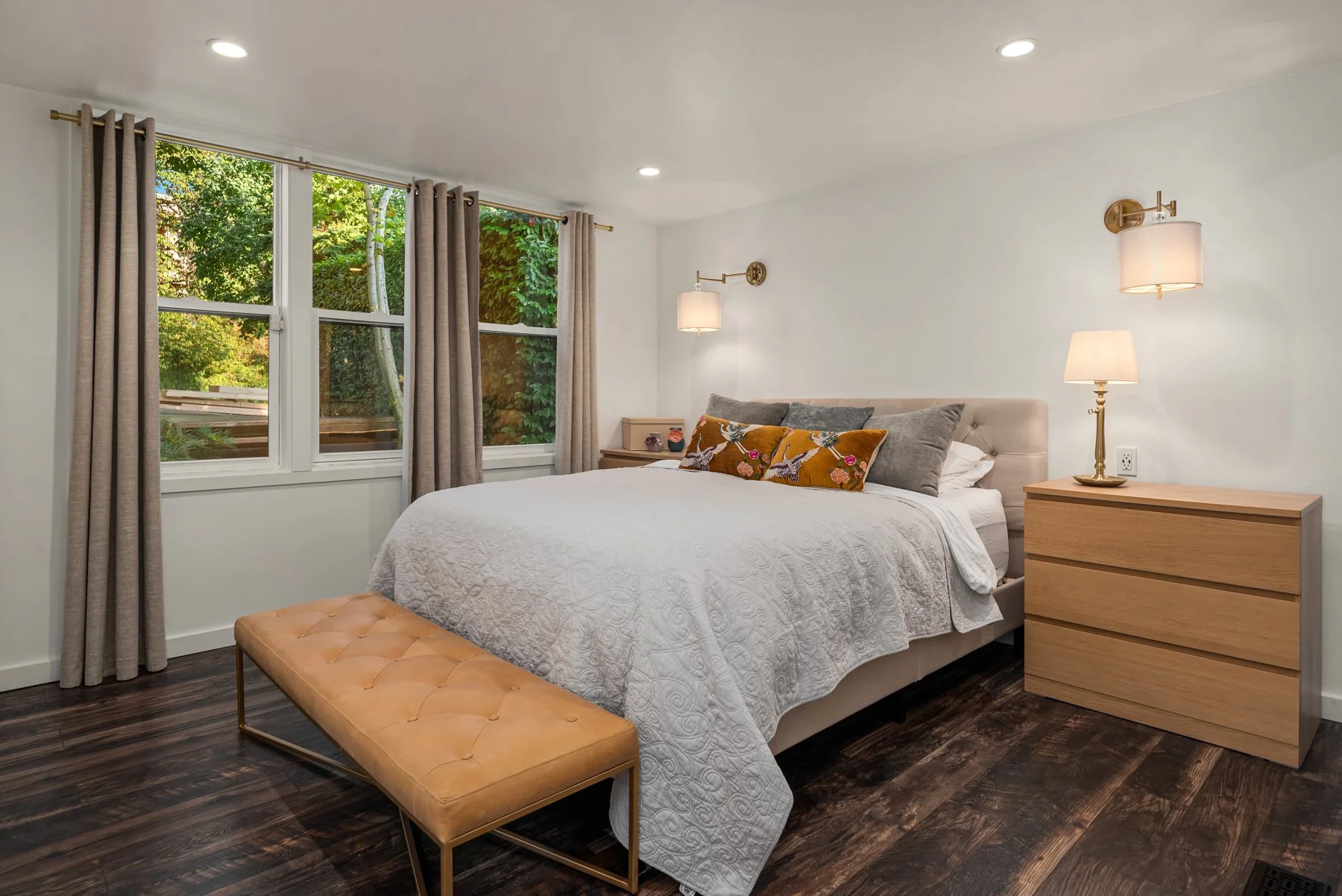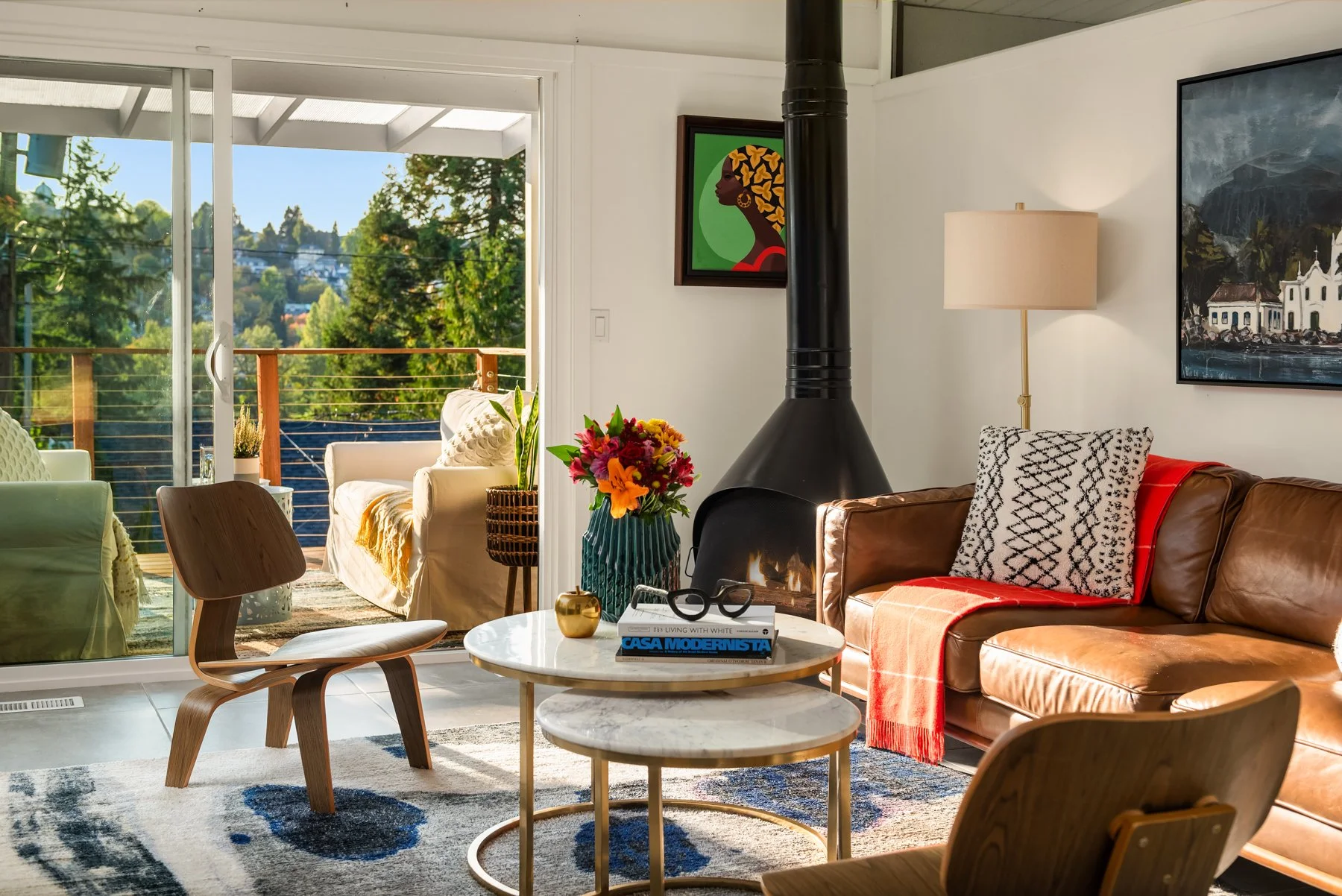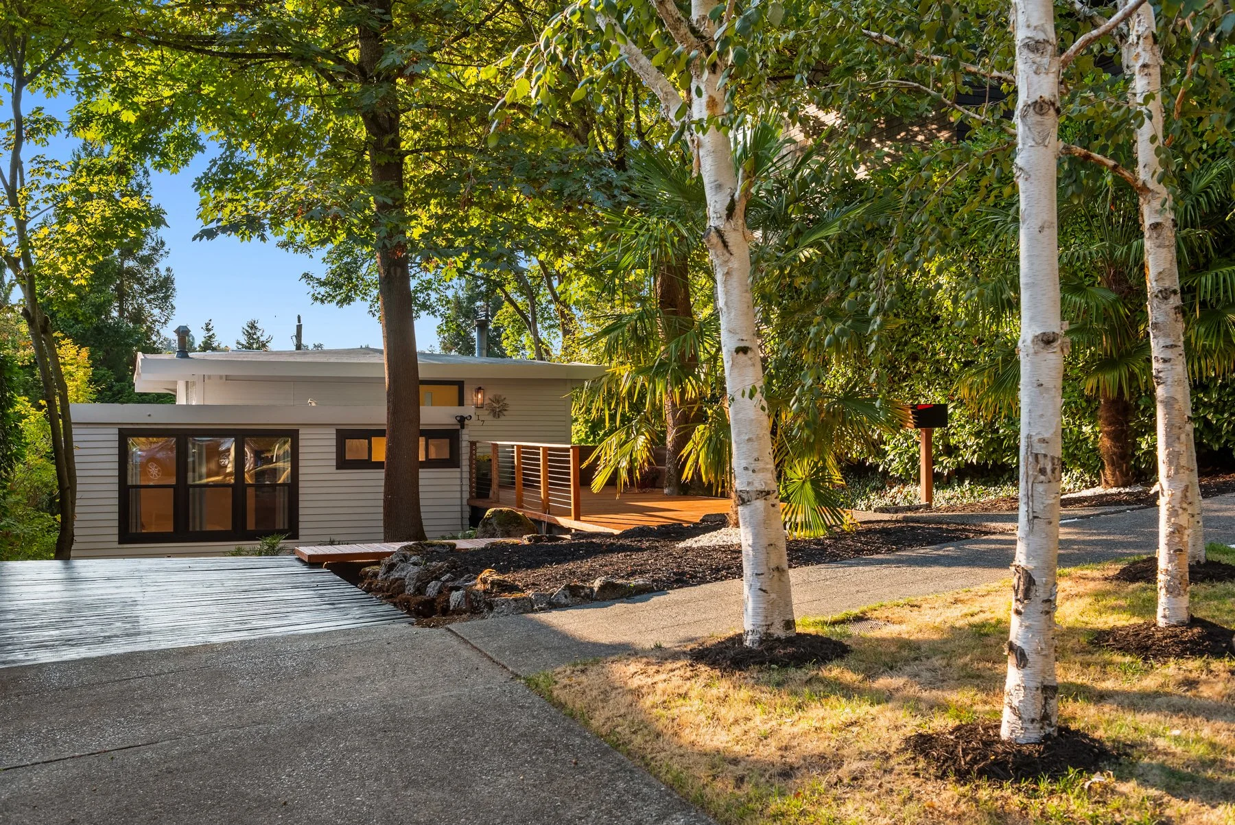 Mid-century Washington Park home, designed in the 1950s by a Japanese architect ahead of his time. This residence captures urban cool with a split-level layout that flows with ease. Vaulted ceilings and expansive windows fill the interiors with light. Marble counters, high-end appliances, and a vintage Preway fireplace add timeless style. A heated terrace feels like a treehouse, while the front deck shaded by mature trees offers neighborhood charm. Indoor-outdoor living connects to a stone patio, cabana, and entertaining area. Wine lovers will enjoy a naturally cool cellar (350+ bottles). Versatile rooms and a serene primary suite with walk-in closet and marble-tiled bath with heated floors complete this rare opportunity in one of Seattle’s most coveted neighborhoods.