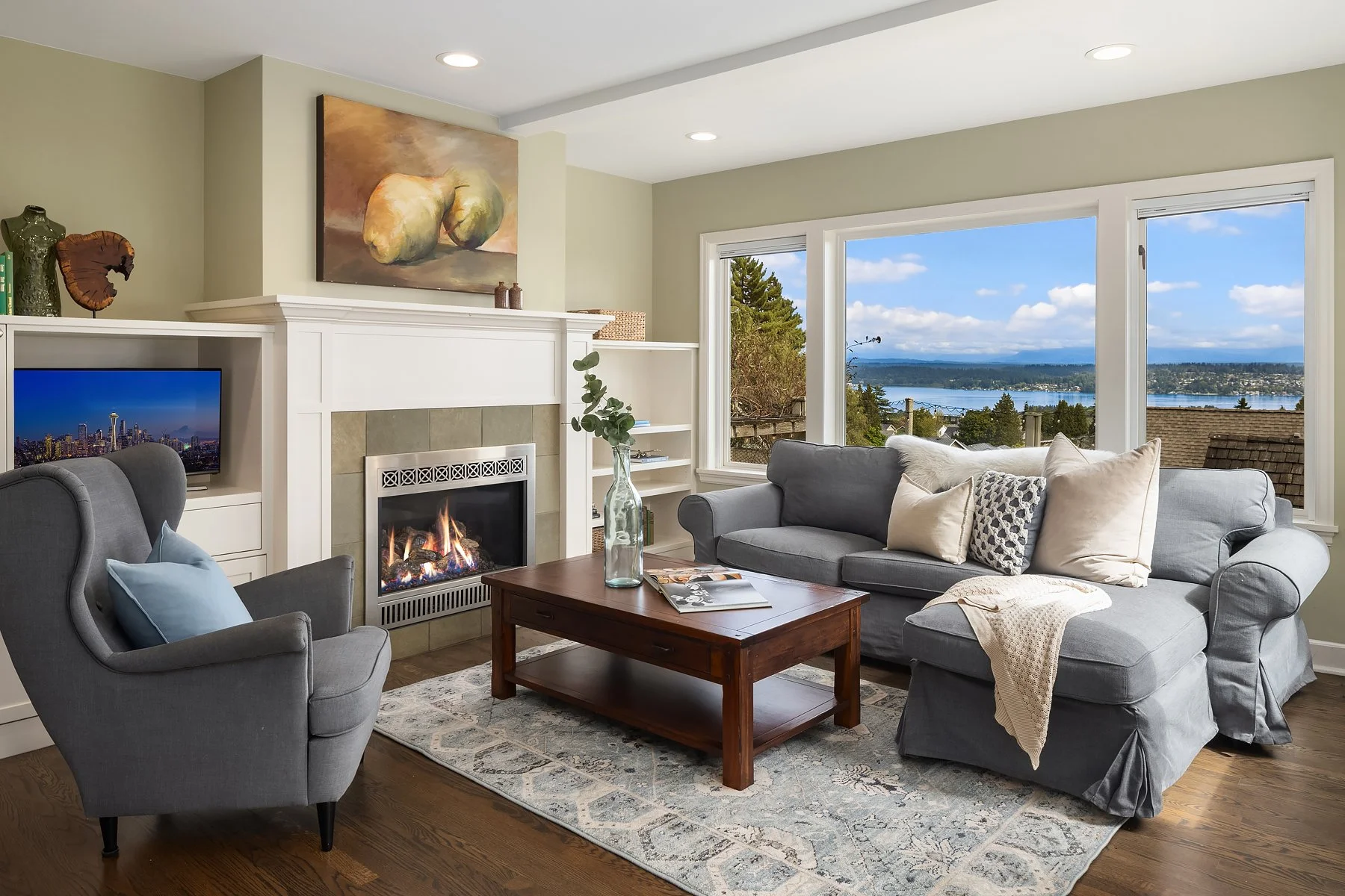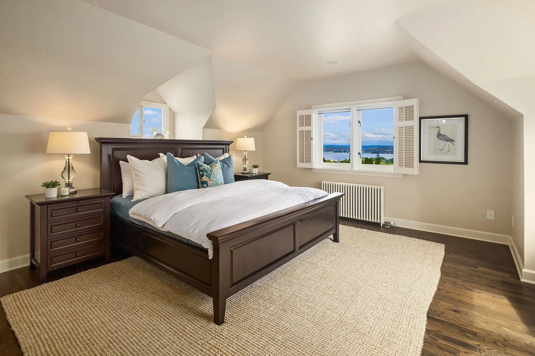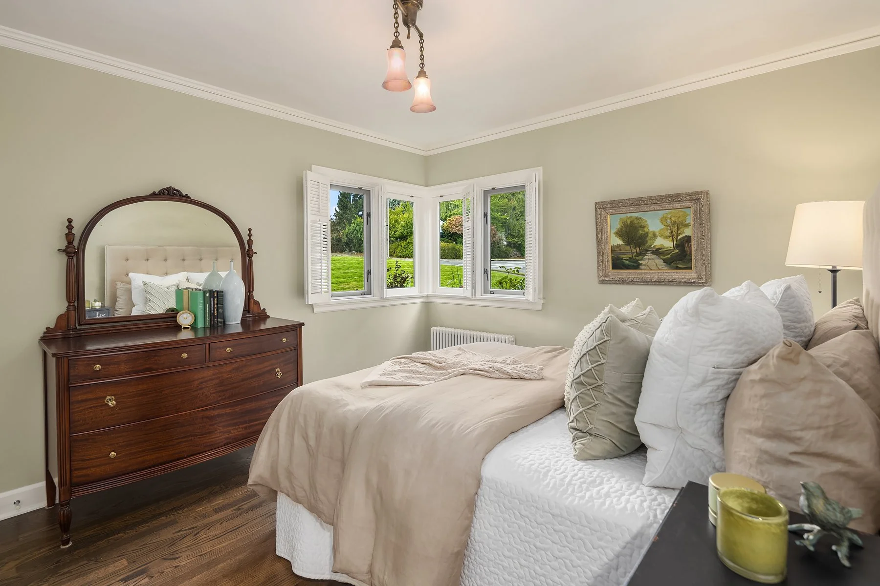 Situated on an oversized 15,000+sq ft coveted corner lot high atop View Ridge. This residence offers views to the Lake, Cascades and Mt. Rainier. Dining room; gourmet kitchen outfitted w/ Viking appliances open to the family room; A unique garden room crafts a novel flex space. The primary suite showcases views & an oversized 5 piece bath w/ walk-in closet. There are 5 bedrooms in the main residence, plus an DADU complete with kitchenette and ¾ bath. Additional rooms include a wood-paneled office & a cozy lower-level rec room. Surrounding grounds offer lush landscaping, terraced lawns, sport court and view deck. Unique possibility of transferring current owners View Ridge Swim & Tennis Club membership, surpassing the 13 year waitlist.