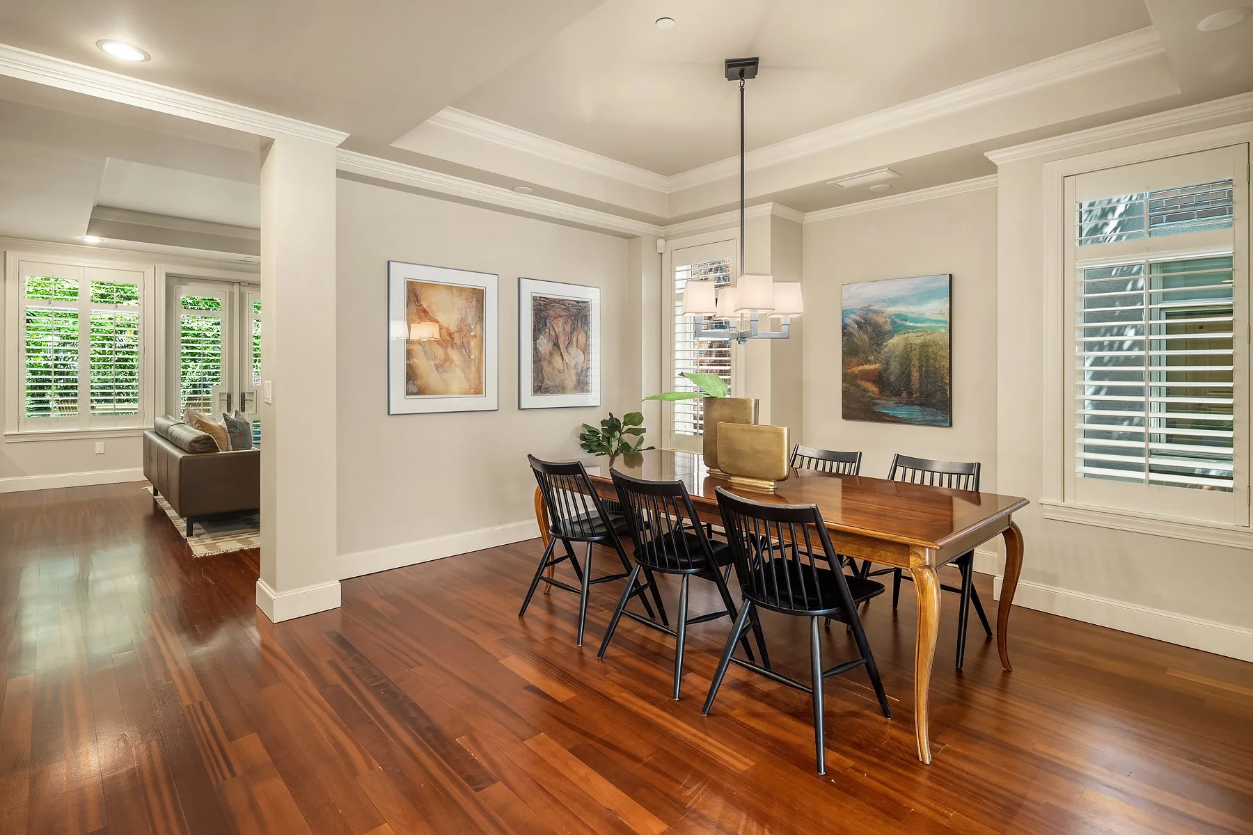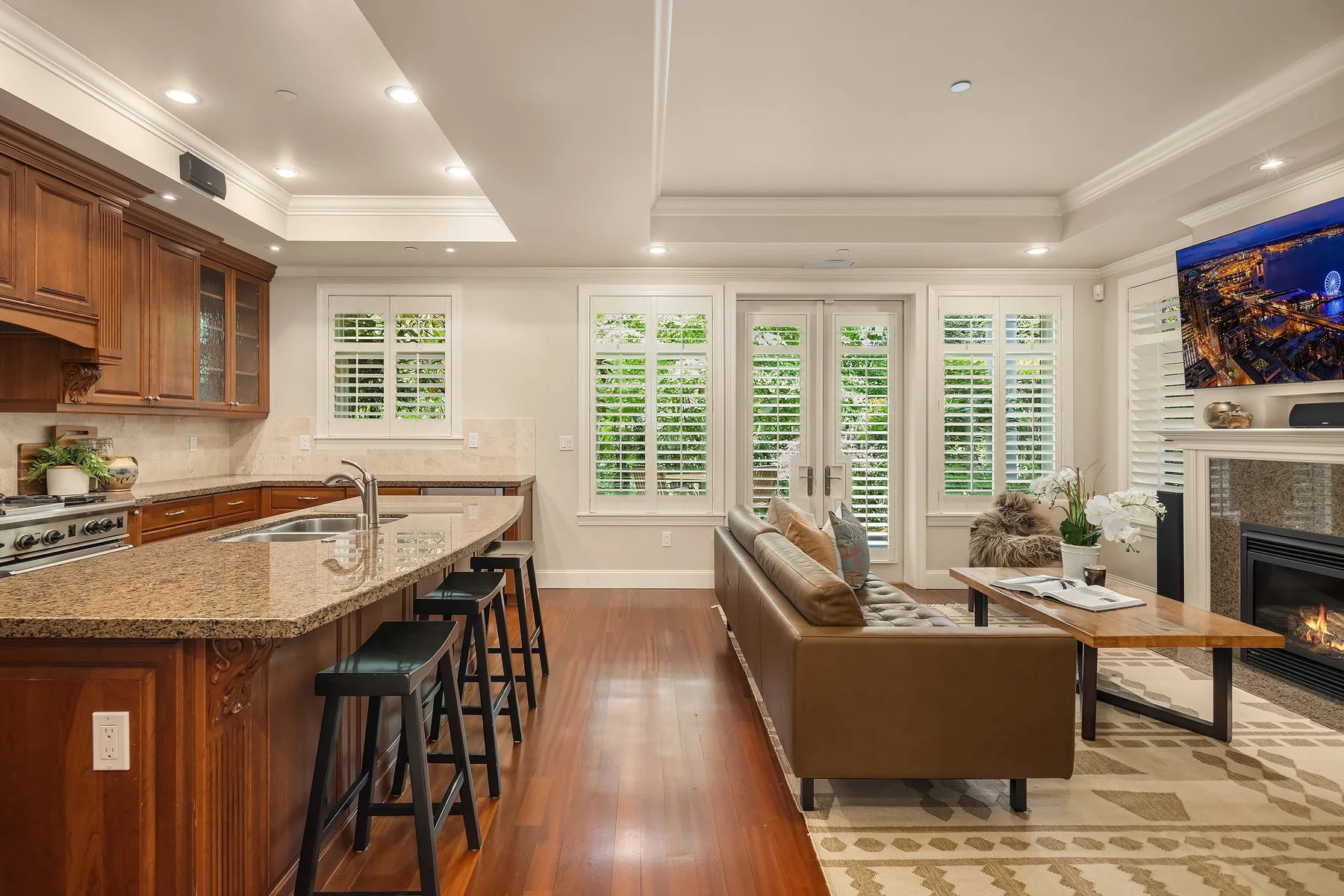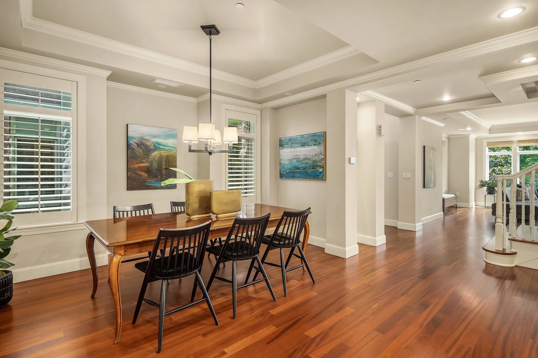 This sophisticated townhome is an urban oasis with rich architecture, gracious interiors, and thoughtful design in every detail. Dramatic 2-story entrance hall opens to a captivating living room with a gas fireplace and balcony. Chef’s kitchen overlooks the family room and features top-of-the line appliances, wine fridge, granite countertops, and cook’s island. Spacious dining room built to accommodate everything from casual dinners to large dinner parties.