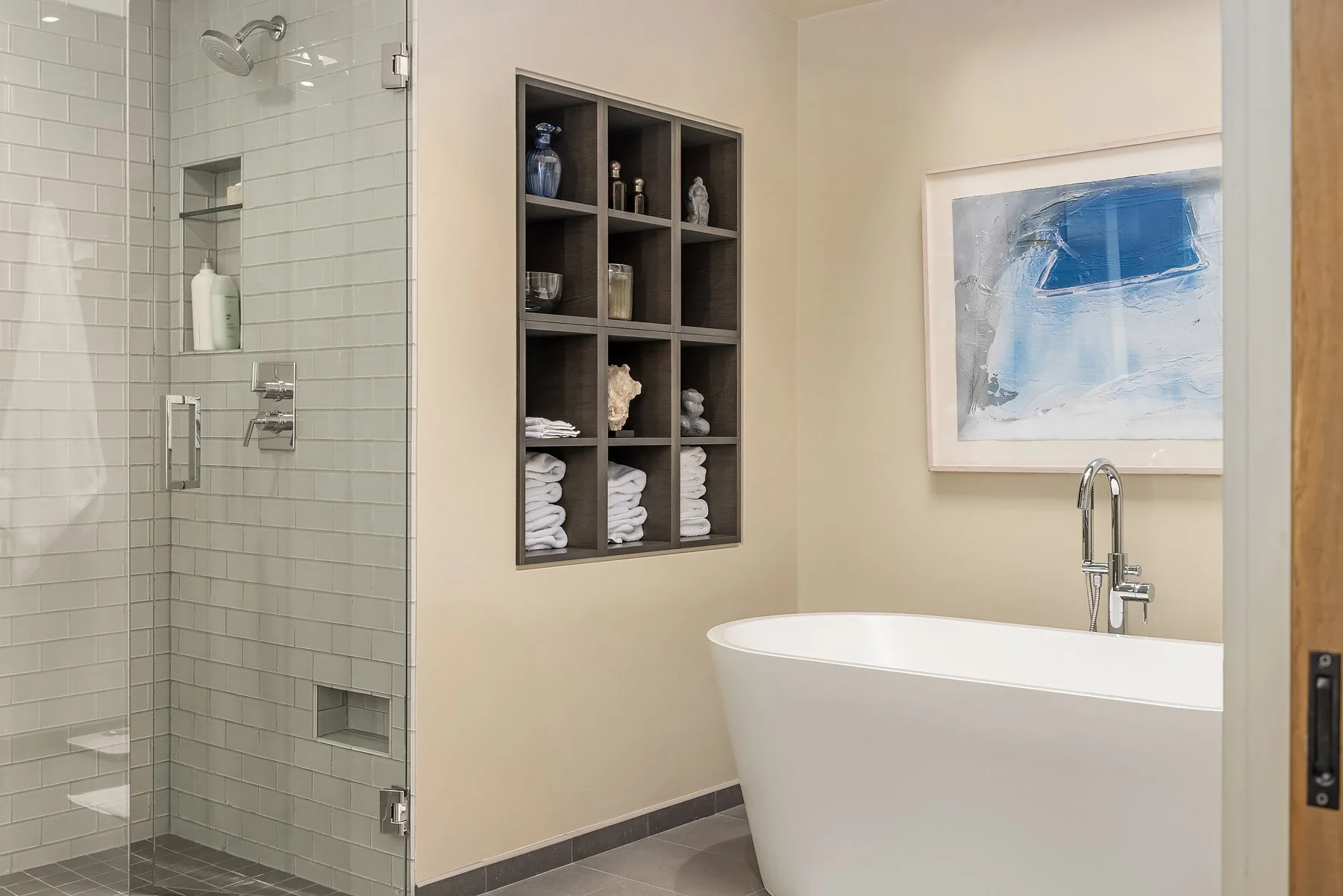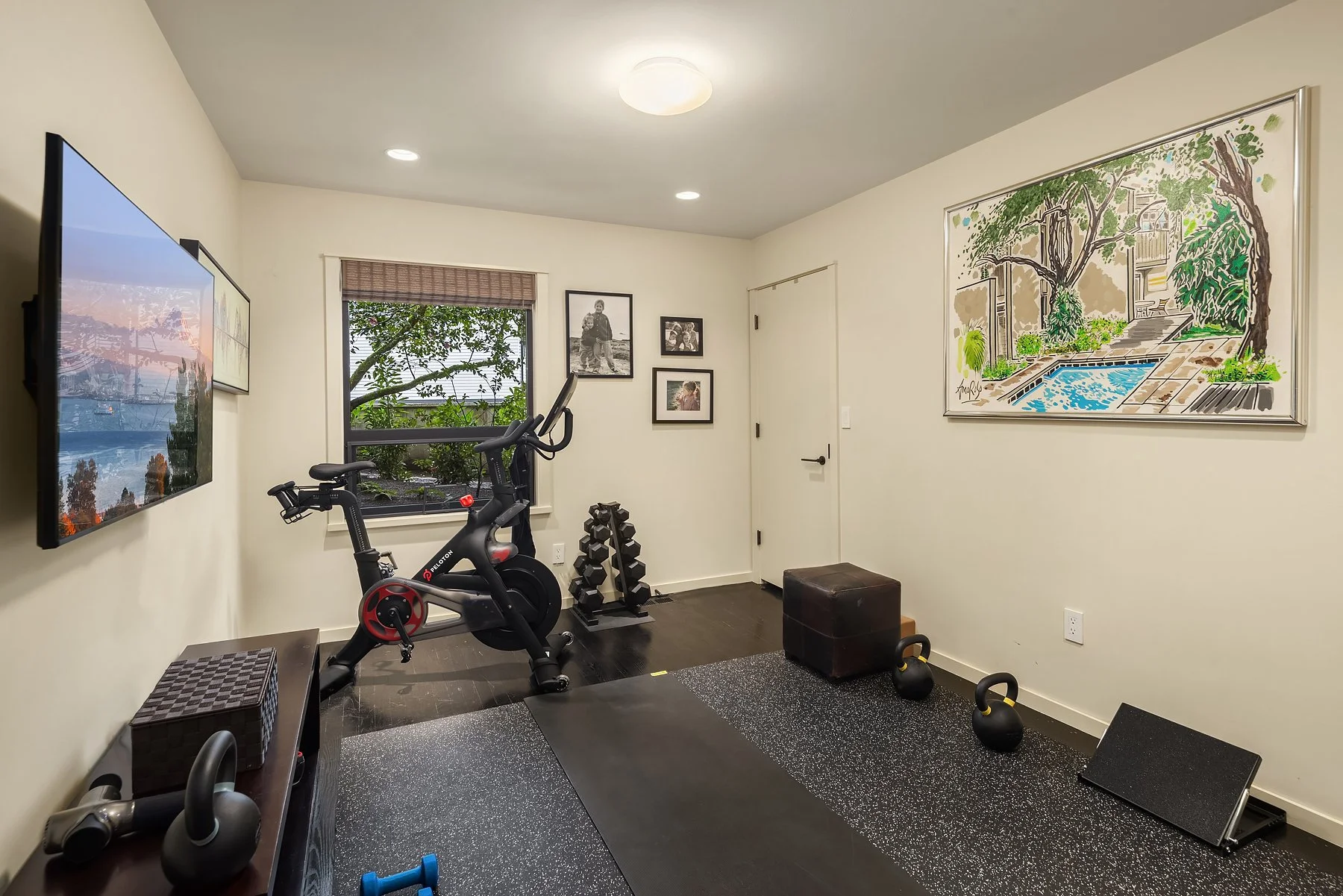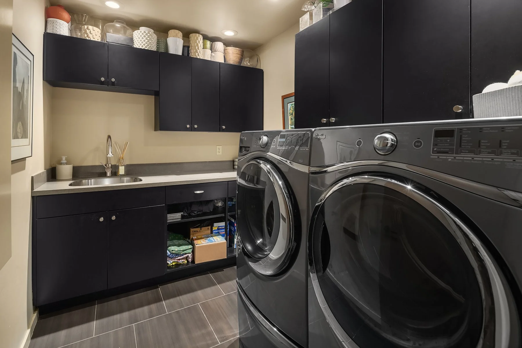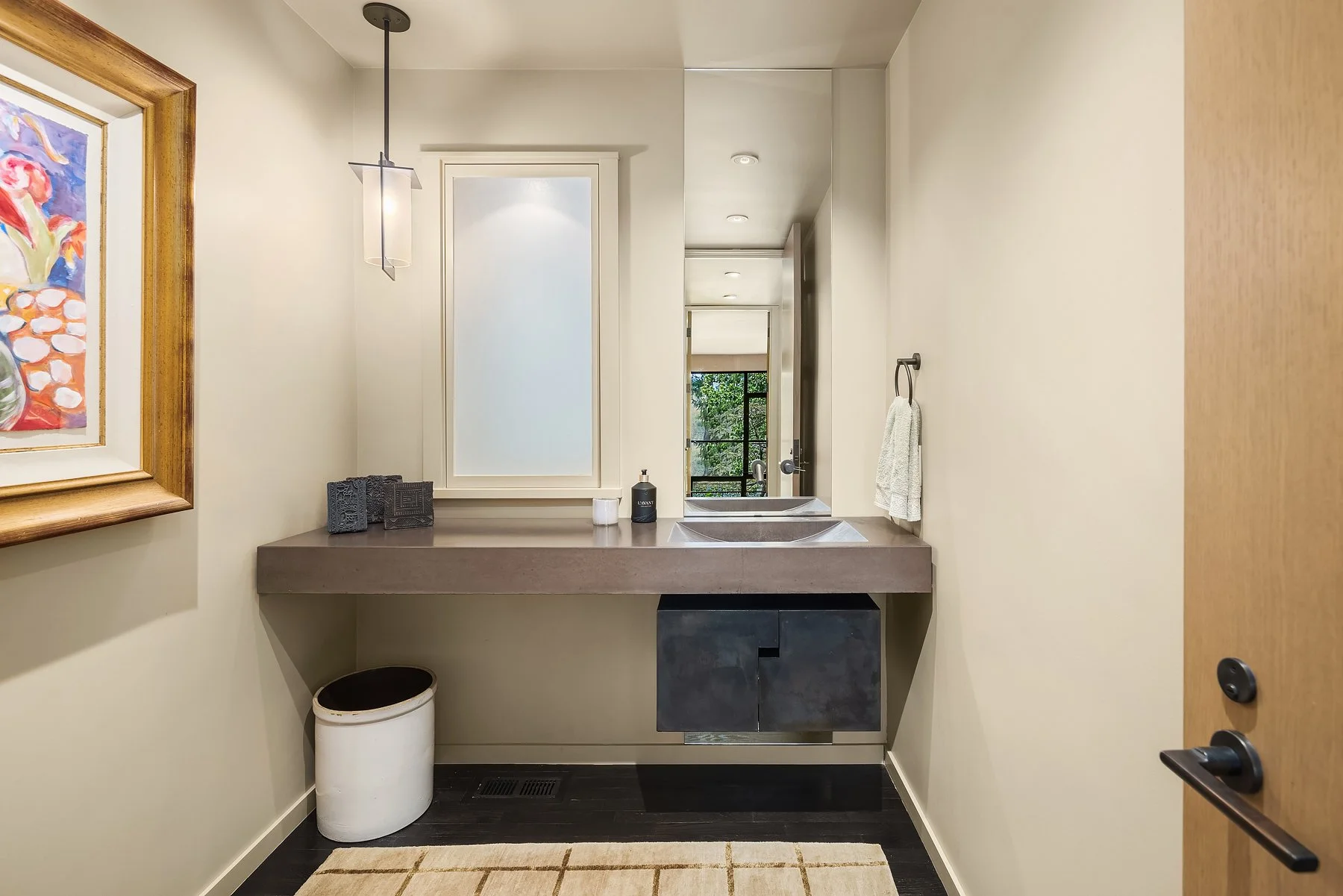 The private living spaces are all sanctuaries, with the primary suite offering a soothing bleached cedar ceiling, gas fireplace with flame sprayed nickel surround, and floor-to-ceiling doors that provide access to the grounds. The beautifully appointed spa-like bathroom offers ultimate relaxation. Additional accommodations include a flexible office/bedroom and a guest suite above the garage with its own kitchen and view balcony, ensuring privacy and comfort.
