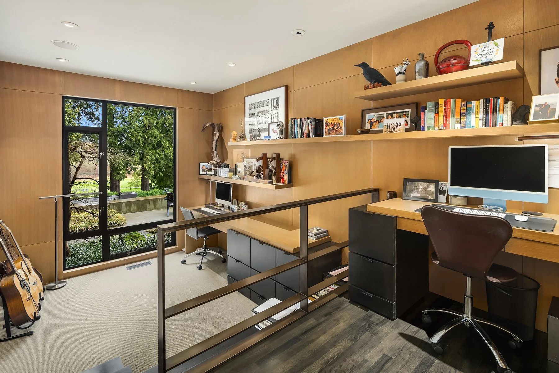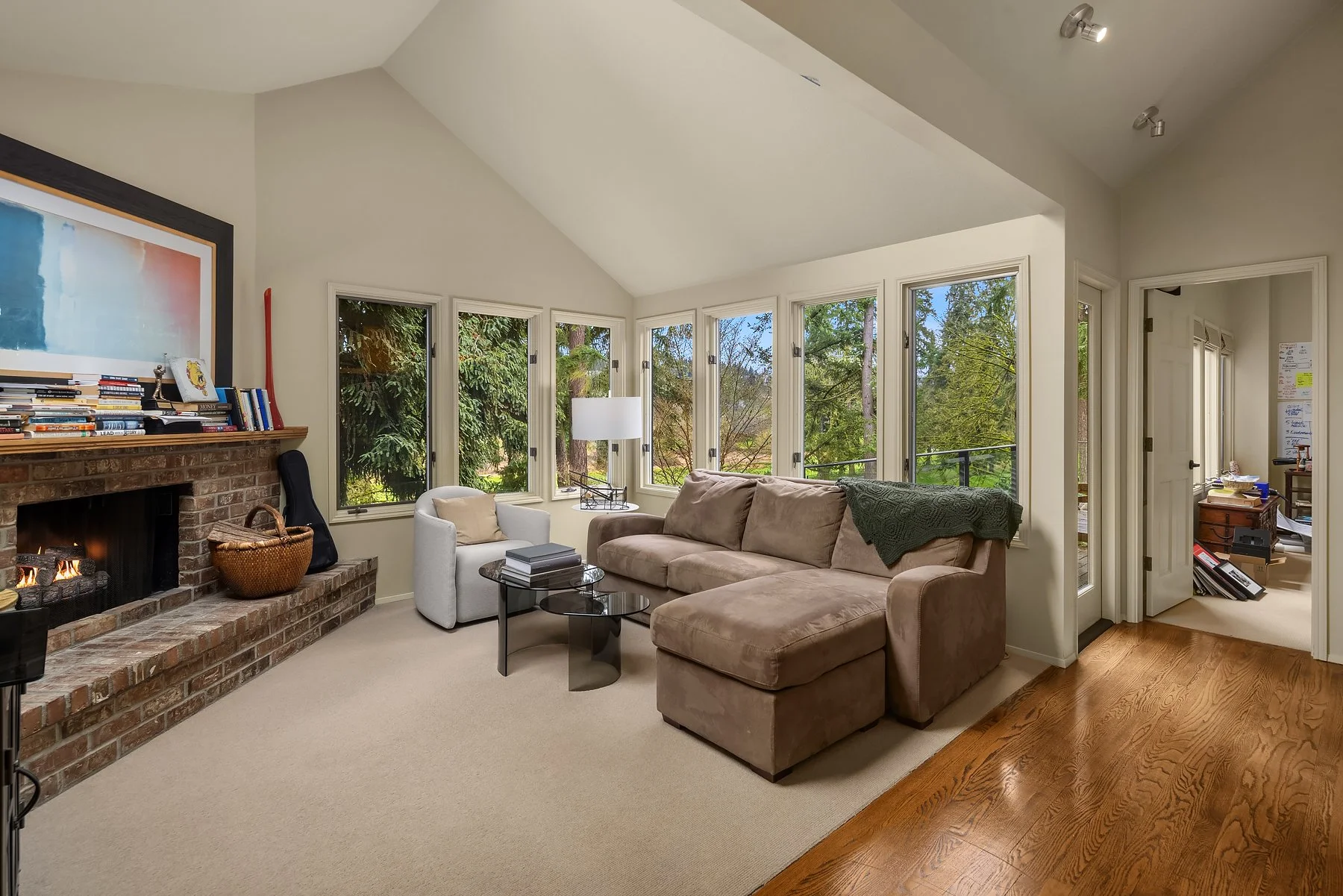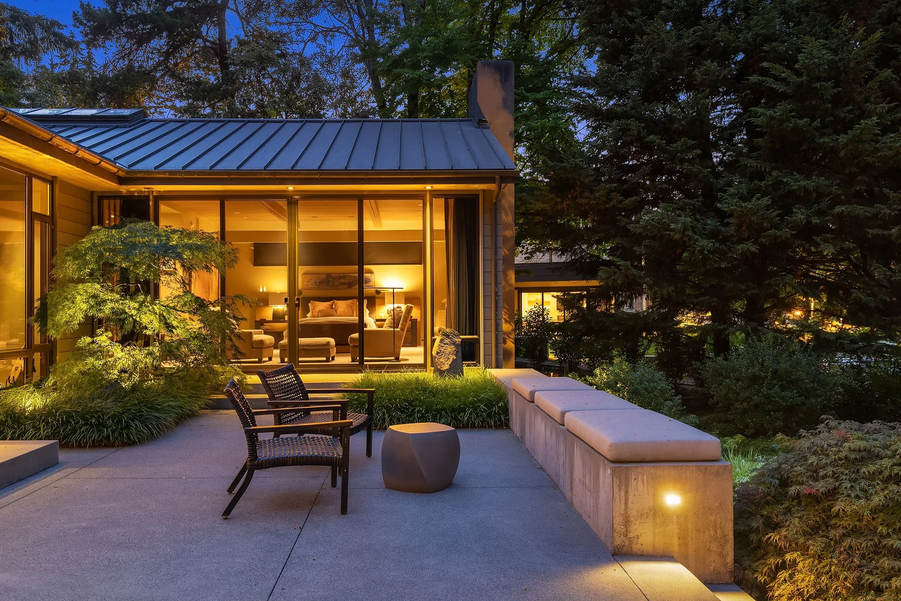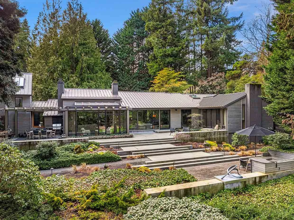 Discover premier living on Medina’s beautiful Overlake Golf and Country Club. This architecturally significant PNW home enjoys a unique setting, tucked away at the end of a cul-de-sac, and offers tranquility, privacy and luxury— only minutes from downtown Bellevue and Seattle. The home greets you upon entering with expansive fairway views, and unfolds almost entirely on a single level, with rooms branching off from a central hallway with a seamless flow. The living room is adorned with floor-to-ceiling windows that capture the stunning landscape, complemented by a cozy fireplace. The elegance extends to the formal dining room and a sleek kitchen equipped with top-of-the-line appliances. A sumptuous family room is adorned with a fireplace surrounded by concrete, blackened steel and rift sawn oak cabinetry. A sunroom of cedar and glass opens up to the private, park-like setting, perfect for seamless indoor-outdoor entertainment.