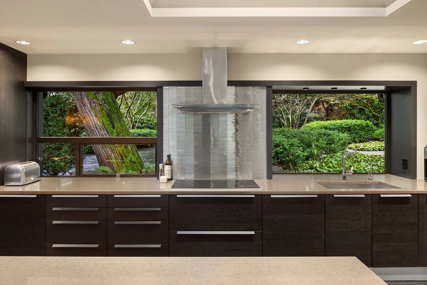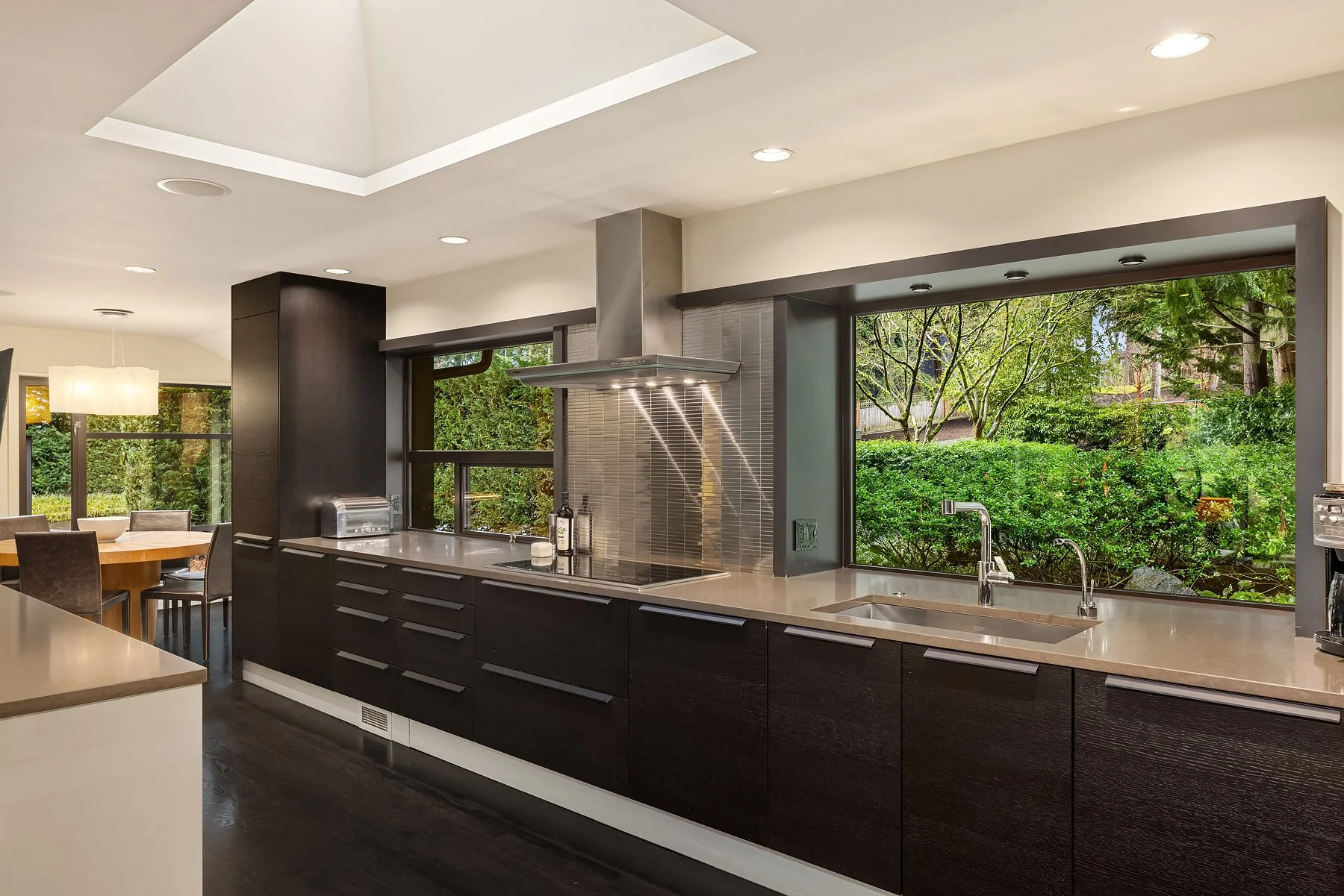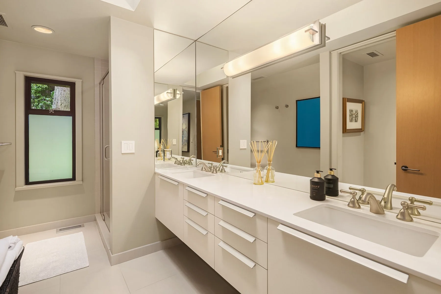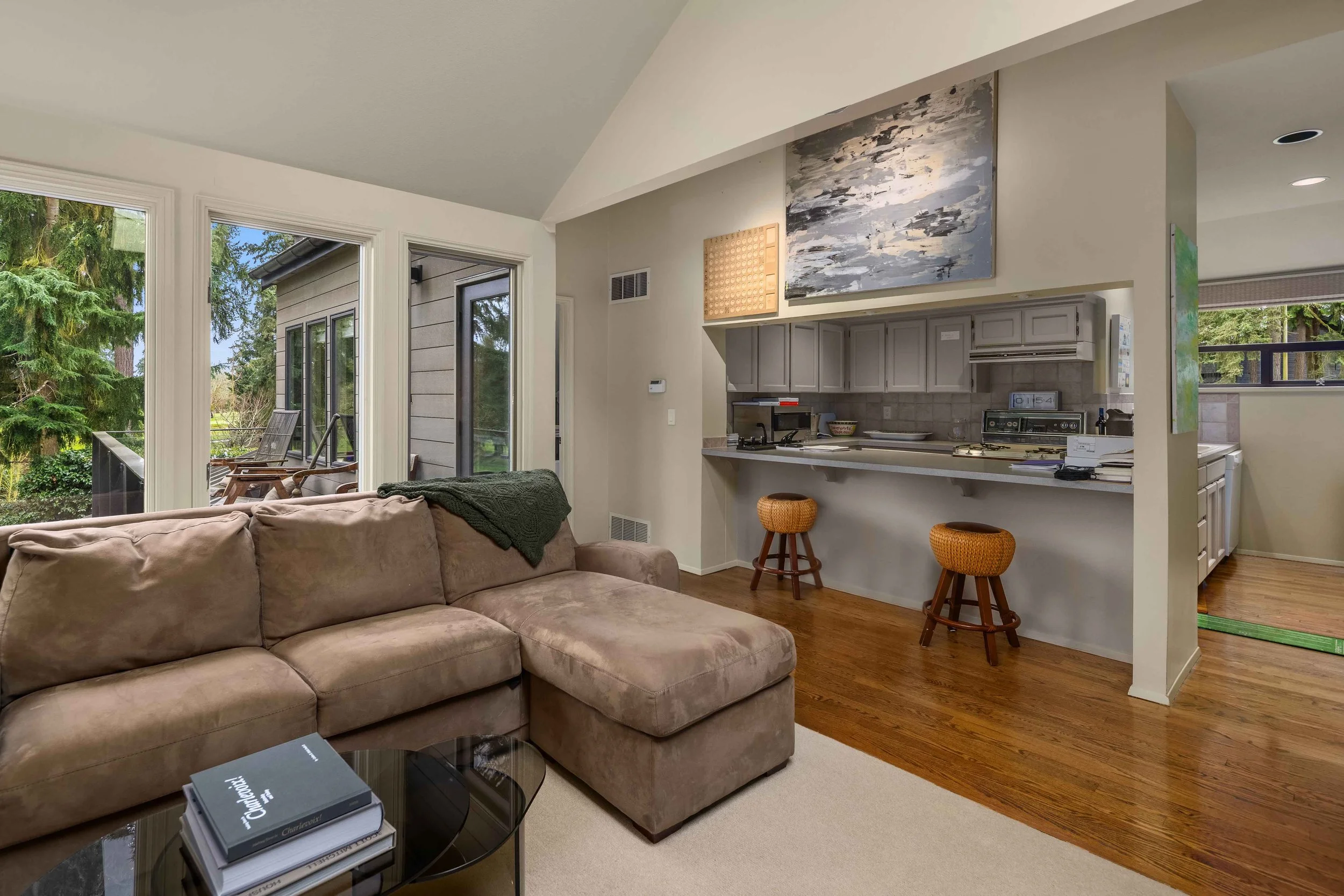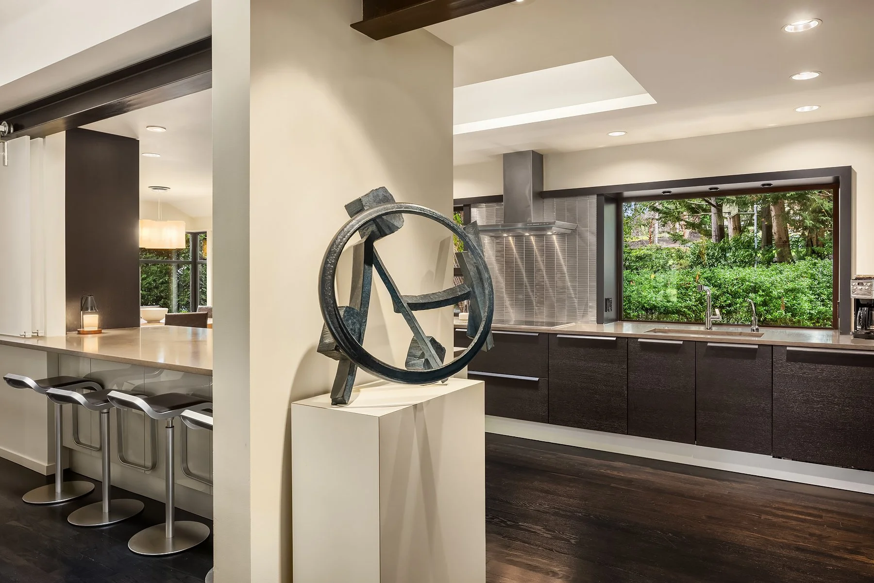 Discover premier living on Medina’s beautiful Overlake Golf and Country Club. This architecturally significant PNW home enjoys a unique setting, tucked away at the end of a cul-de-sac, and offers tranquility, privacy and luxury— only minutes from downtown Bellevue and Seattle. The home greets you upon entering with expansive fairway views, and unfolds almost entirely on a single level, with rooms branching off from a central hallway with a seamless flow. The living room is adorned with floor-to-ceiling windows that capture the stunning landscape, complemented by a cozy fireplace. The elegance extends to the formal dining room and a sleek kitchen equipped with top-of-the-line appliances. A sumptuous family room is adorned with a fireplace surrounded by concrete, blackened steel and rift sawn oak cabinetry. A sunroom of cedar and glass opens up to the private, park-like setting, perfect for seamless indoor-outdoor entertainment.