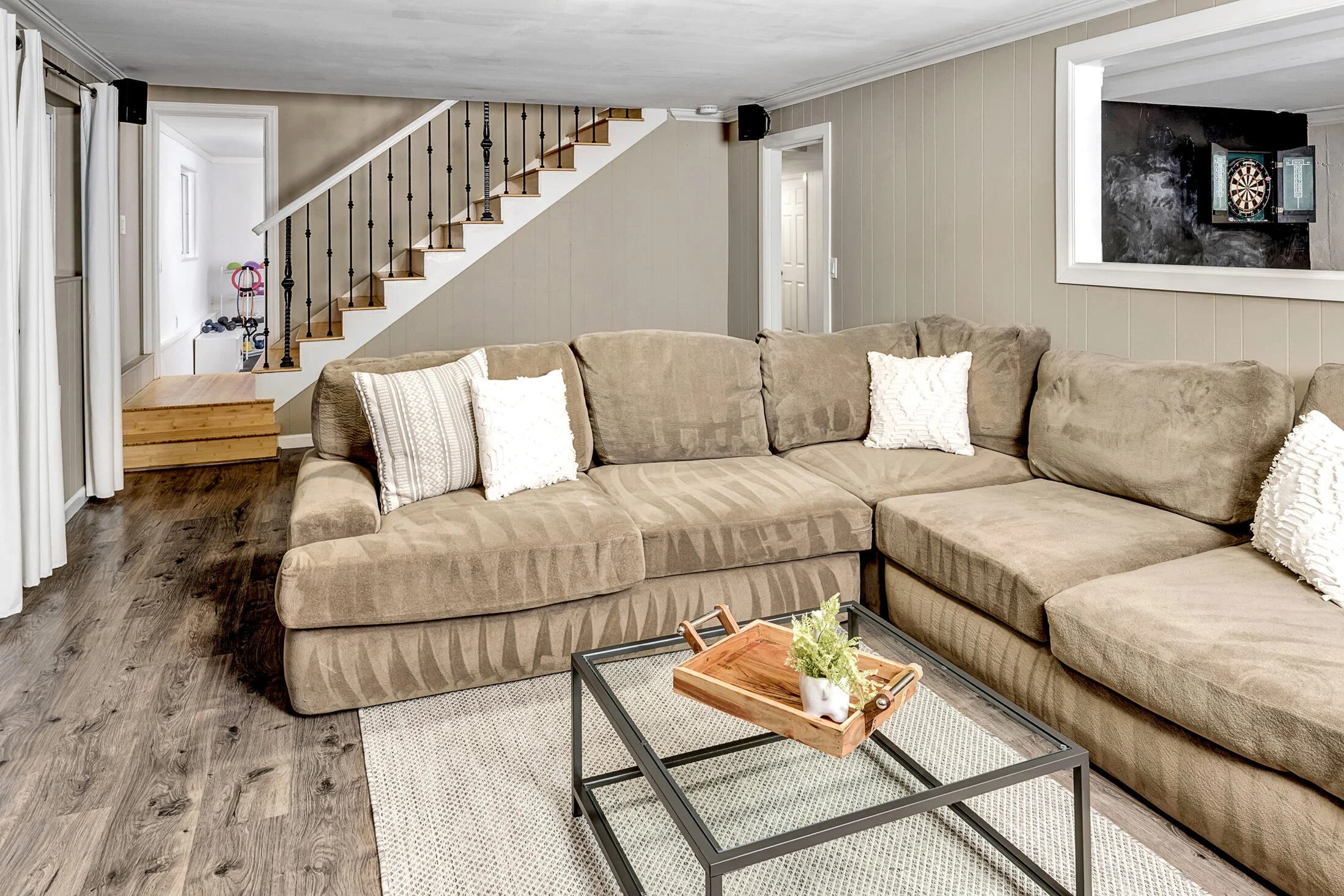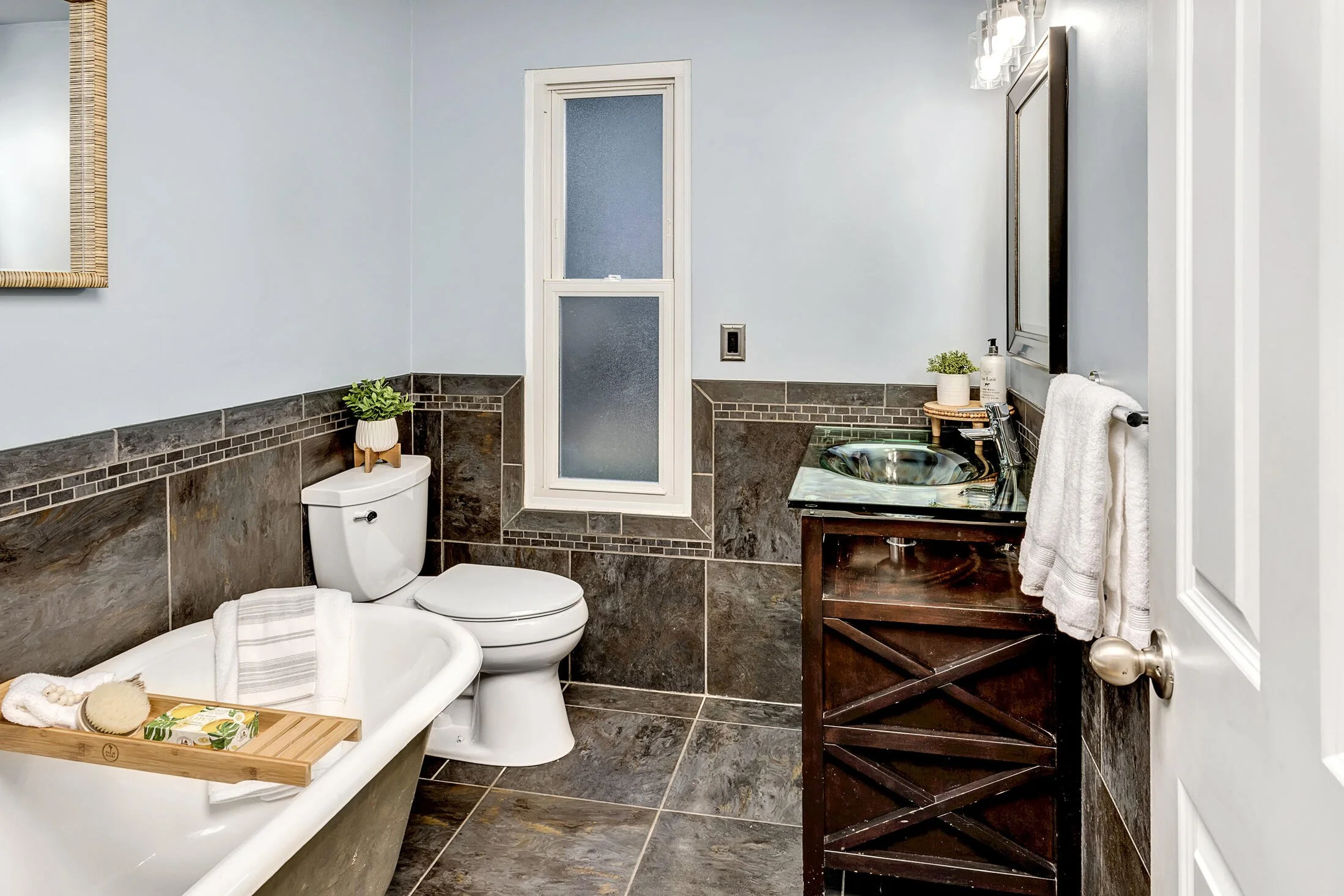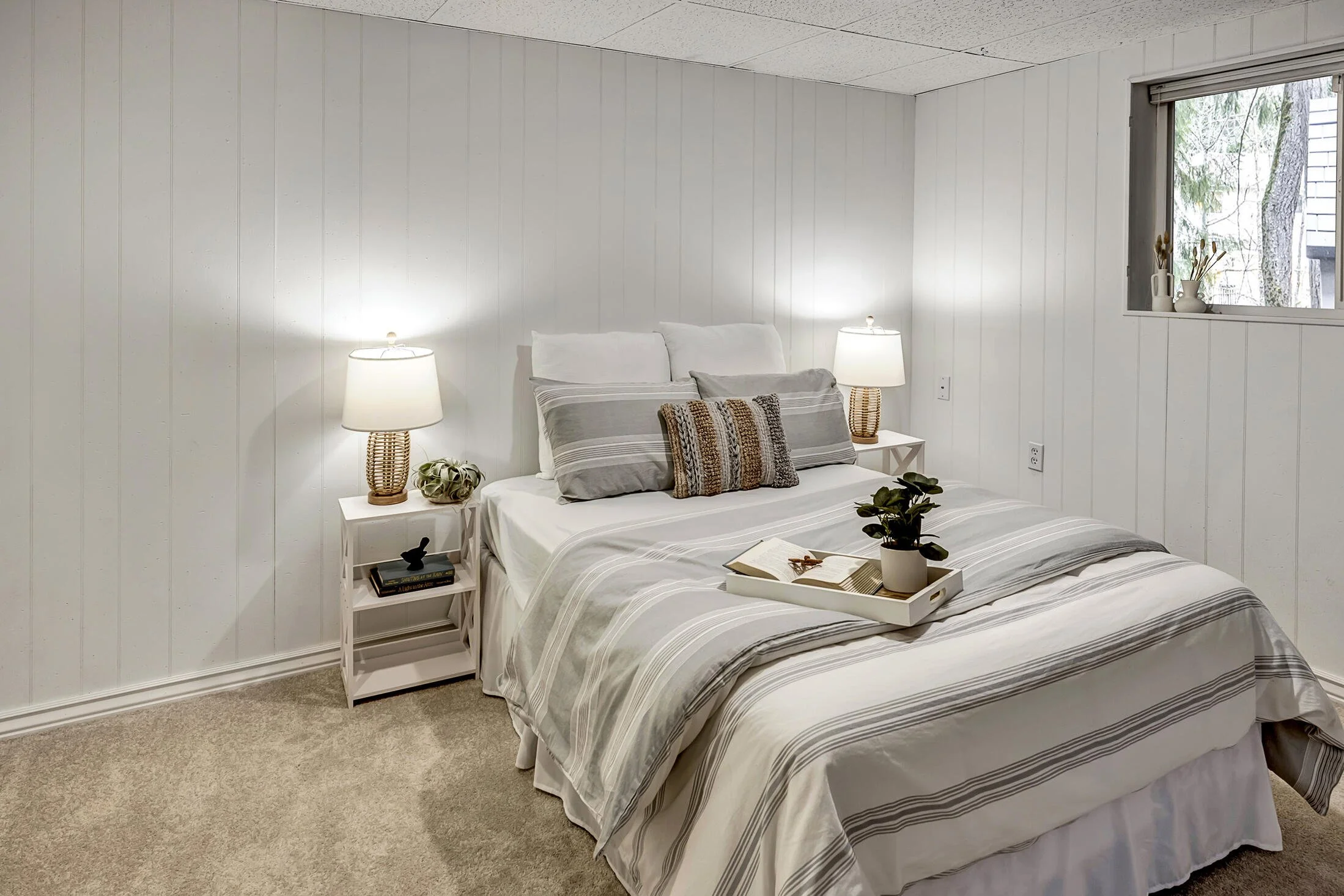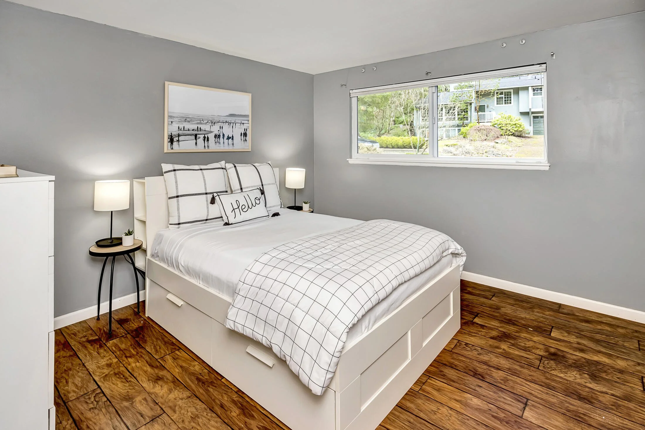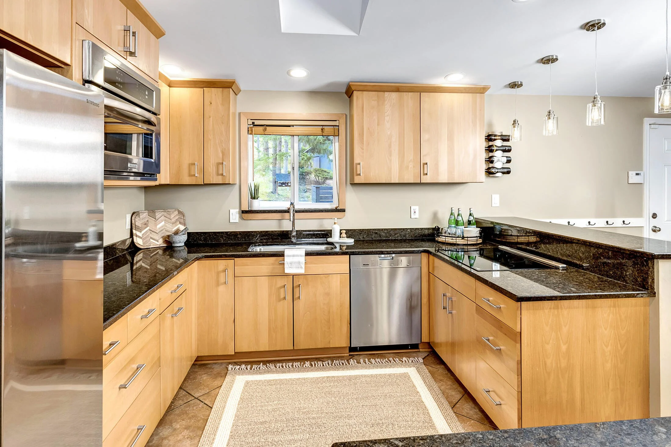 Welcome home to this gorgeous 5-bedroom daylight rambler in Bretton Wood. Escape your busy life and experience tranquil days surrounded by lush greenery. Where you'll find the perfect combination of convenience & charm. Open kitchen with light and bright living spaces, vaulted ceilings and a stacked stone fireplace. Granite slab counters, stainless steel appliances with induction stove and oven. Newly refinished bamboo floors add warmth to the room with a wall of french doors that open up to the spacious Trex deck. Main floor, primary bedroom offers en-suite bathroom with heated floors & private balcony. Lower level with a media room, rec room, two more bedrooms and laundry. You'll love the attached 2 car garage and exploring the trail down to the backyard creek. Live in the heart of Bellevue. Steps to Bennett Elementary, Microsoft, 520 and parks