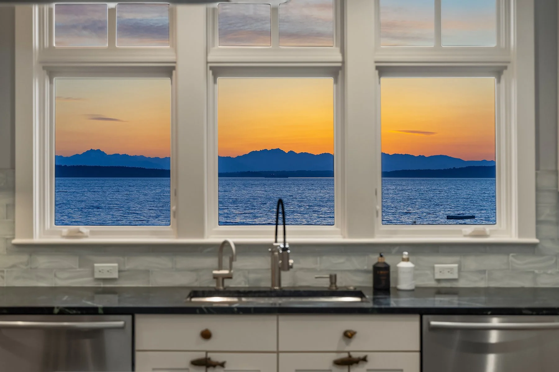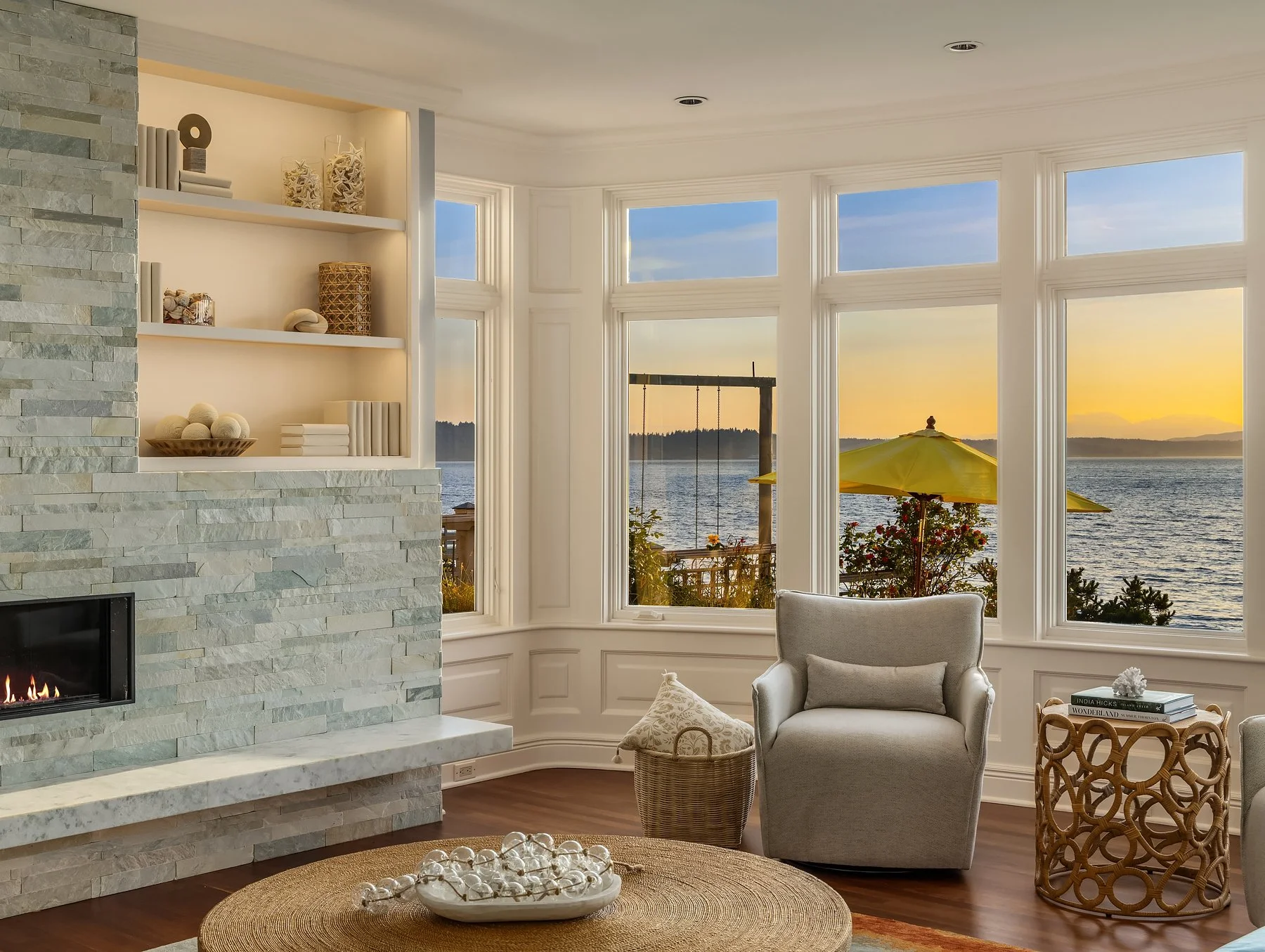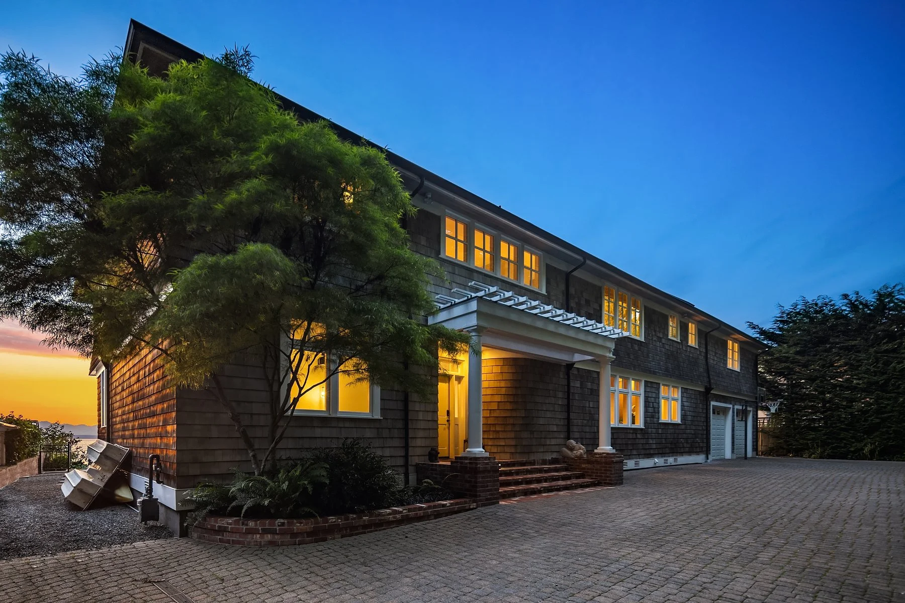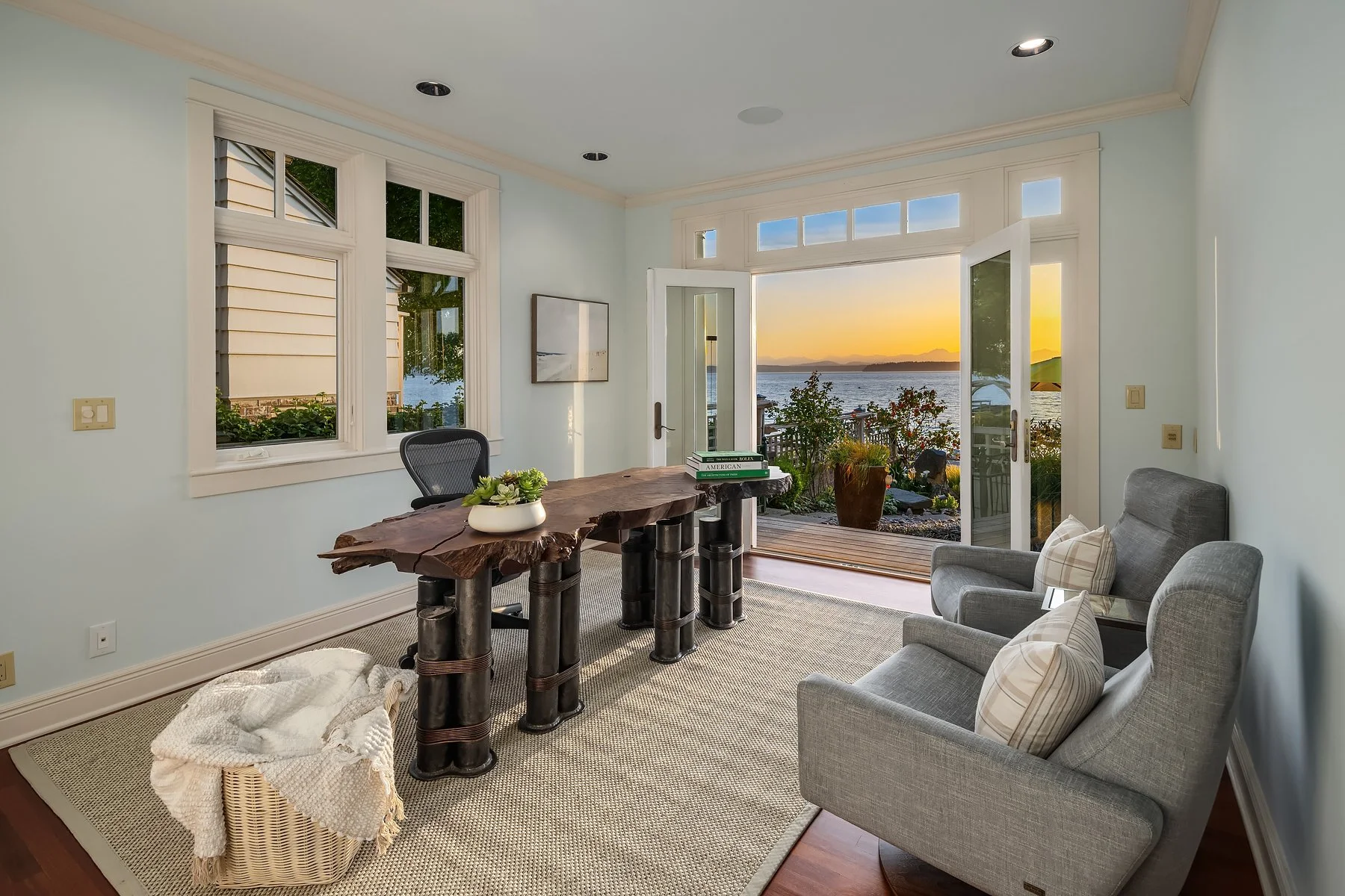 With flawless indoor-outdoor flow, this home perfectly encapsulates the beachfront lifestyle. The great room serves as the focal point, where large windows frame panoramic views of the Puget Sound and a stunning fireplace fosters a warm, inviting atmosphere. Every detail has been thoughtfully curated, from radiant floor heating to intricate ironwork and millwork. Four bedrooms total, including two primary suites— each with a spa-like bath and walk-in closet— and all four with panoramic westward views. The refined library and art studio provide flexible spaces for work from home, hobbies, and more.