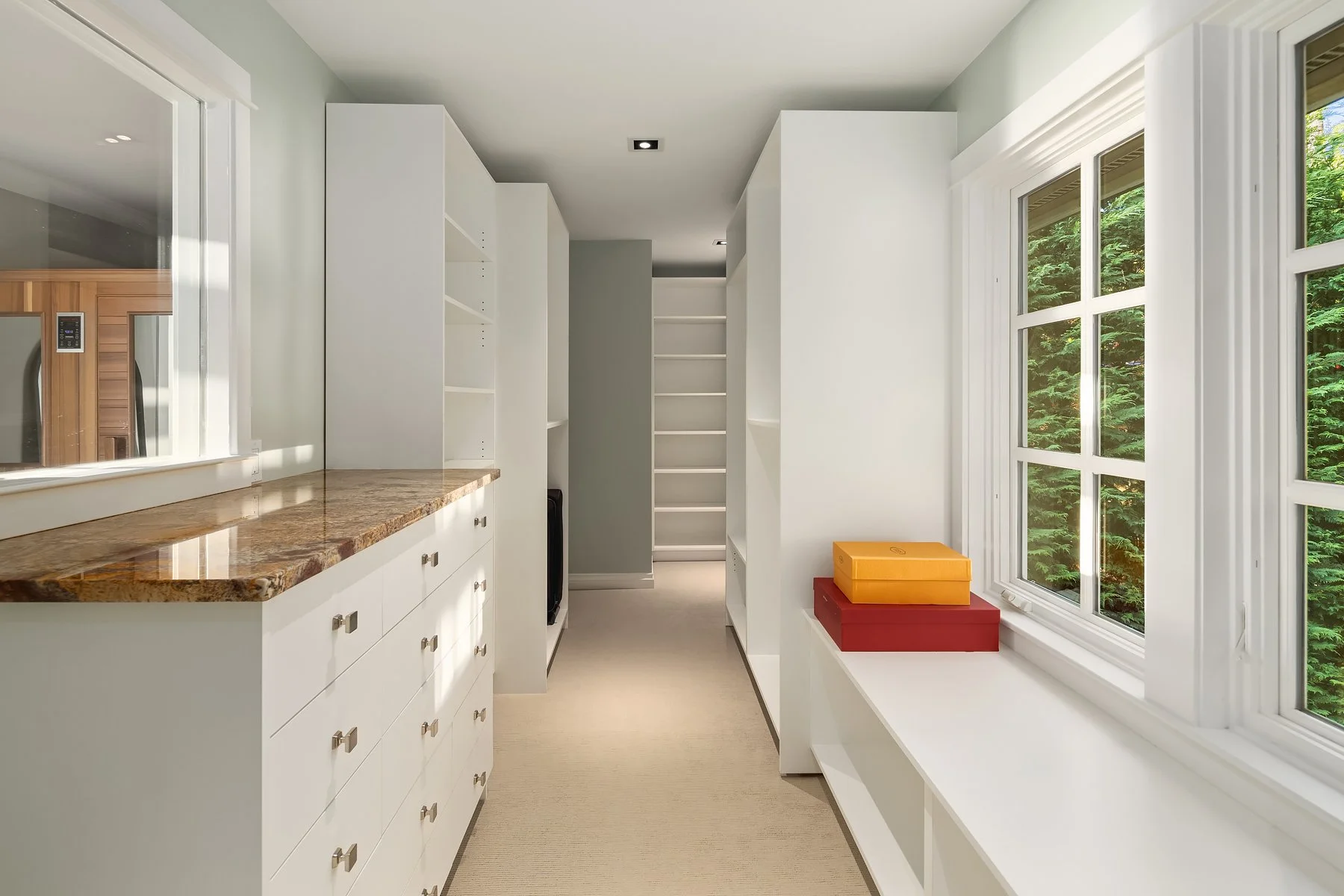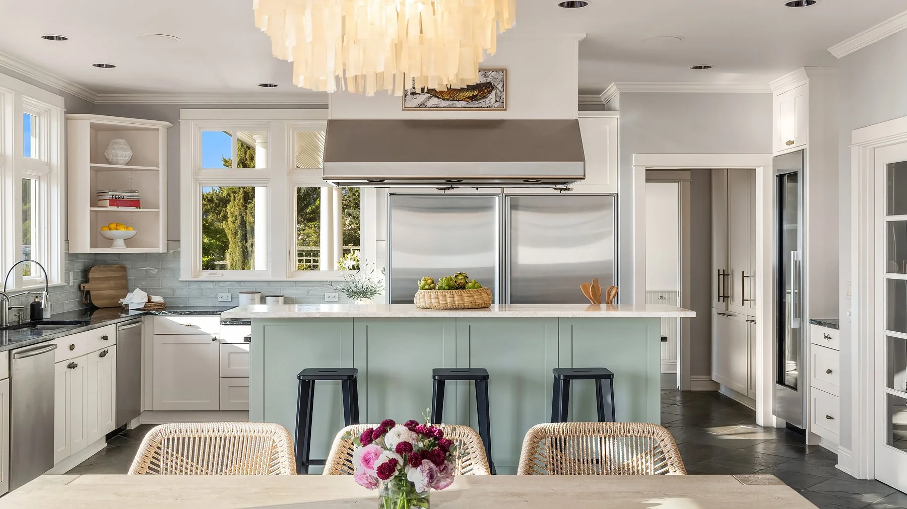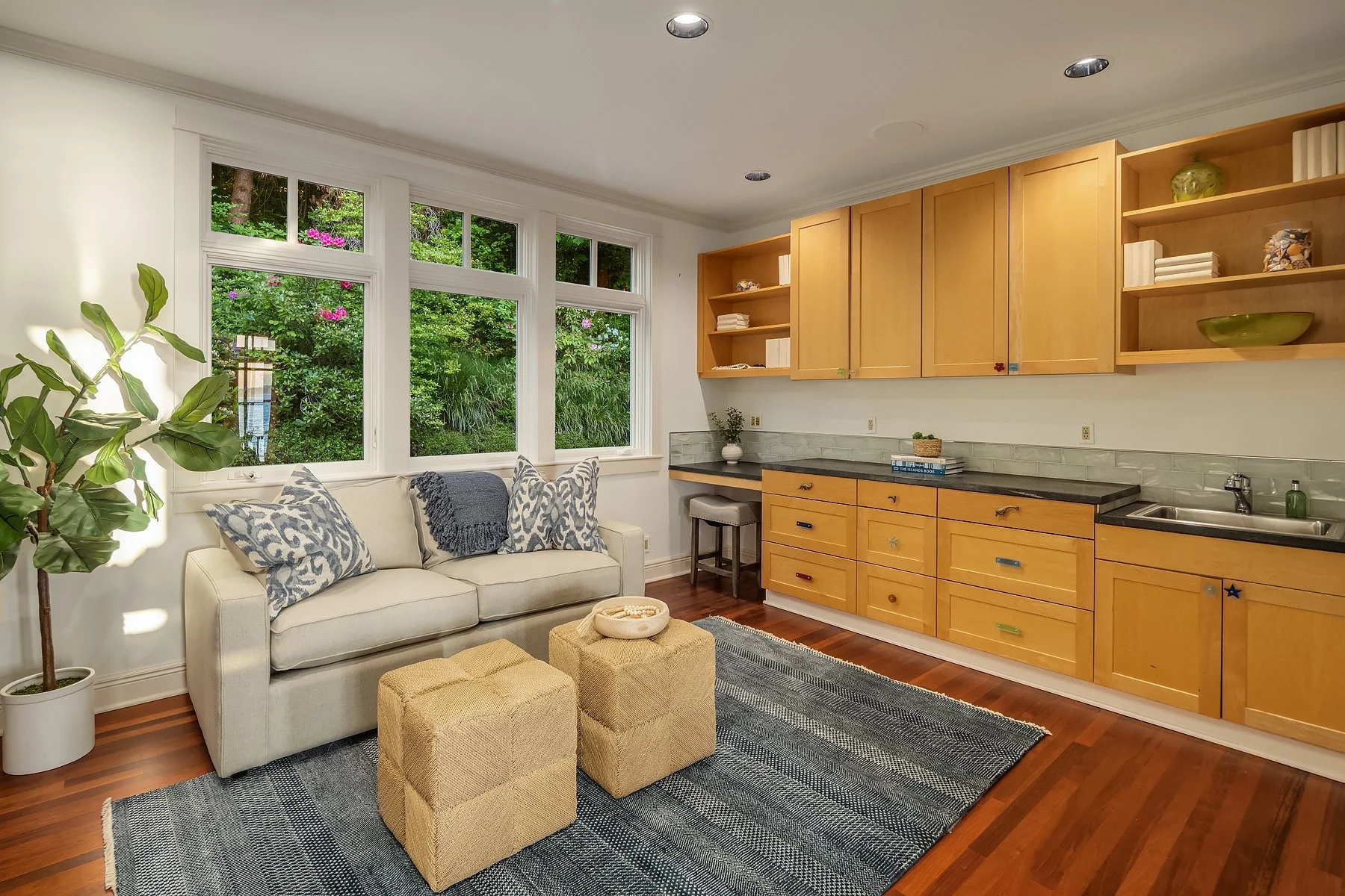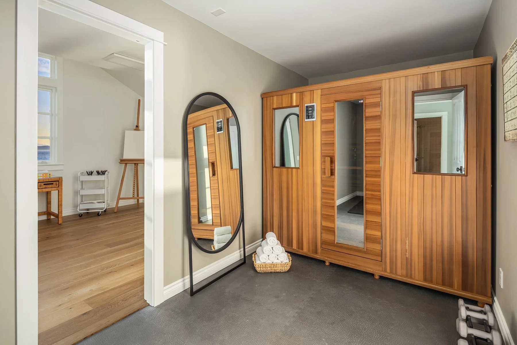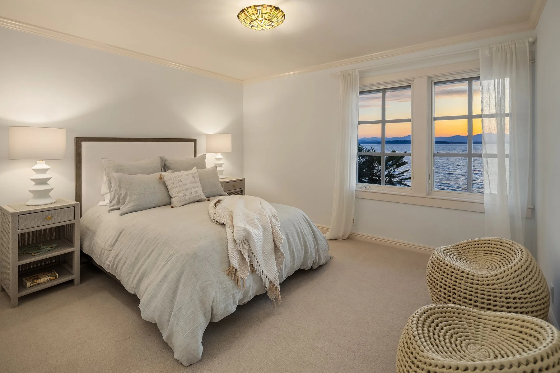 With flawless indoor-outdoor flow, this home perfectly encapsulates the beachfront lifestyle. The great room serves as the focal point, where large windows frame panoramic views of the Puget Sound and a stunning fireplace fosters a warm, inviting atmosphere. Every detail has been thoughtfully curated, from radiant floor heating to intricate ironwork and millwork. Four bedrooms total, including two primary suites— each with a spa-like bath and walk-in closet— and all four with panoramic westward views. The refined library and art studio provide flexible spaces for work from home, hobbies, and more.