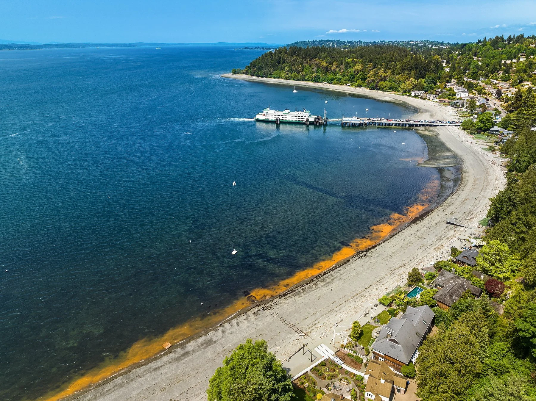 Located within the exclusive 11-home Larentide community, this waterfront gem offers 112± feet of sandy, no-bank Puget Sound beachfront. Its prime location in a quiet inlet provides protection from strong winds or waves, ensuring a perfect blend of natural beauty and comfort.