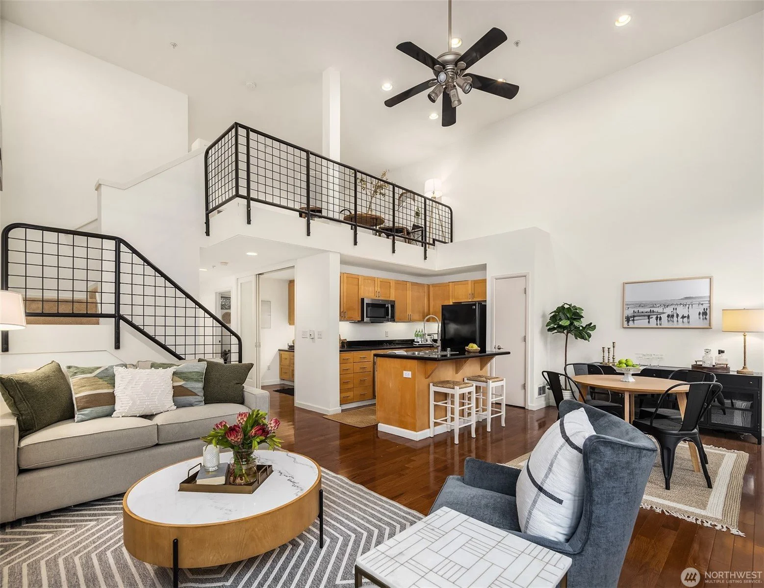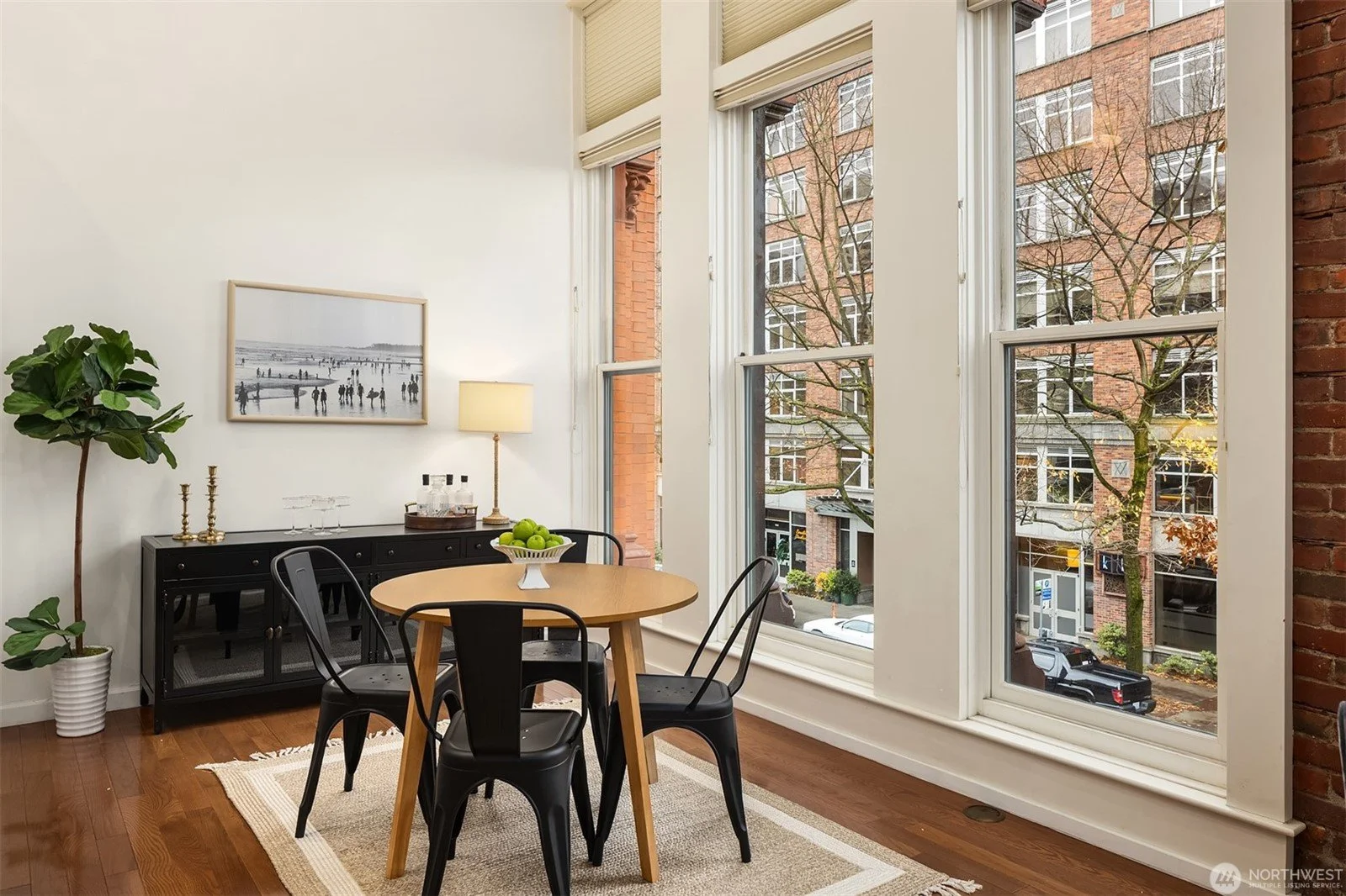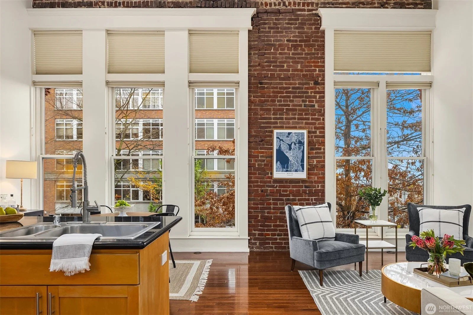 This thoughtfully designed Belltown condo combines modern convenience w/ urban charm.Steps from Pike Place Market, the Waterfront & other amenities.Featuring 2 bedrooms, each w/ walk-in closets & full bath, this refined rustic home boasts exposed brick & striking floor-to-ceiling windows spanning 2 levels.Dramatic windows flood the space w/ natural light, enhancing it's open feel while framing stunning views of Puget Sound.Highlights include a hideaway office, laundry room, courtyard, rooftop deck & sleek kitchen w/ pantry. The original 1908 exterior seamlessly integrates into the rebuilt interior, adding a chic historical touch. Short term rentals and pets allowed. No rental cap. Indoor parking space and storage.