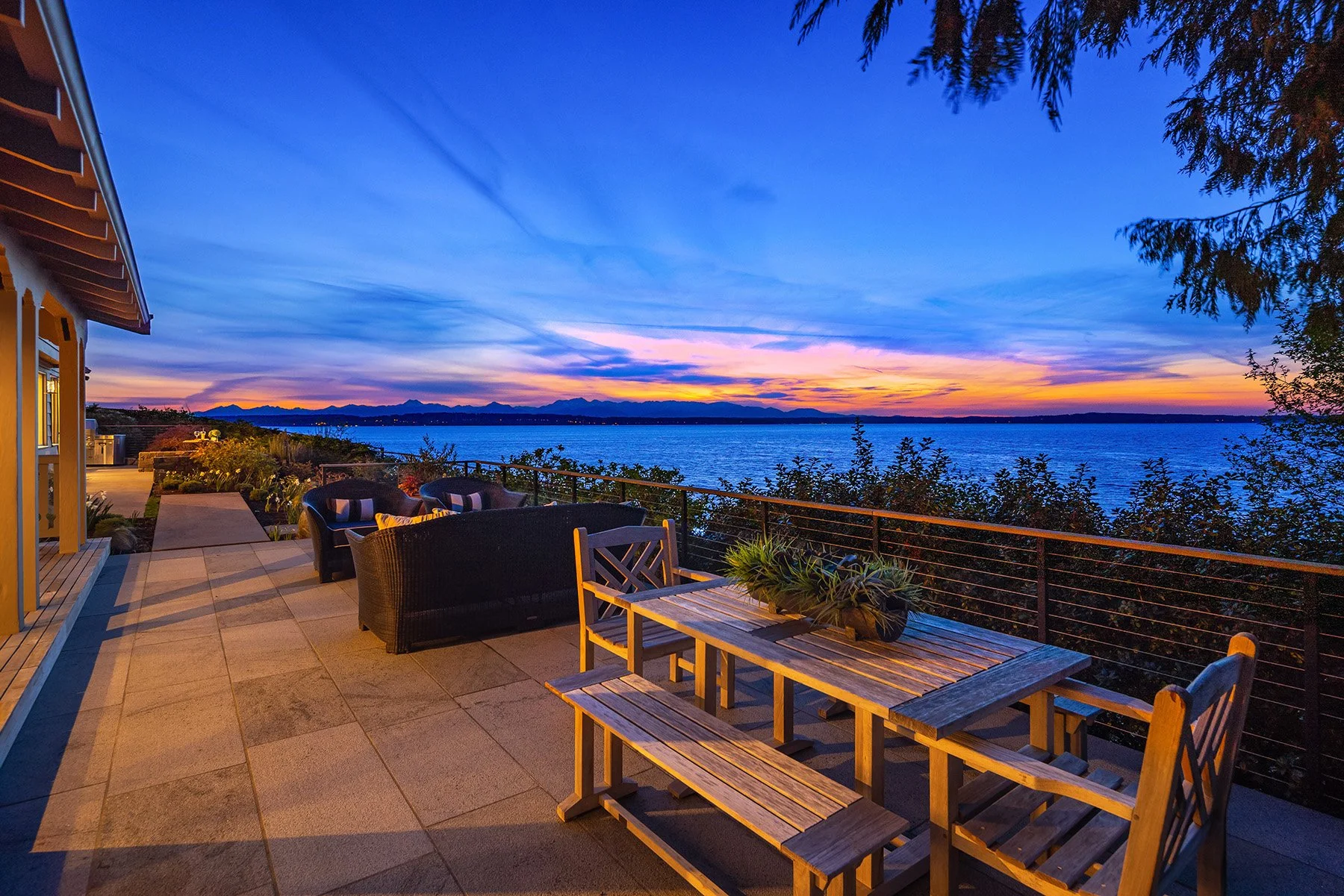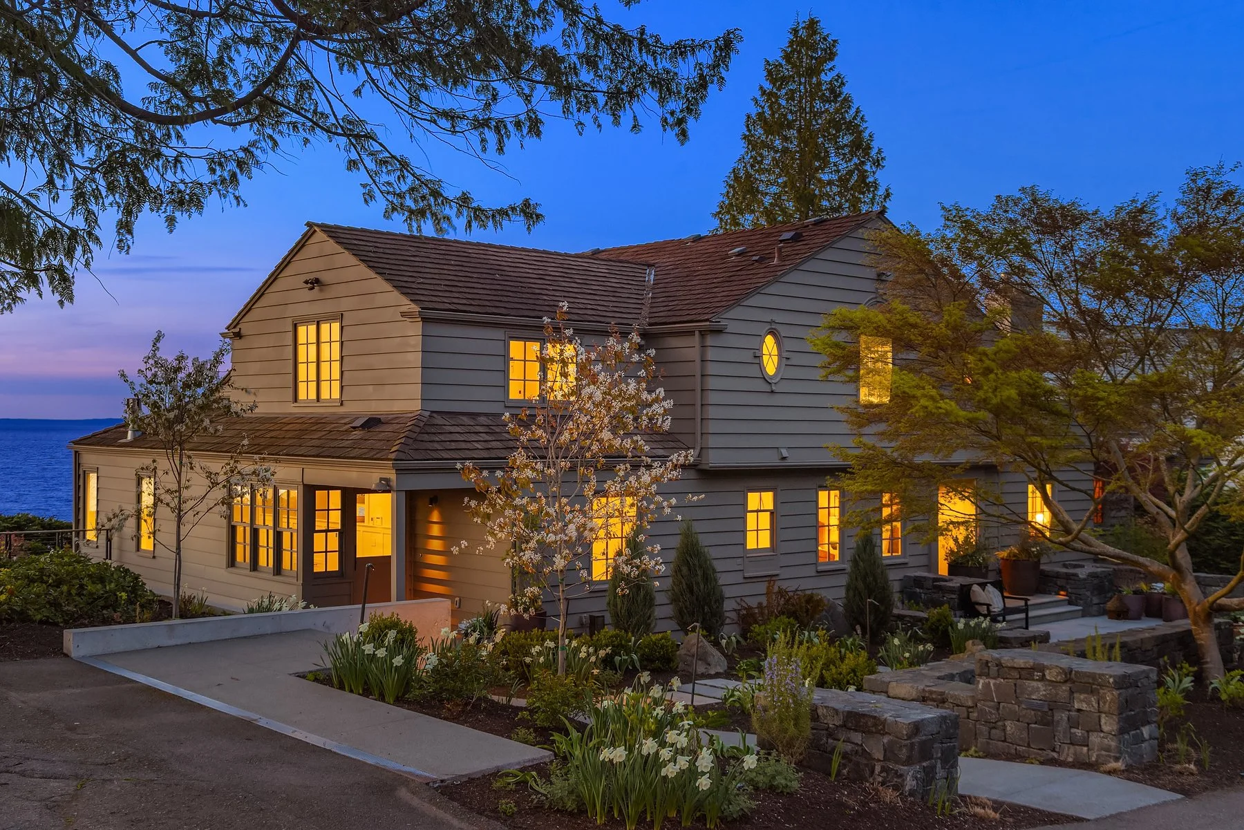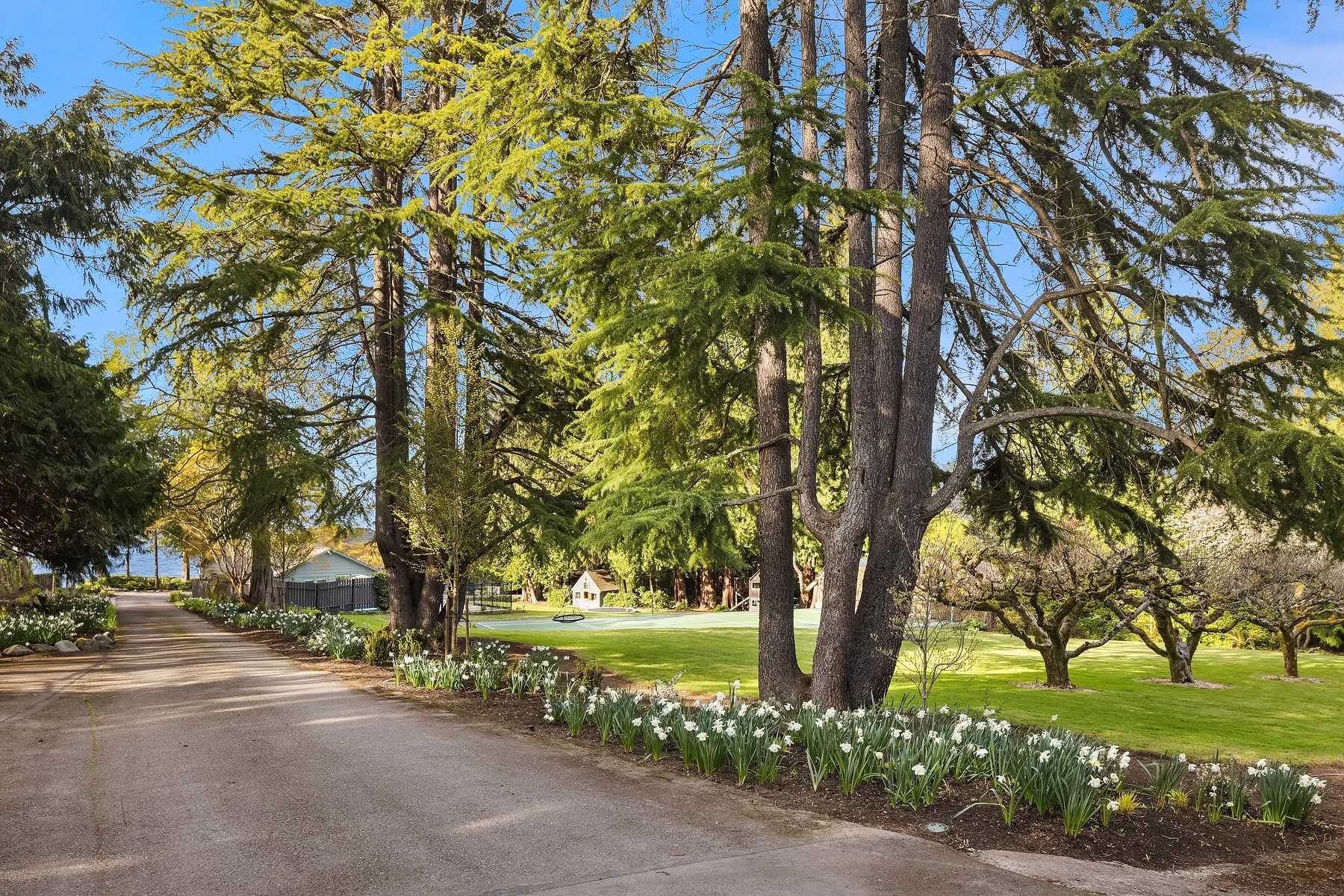 There are homes you live in, and homes that change how you live. This rare 1.96-acre estate in Magnolia is the latter. Gated and perched above Puget Sound, it offers panoramic views, soul-deep privacy, and daily moments of wonder: the constant unfolding of the weather and the sea, eagles circling at eye level, kids racing from the zipline to the trampoline, and sunsets that stop conversation. As you wind down the elegant driveway past the apple orchard, you're greeted by the main house, a guest cabana, and an array of resort-caliber amenities including a pool, sport court, and beautifully landscaped grounds. Inside, soaring ceilings and expansive windows flood the home with natural light, creating an open atmosphere. The bright kitchen features a Sub-Zero refrigerator, deep farmhouse sink, and charming tilework above the stove. The spacious gathering room—anchored by a tall fireplace and exposed beams—flows seamlessly onto a covered back patio, perfect for dining al fresco while taking in sweeping ocean and mountain views, and breathtaking sunsets. The primary suite offers a true retreat, with large windows framing serene vistas, a generous walk-in closet, and a spa-like bathroom with a soaking tub and dual-head shower. Upstairs, a quiet office overlooking Puget Sound and a cozy reading nook provide ideal spaces to work or unwind. Designed for both relaxation and play, this estate is rare gem that delivers the perfect balance of peaceful seclusion and easy access to everything Seattle has to offer.