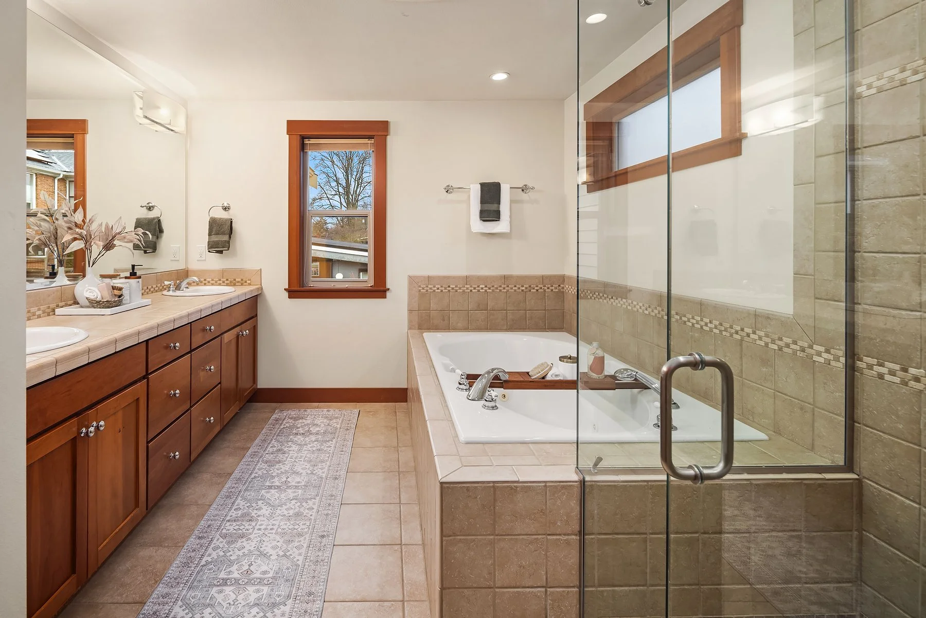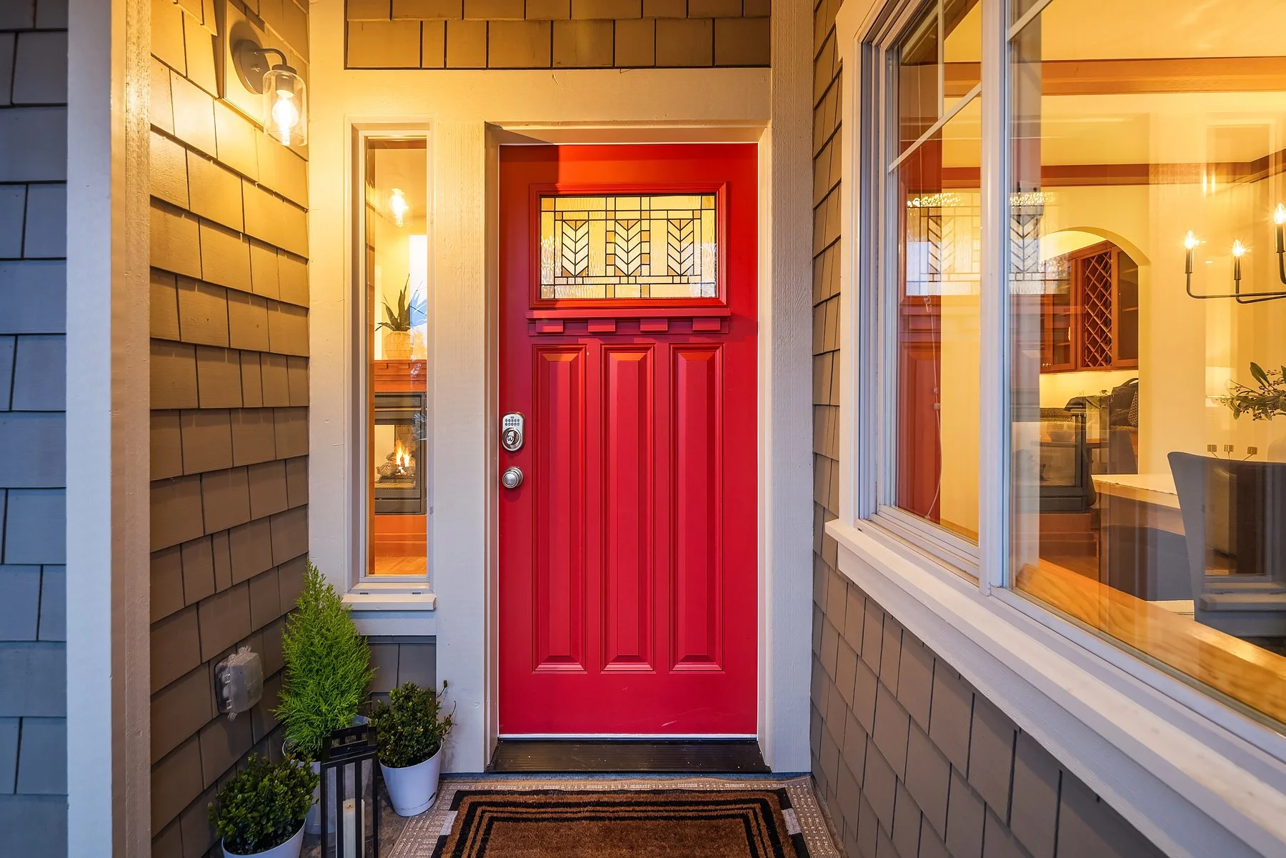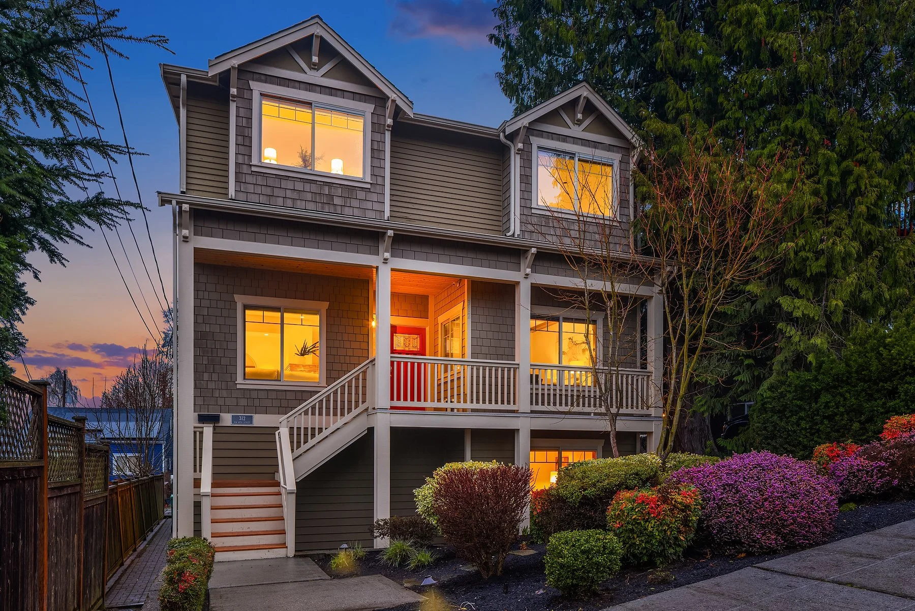 This timeless Craftsman home welcomes you with undeniable warmth from the moment you step through its signature red door. Inside, hardwood floors, fresh paint and expansive windows bring in the natural light, creating an inviting atmosphere. A cozy fireplace anchors the living room, offering the perfect setting for quiet evenings or lively gatherings. Designed for both function and style, the open-concept kitchen is a chef’s dream, featuring double ovens, ample cabinetry and a cleverly hidden bar—ideal for entertaining. The adjoining family room ensures seamless connection. Upstairs, the serene primary suite serves as a private retreat, where sweeping Olympic Mountain views and a charming balcony invite you to start and end your day in tranquility. Don’t miss the ensuite bath with a jetted tub & more. The additional bedrooms offer generous closet space and versatility to accommodate guests, a home office or creative pursuits.The lower level expands the home’s livability with a spacious recreation room—perfect for movie nights, a home gym or a play area. A dedicated laundry room and a two-car garage add everyday convenience, while direct access to the private backyard allows for effortless indoor-outdoor living.