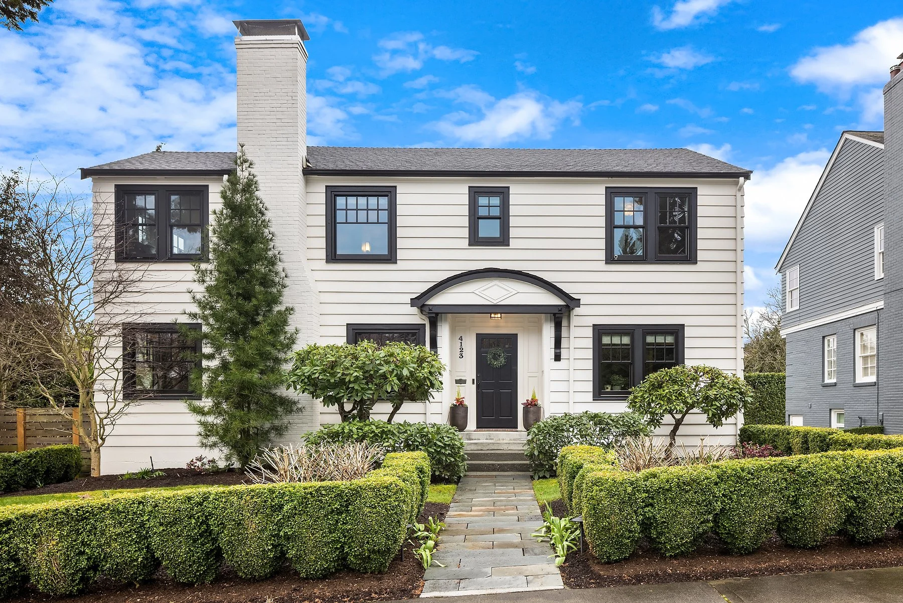 An expansive, partially covered deck with built-in heaters and Trex decking connects seamlessly to a dream turf yard and garden. Located in the heart of Laurelhurst, with close proximity to the Beach Club and University Village.