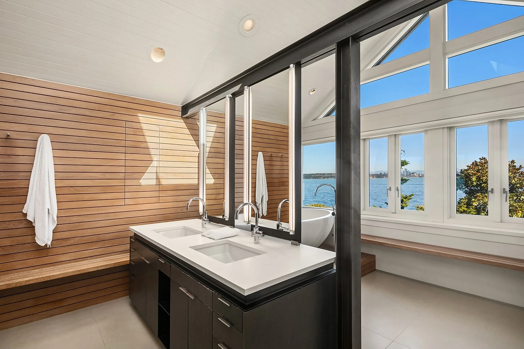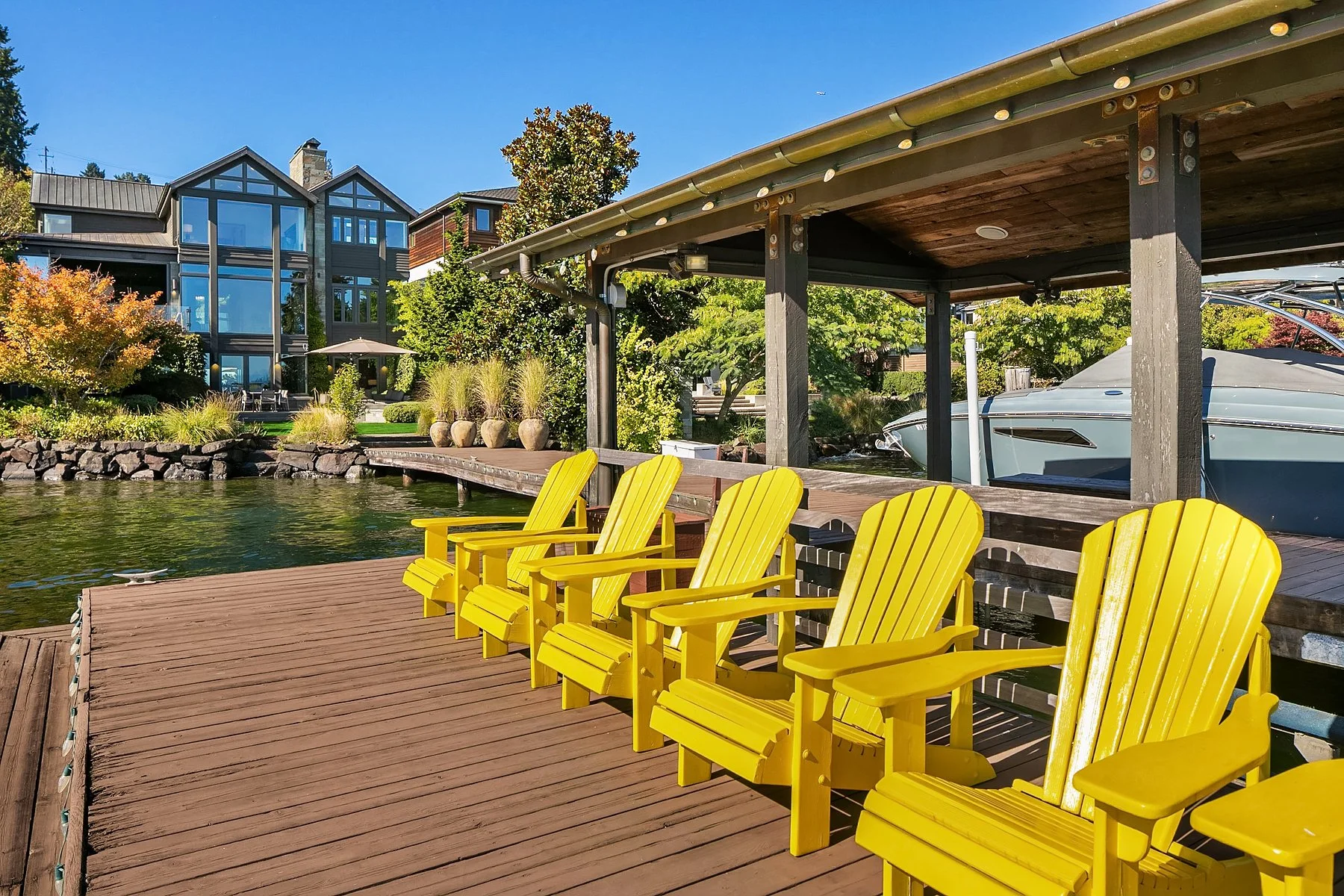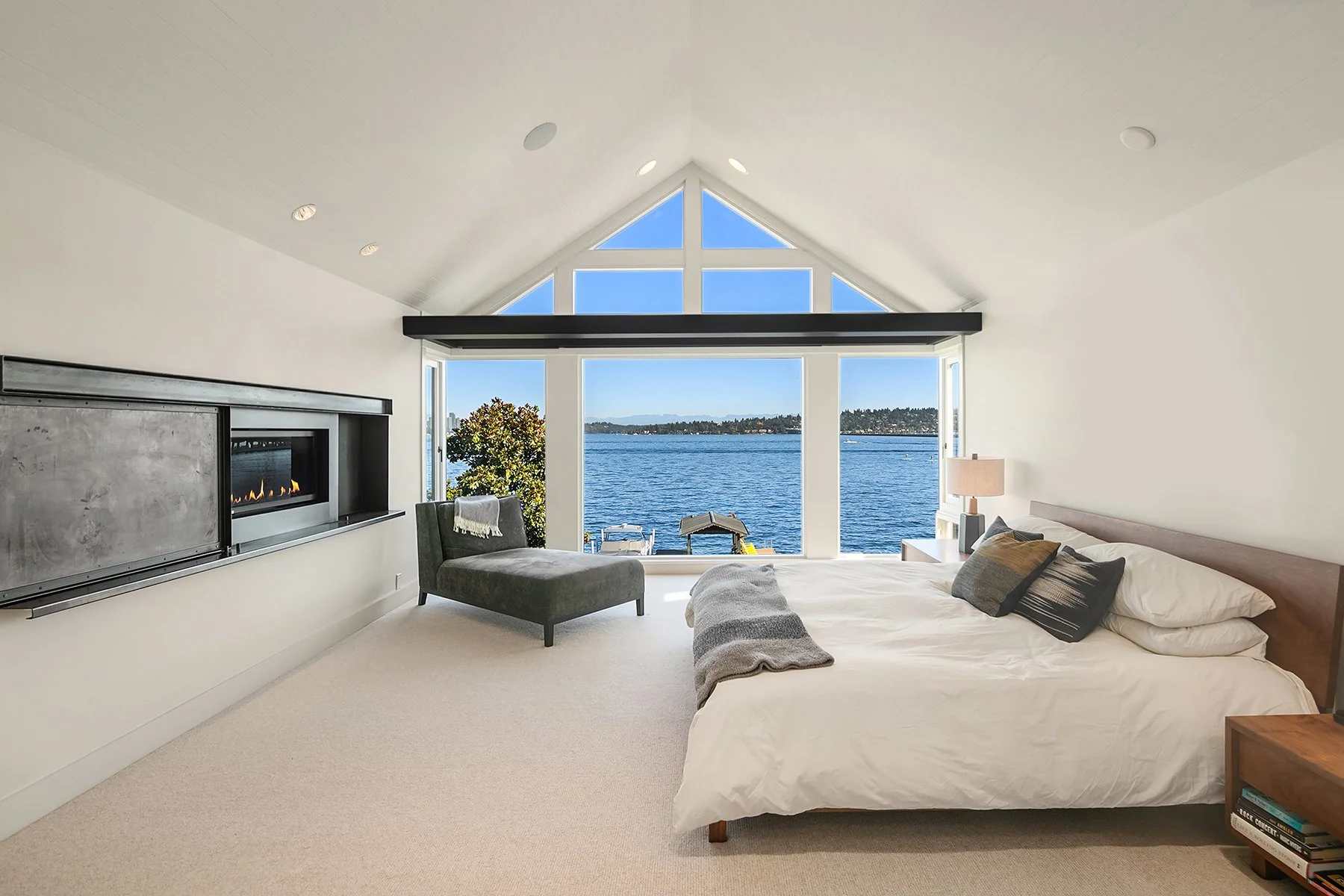 Nestled along the tranquil banks of Lake Washington, this Northwest Contemporary masterpiece is showcased on 60± feet of waterfront. The renovation of this residence was completed by the renowned Tom Kundig, re-envisioned to present a loft-inspired open layout. The expansive great room is adorned with Kundig’s signature metal, wood, and stone accents. The home is centered on a gourmet kitchen designed by a cook, as well as a captivating steel staircase. The primary suite is perched above the lake, gifting city views and the majestic Cascade mountains. Features include a wine cellar, home theater, gym, and outdoor spa. The dock is equipped with two boat lifts, one with covered moorage.