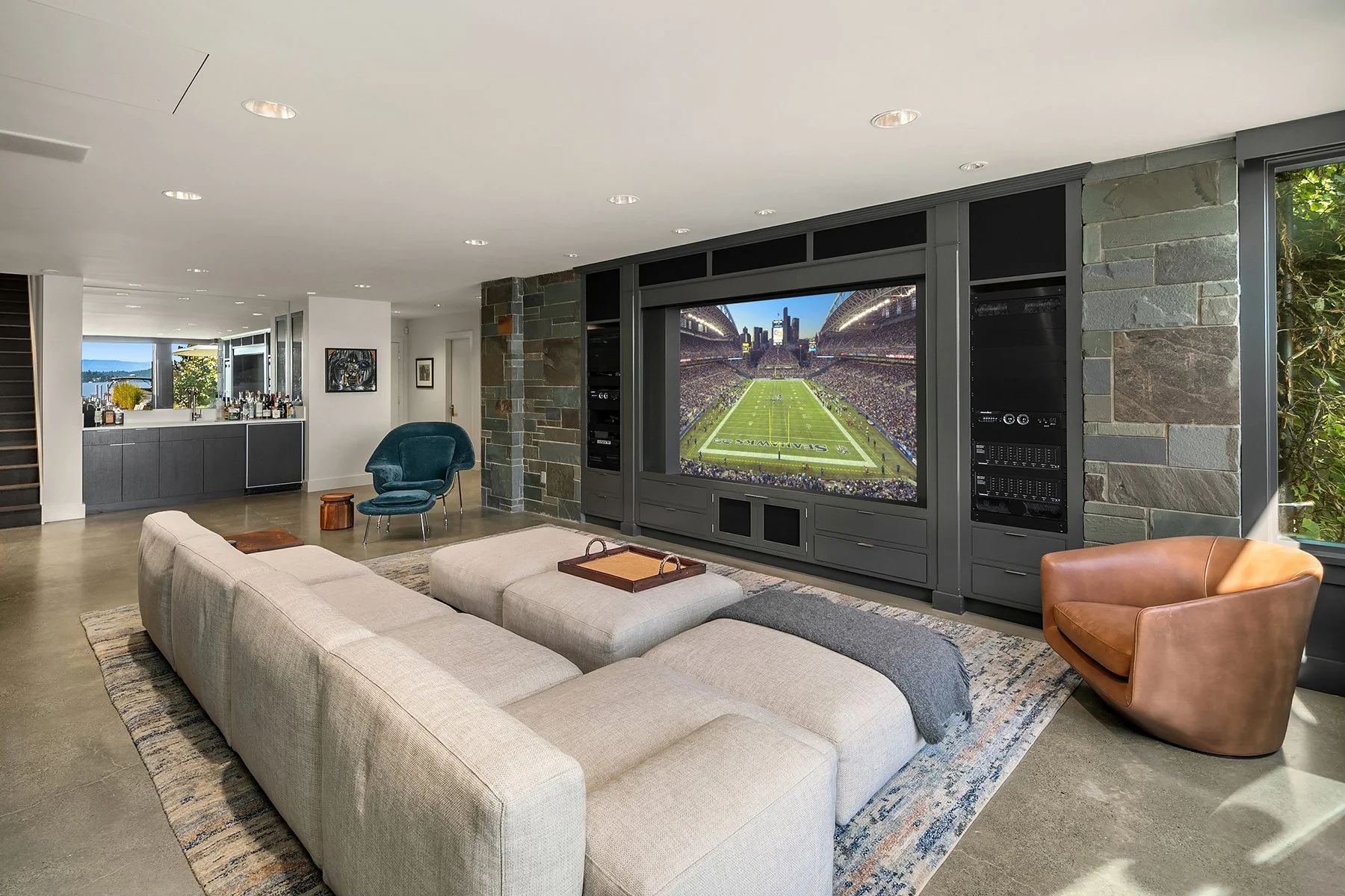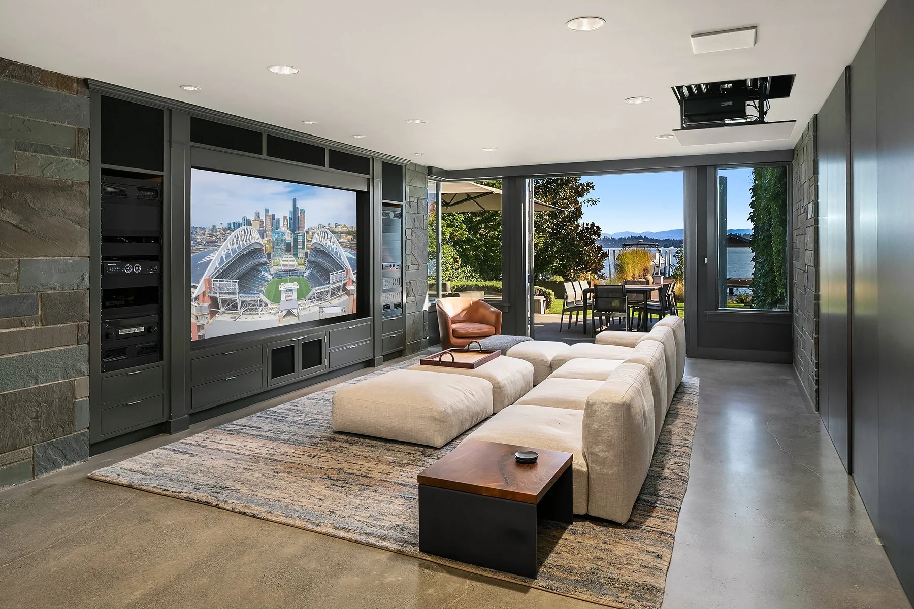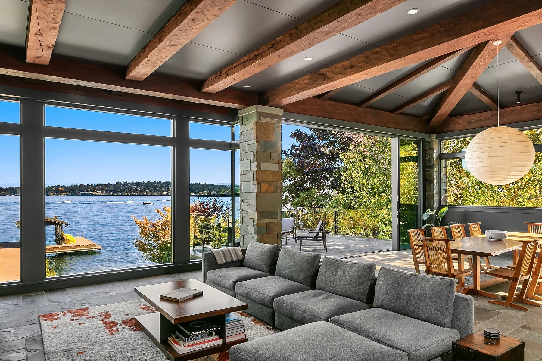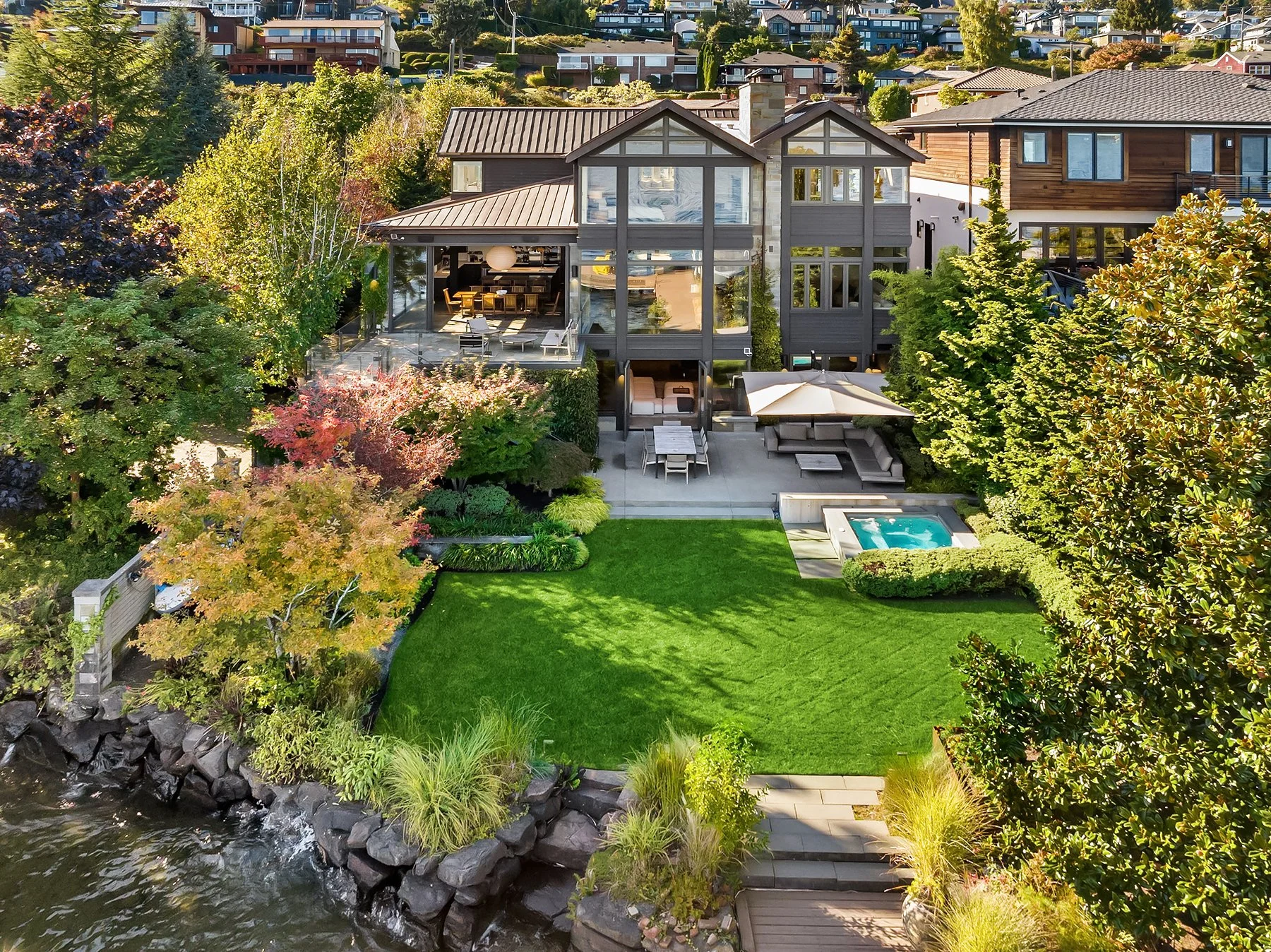 Nestled along the tranquil banks of Lake Washington, this Northwest Contemporary masterpiece is showcased on 60± feet of waterfront. The renovation of this residence was completed by the renowned Tom Kundig, re-envisioned to present a loft-inspired open layout. The expansive great room is adorned with Kundig’s signature metal, wood, and stone accents. The home is centered on a gourmet kitchen designed by a cook, as well as a captivating steel staircase. The primary suite is perched above the lake, gifting city views and the majestic Cascade mountains. Features include a wine cellar, home theater, gym, and outdoor spa. The dock is equipped with two boat lifts, one with covered moorage.